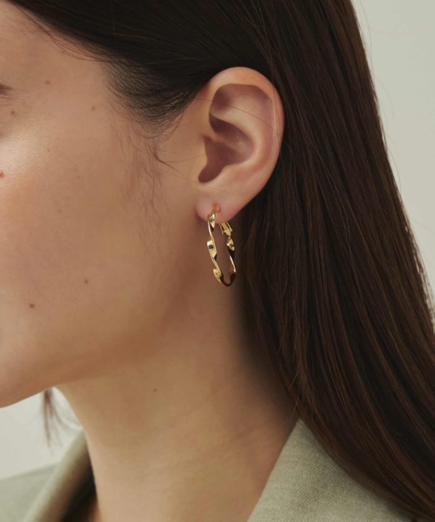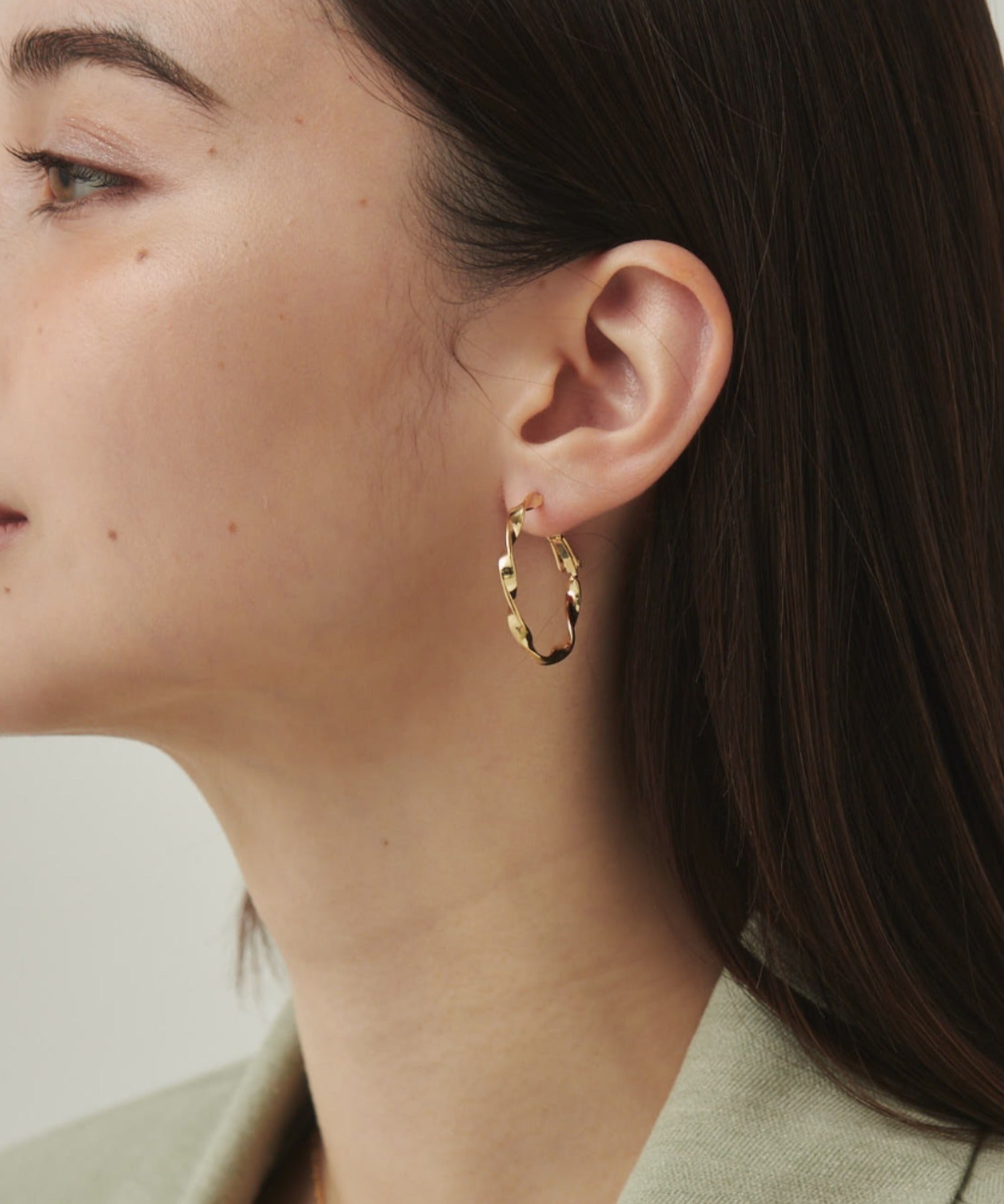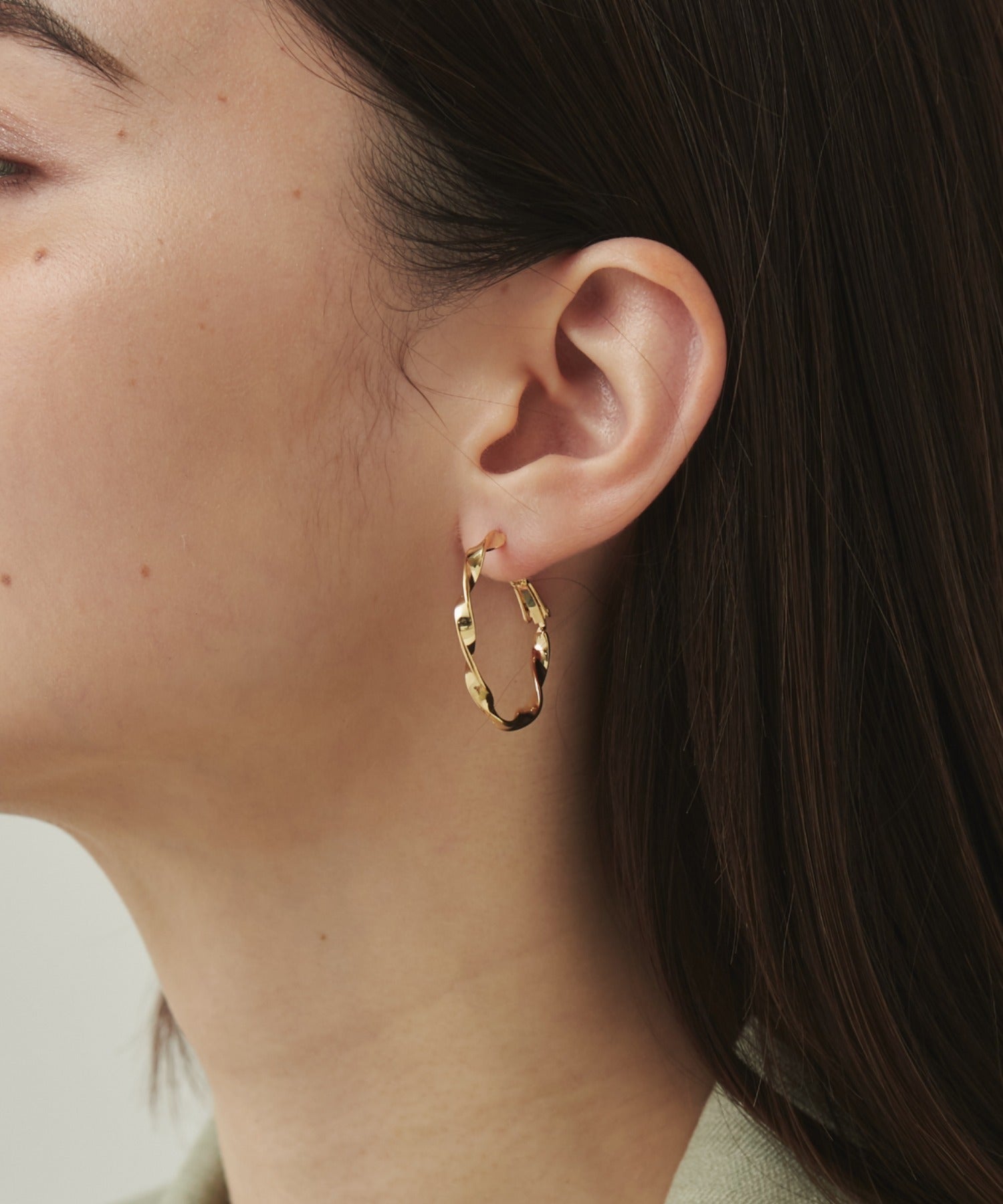 付けたときのシルエットに最大限こだわった、ねじりを効かせたフープピアス。