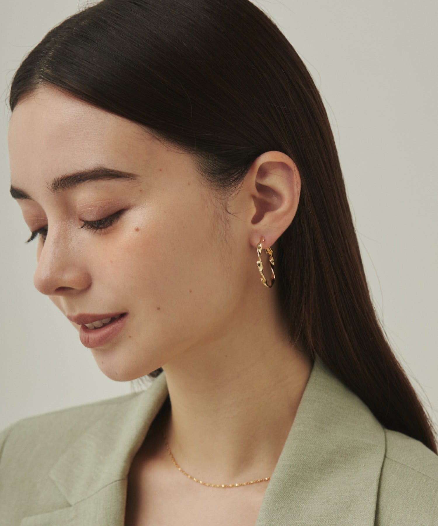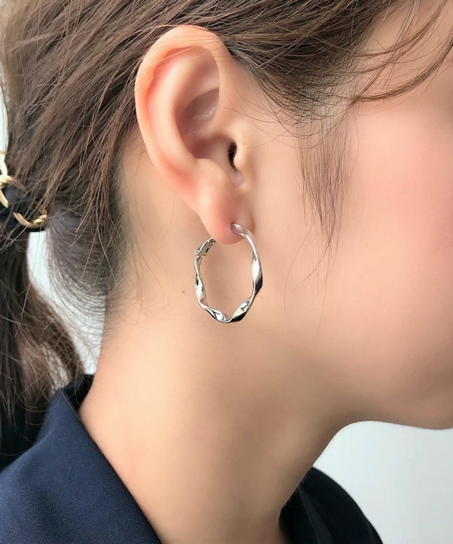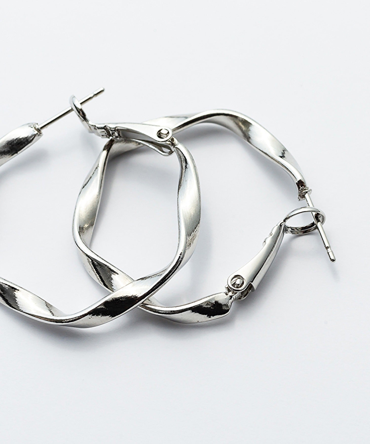 付けたときのシルエットに最大限こだわった、ねじりを効かせたフープピアス。