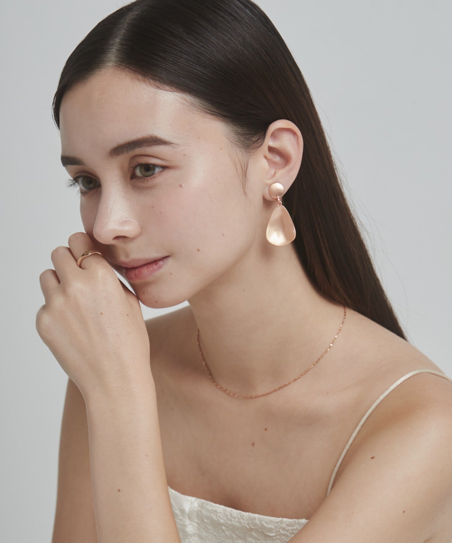 優しい光を放つマットゴールド素材を用いたヘンケイプレートイヤリング。