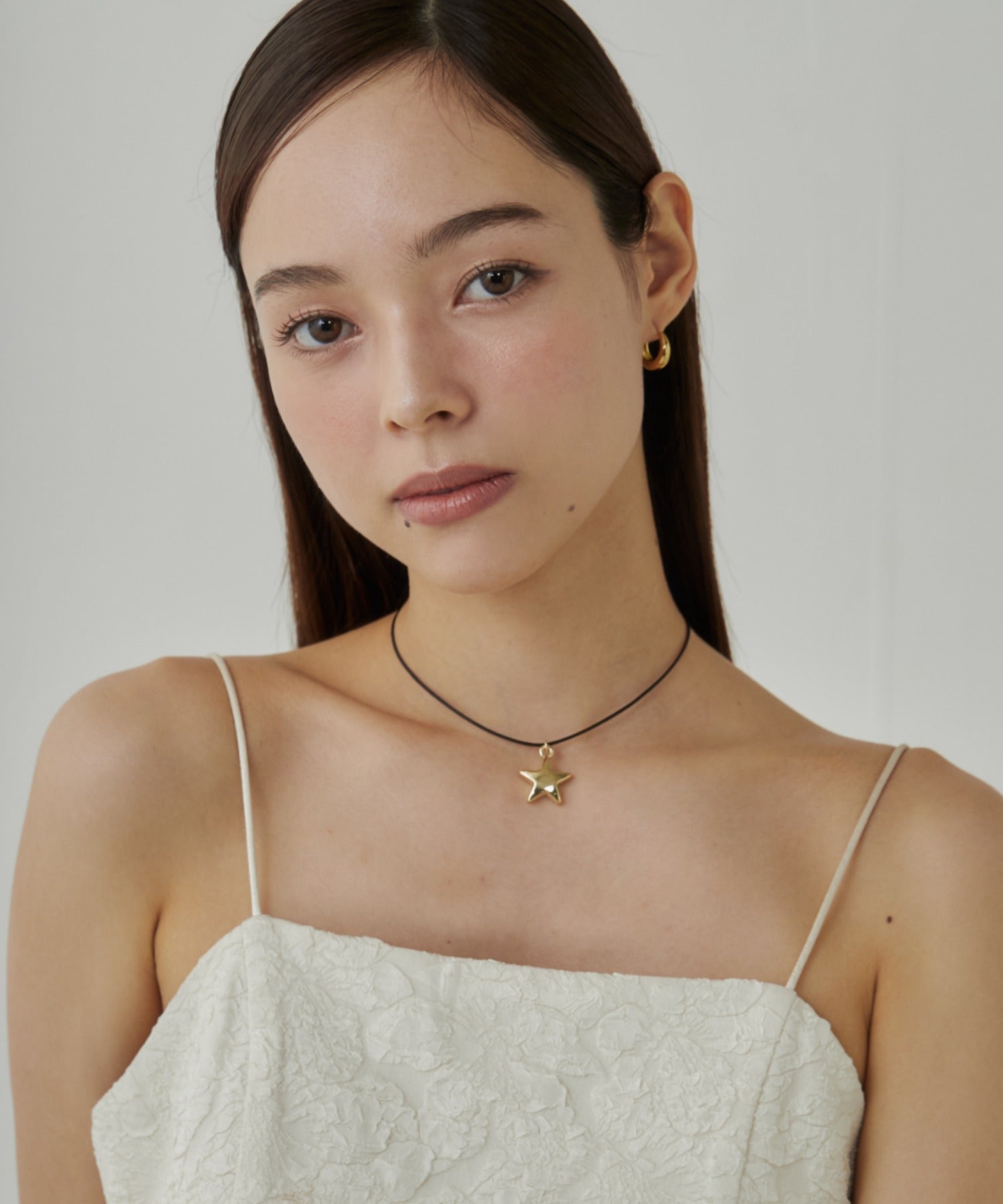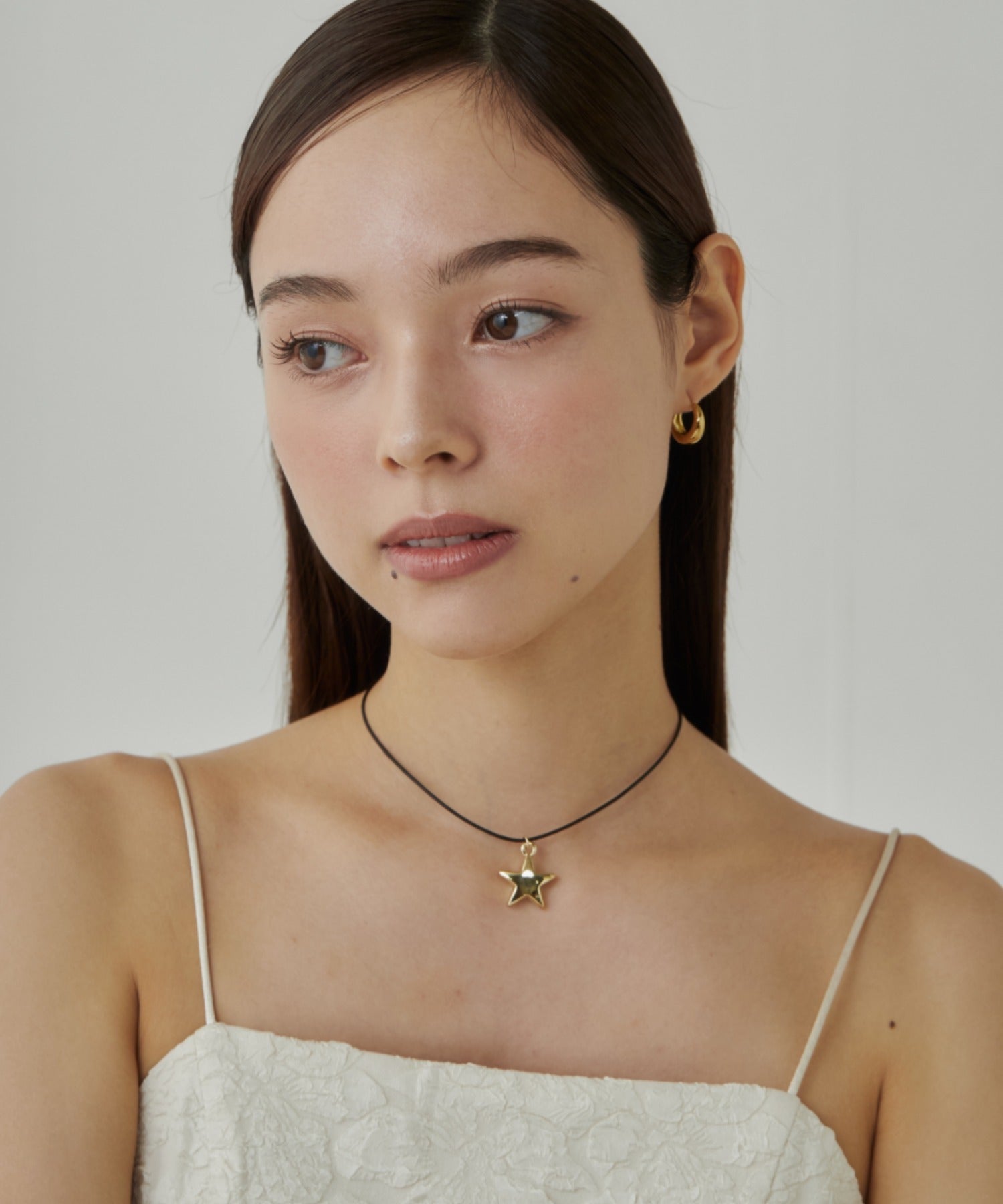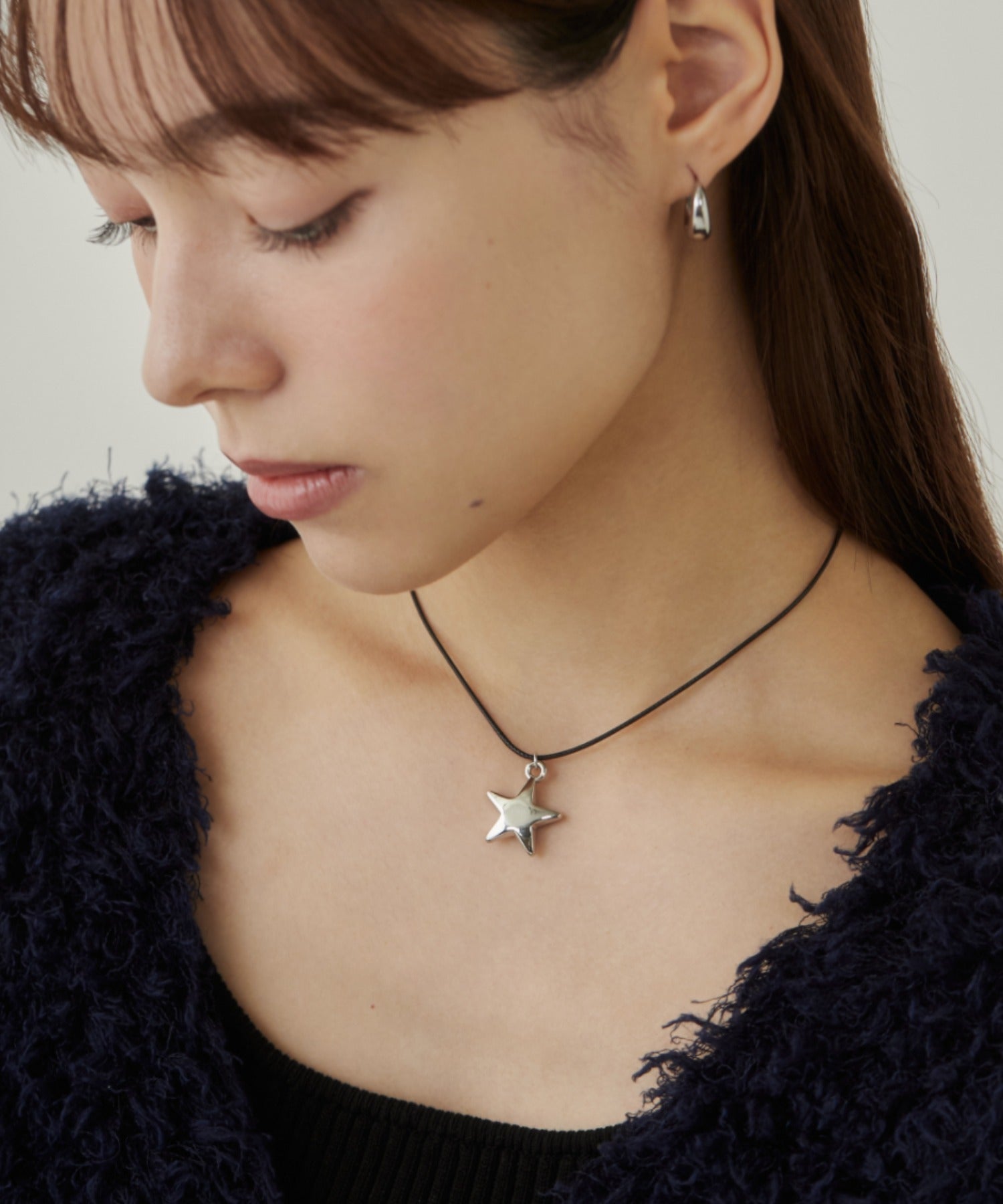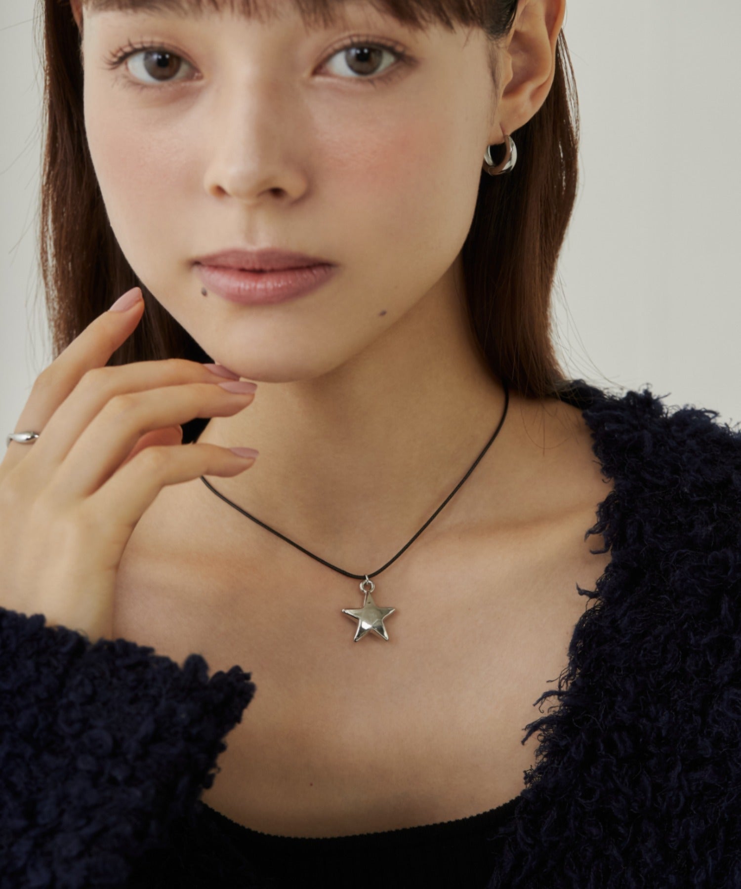 大人可愛い印象のスターパーツがポイントで、シンプルコーデはもちろん、モードやエレガント、オケージョンコーデにも合わせやすいアイテムです。