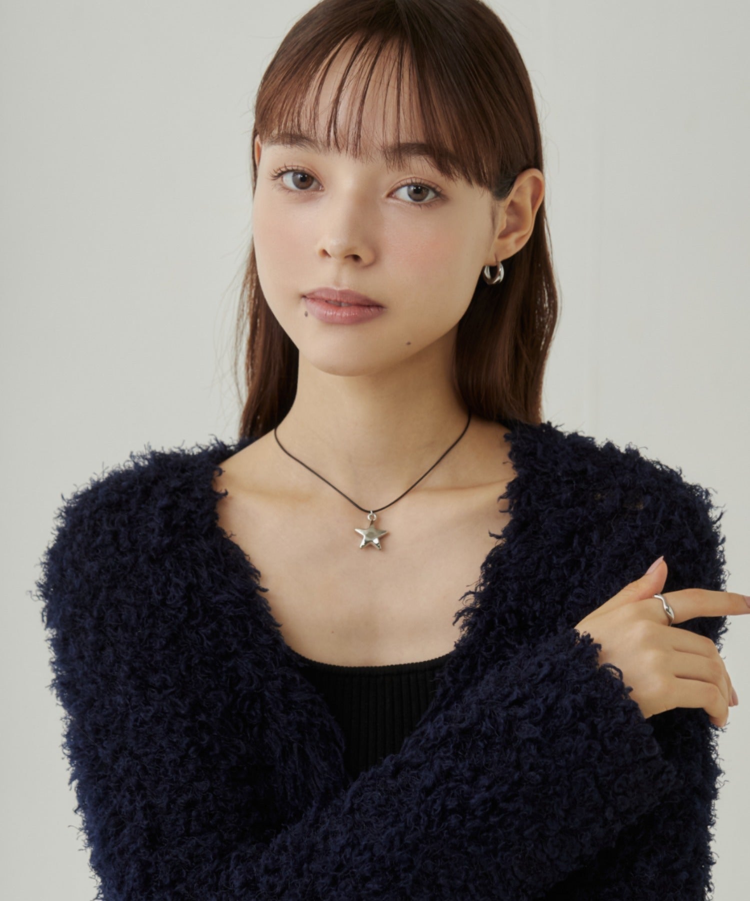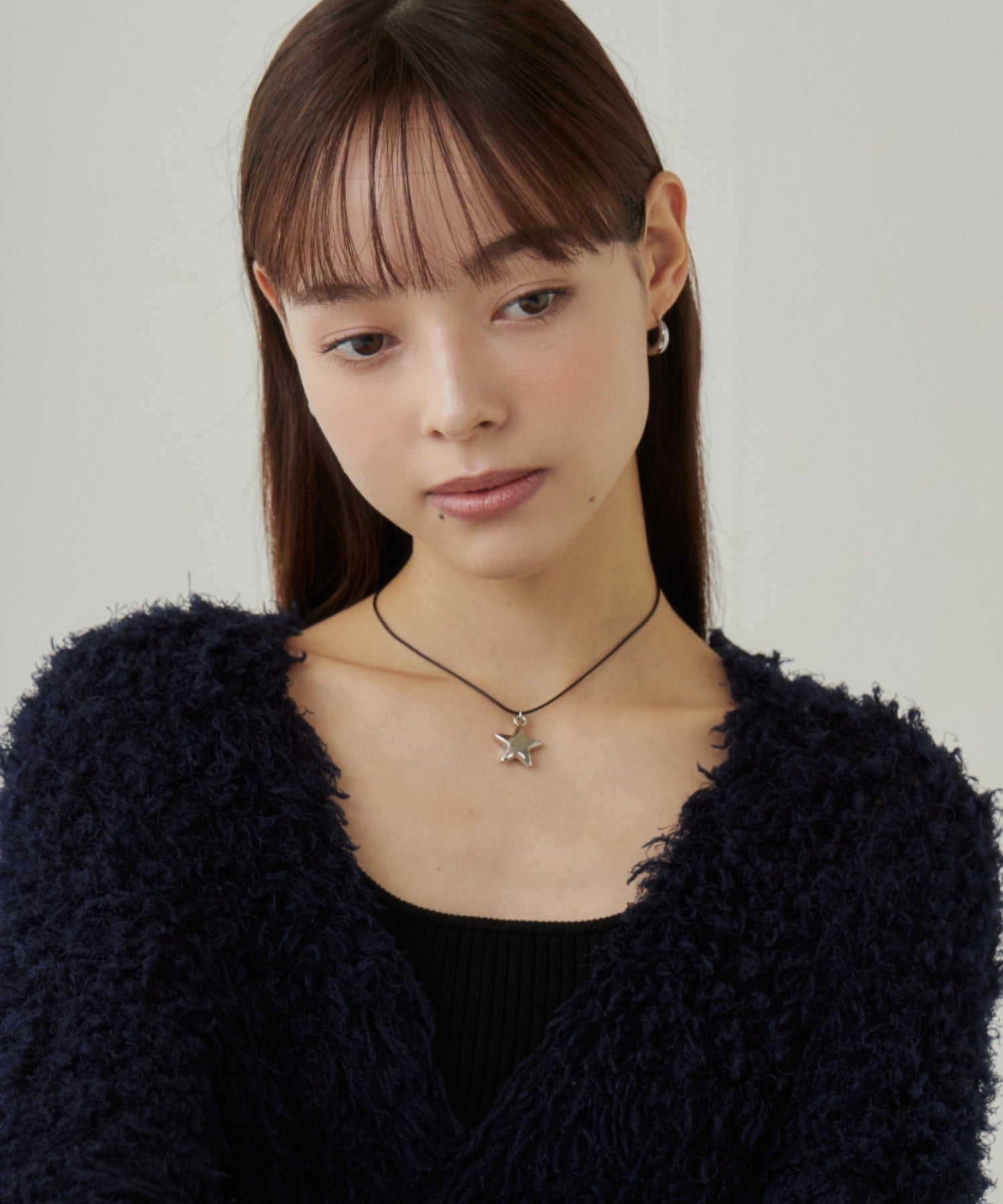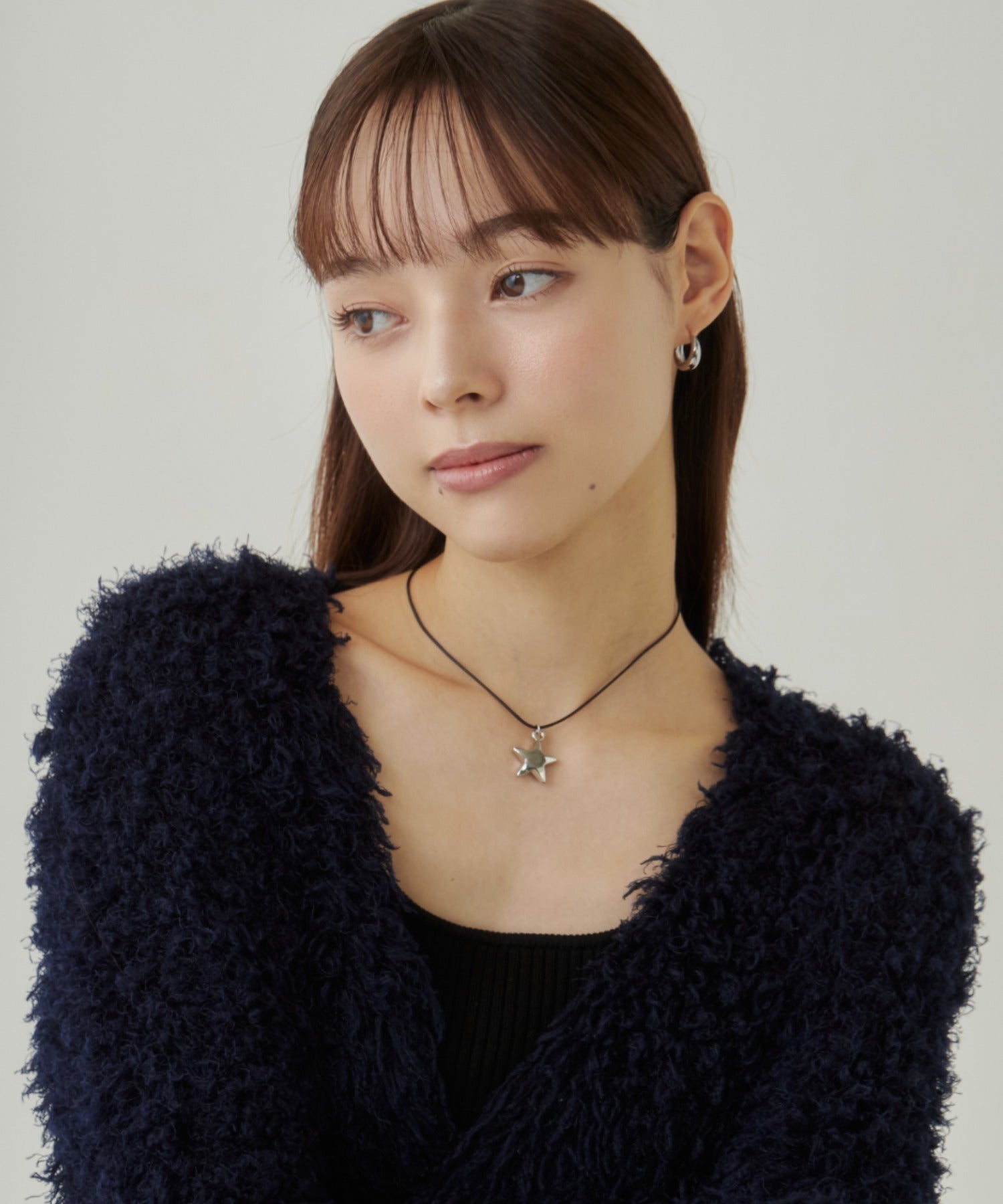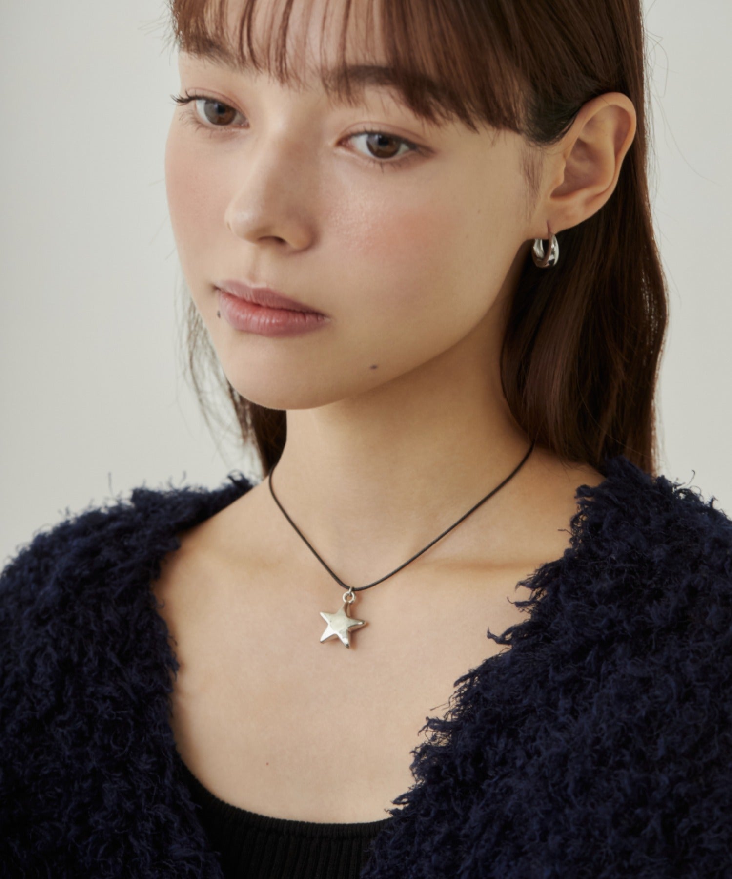 大人可愛い印象のスターパーツがポイントで、シンプルコーデはもちろん、モードやエレガント、オケージョンコーデにも合わせやすいアイテムです。
