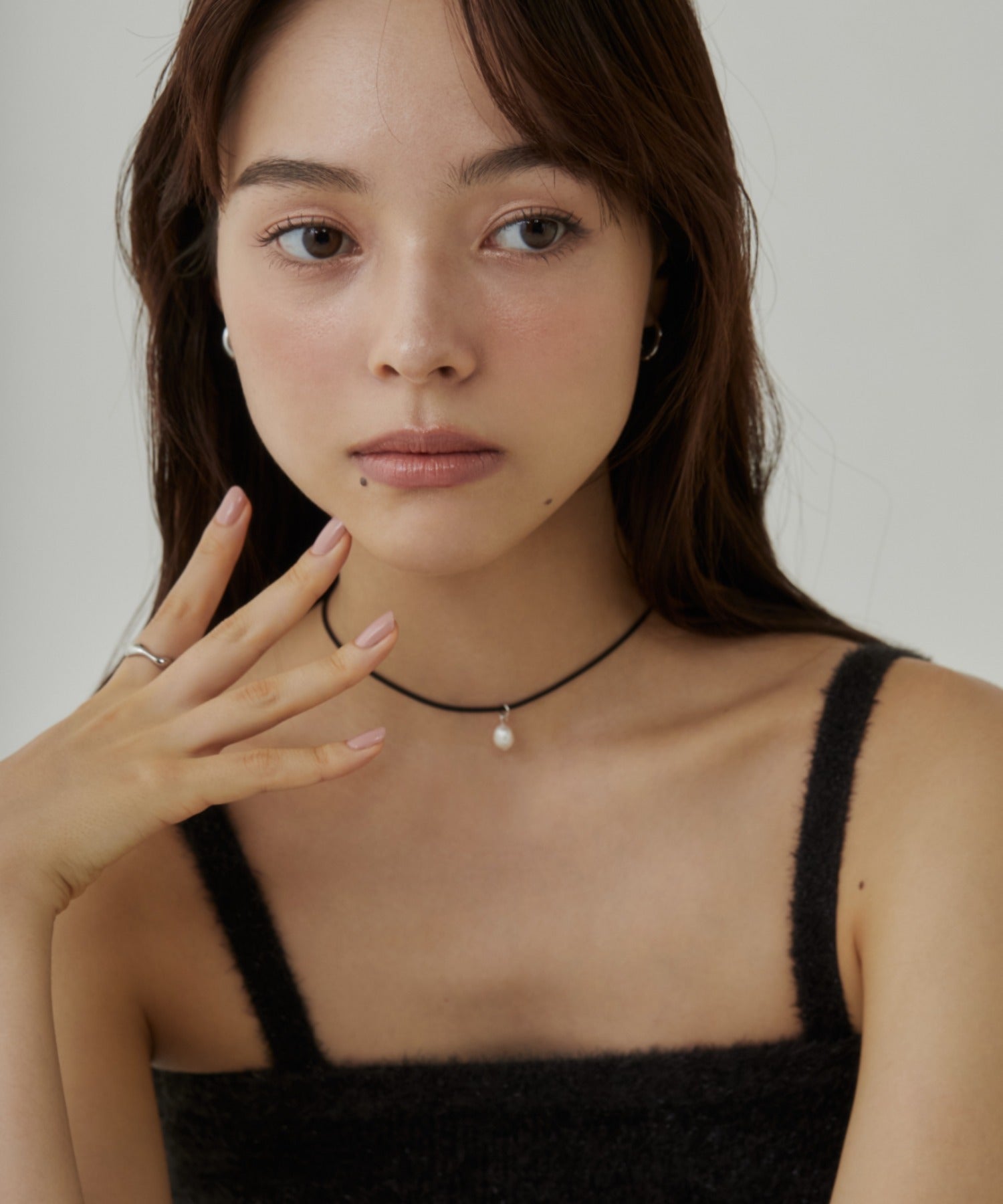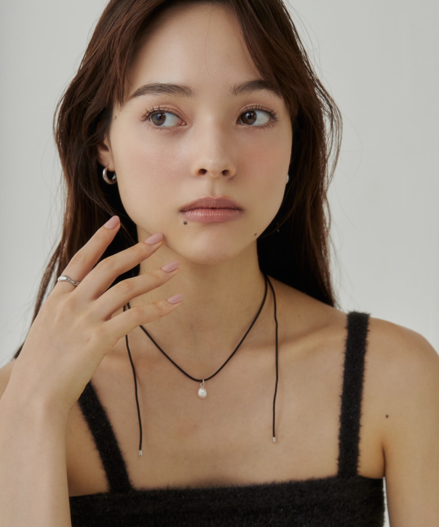 トレンド感のあるコードチョーカーは、巻き方や結び方を変えて自在に楽しめます。