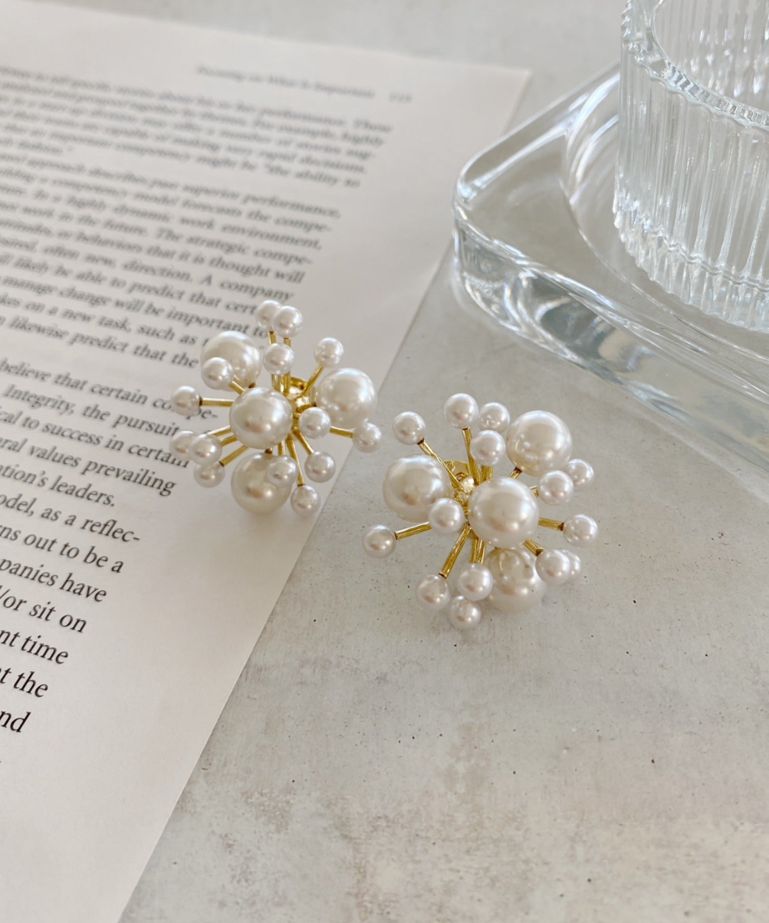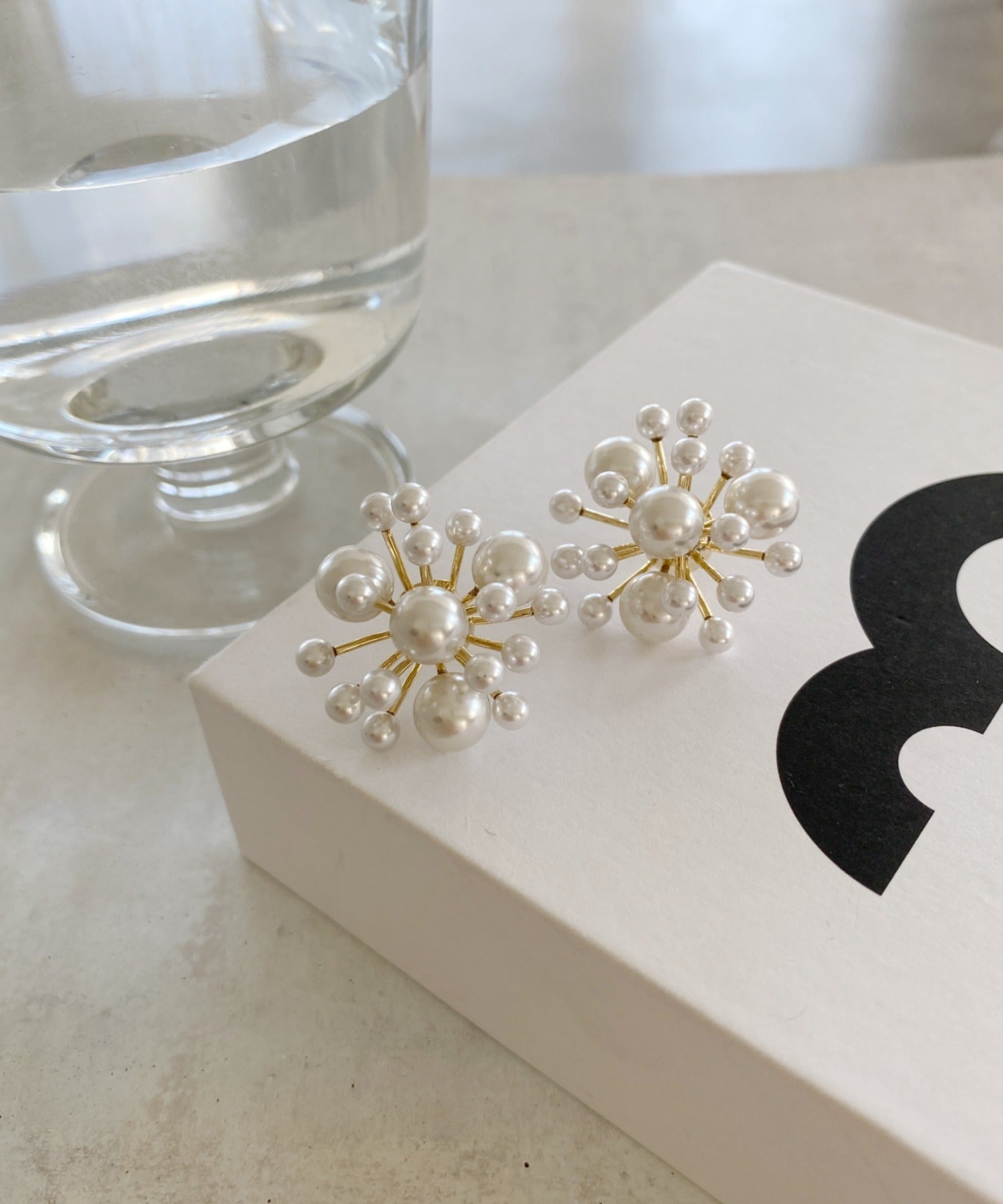 美しく光り輝くホワイトパールを、立体的に組み合わせることで