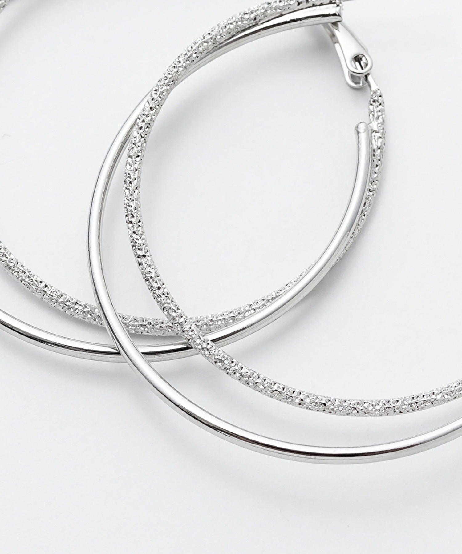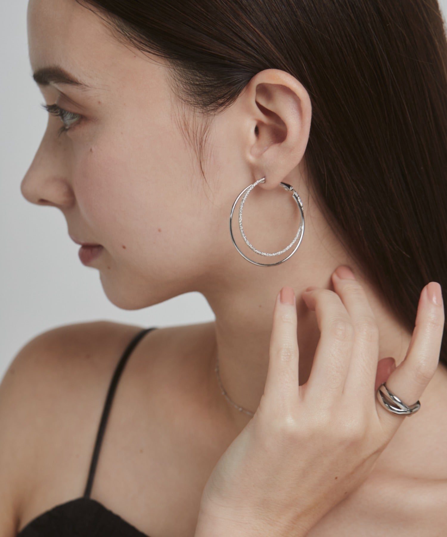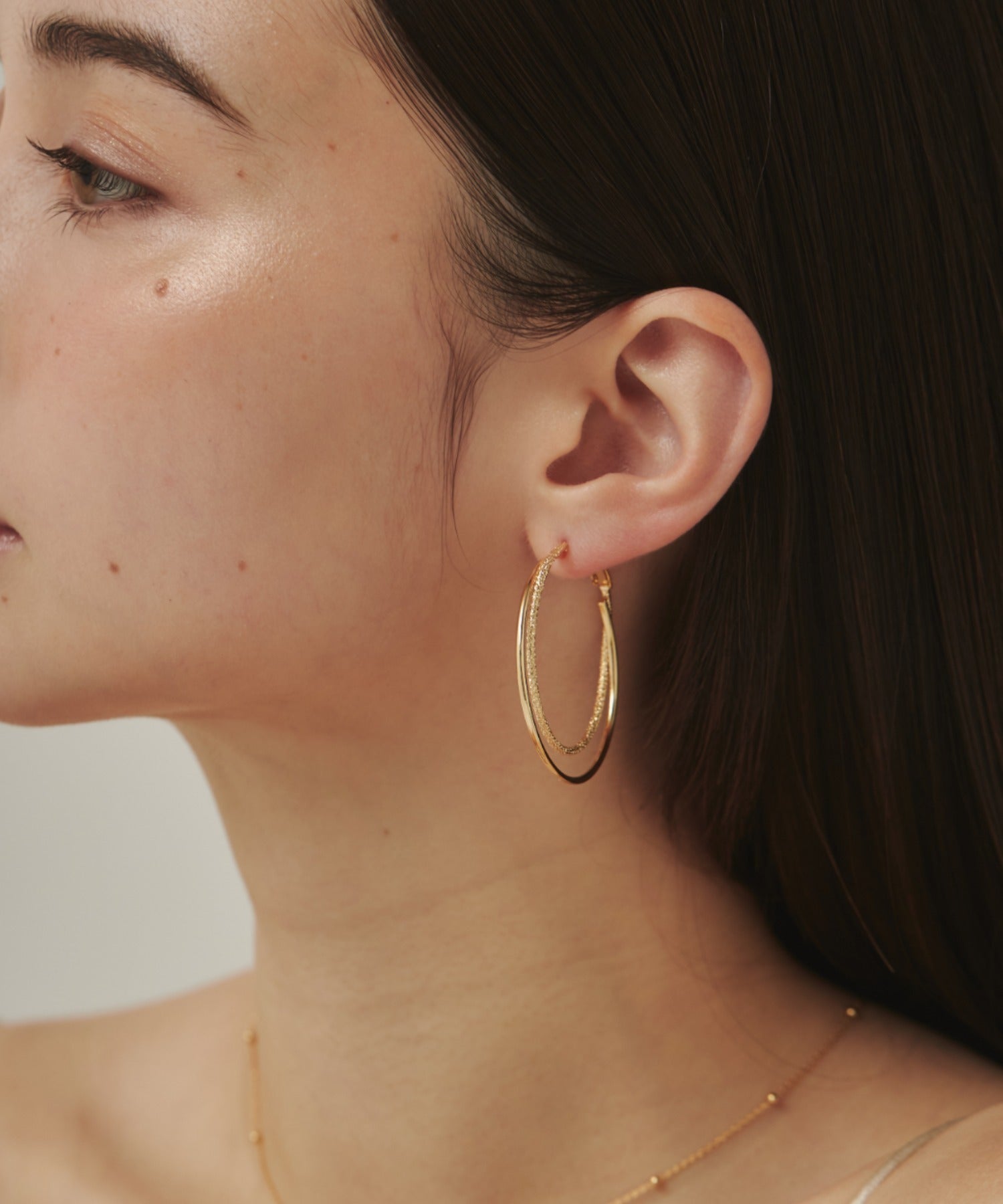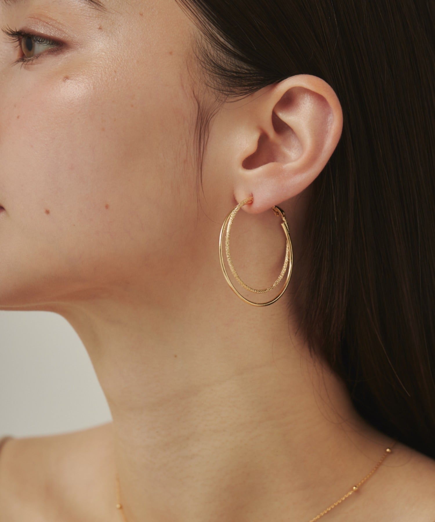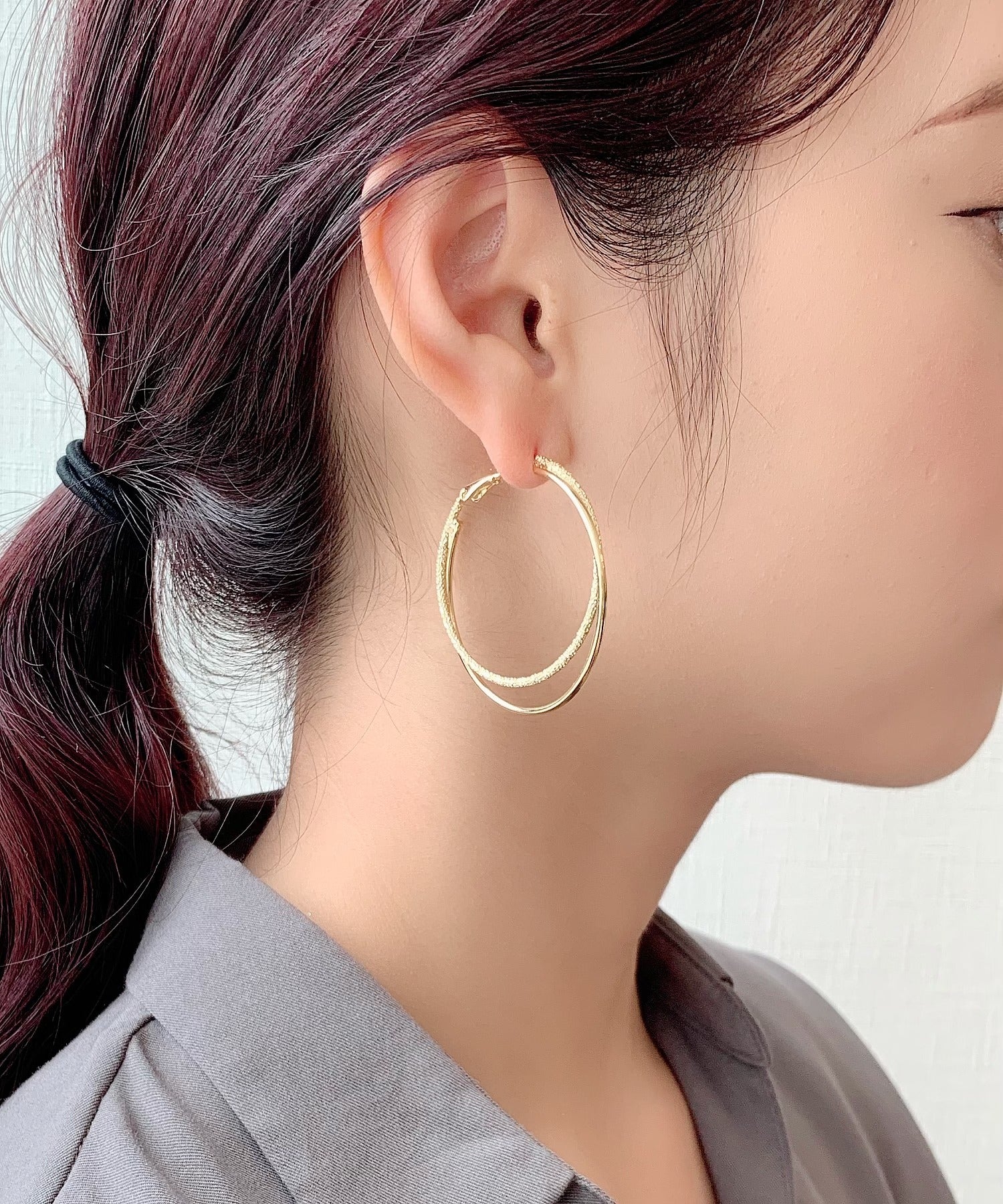優しい手触りの梨地とシンプルな素材を立体的に組み合わせたフープピアス。