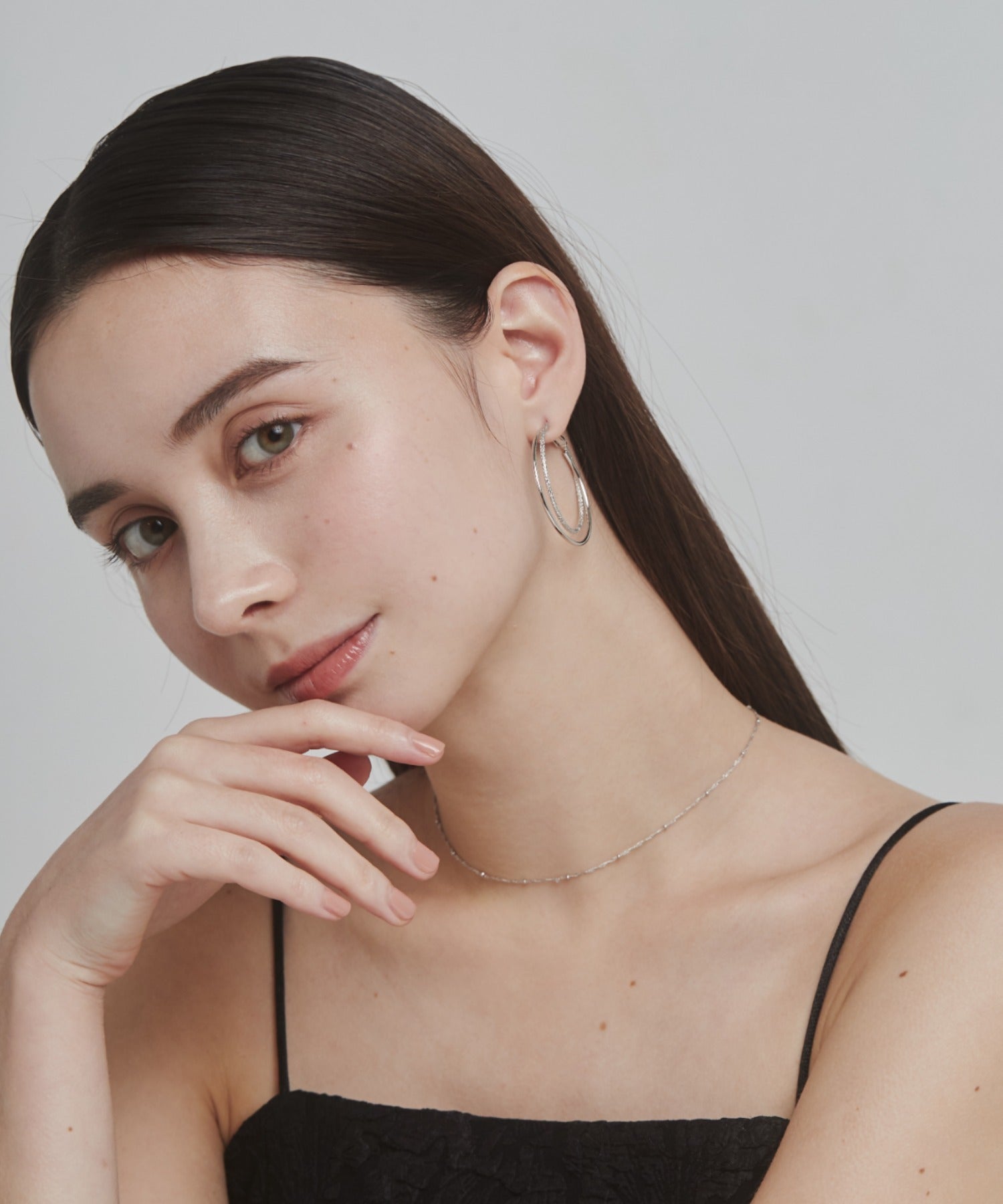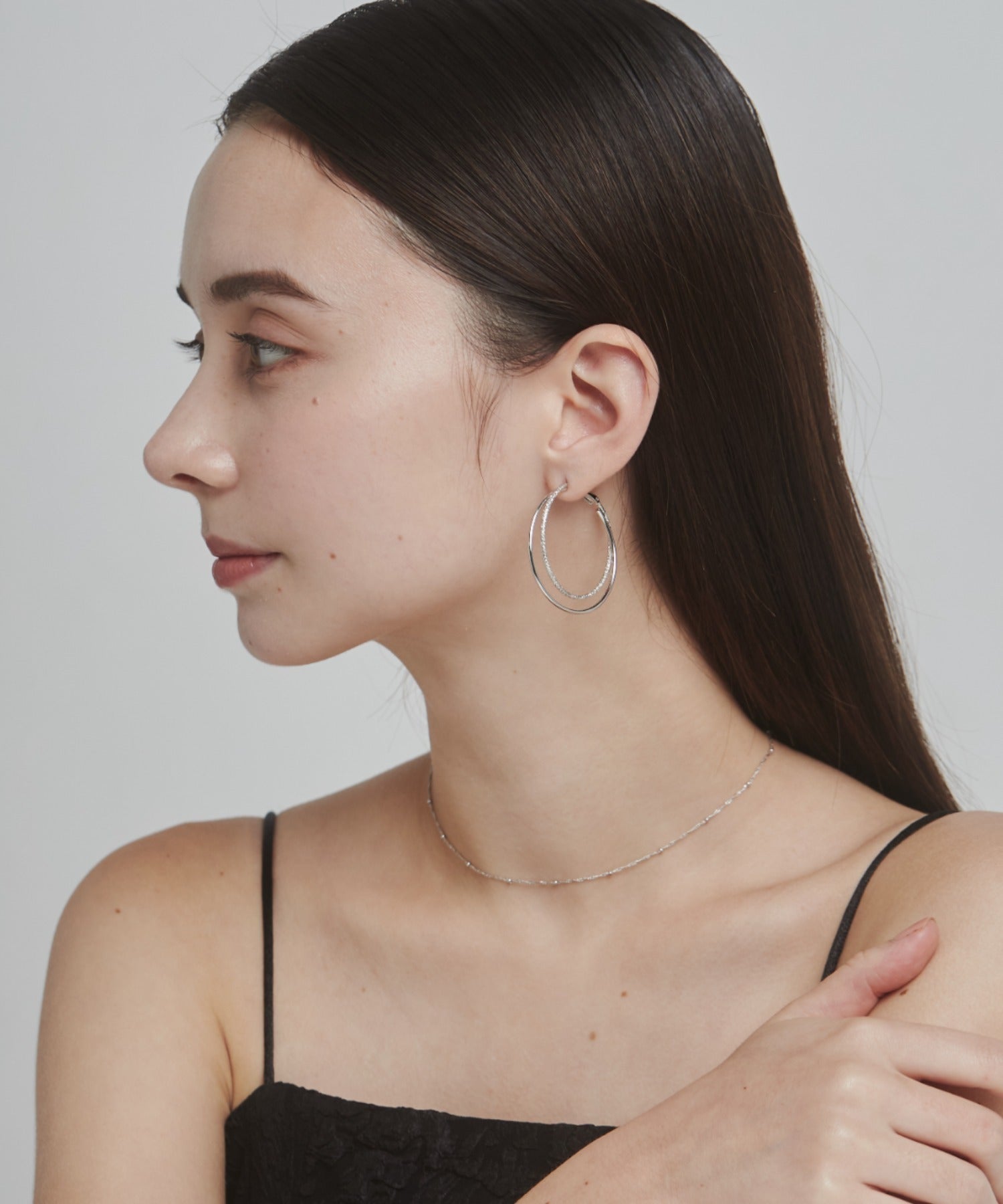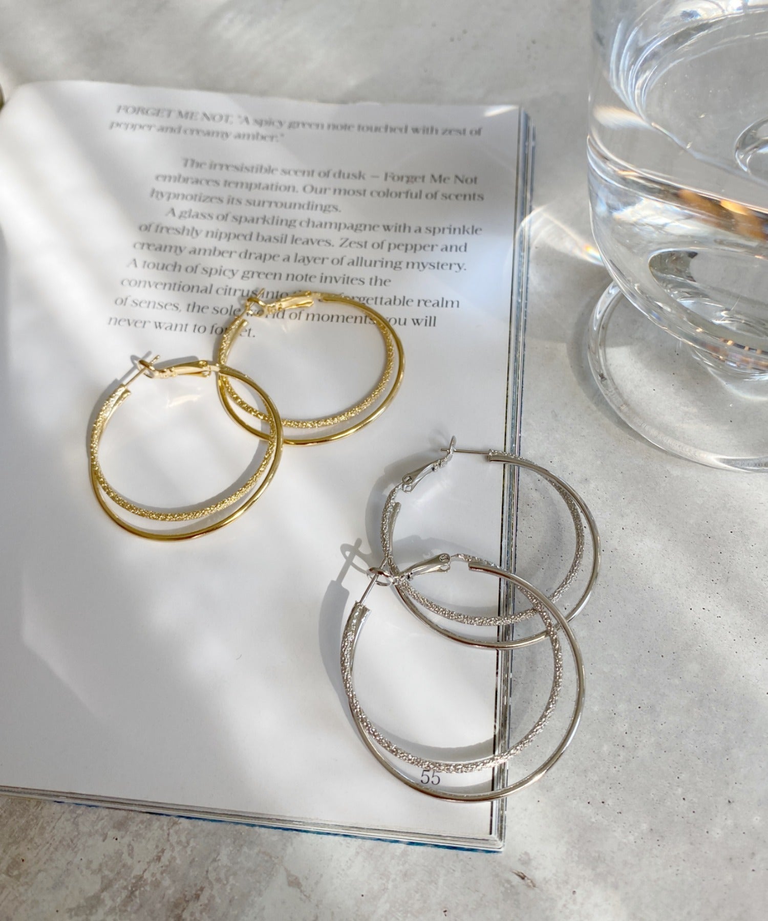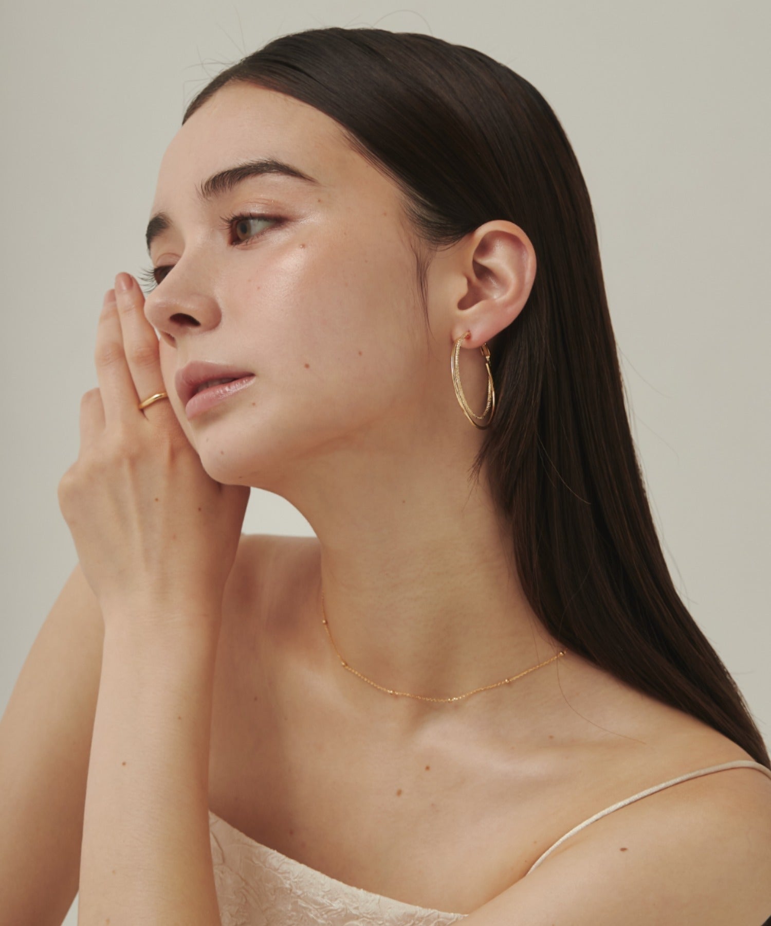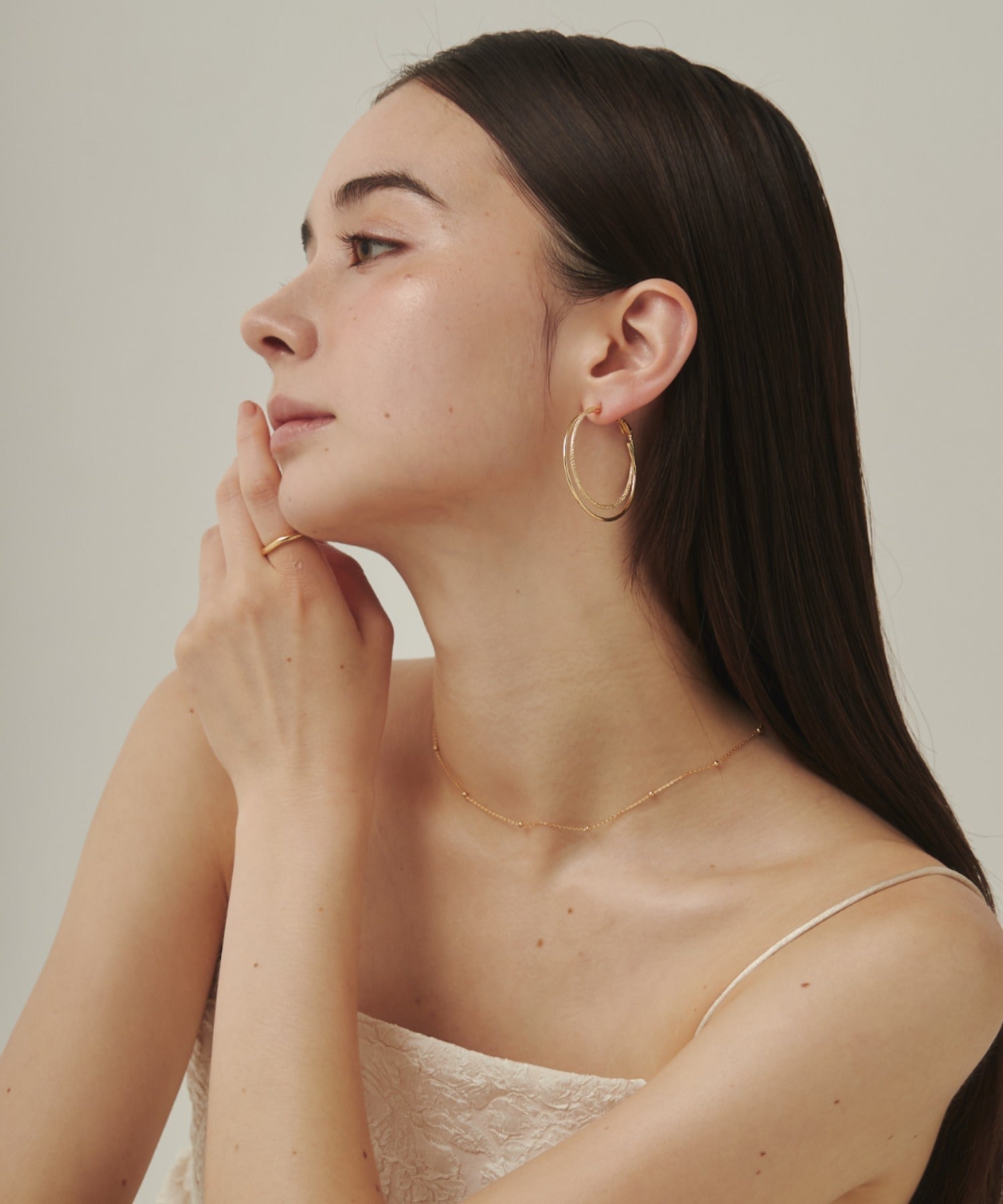 優しい手触りの梨地とシンプルな素材を立体的に組み合わせたフープピアス。