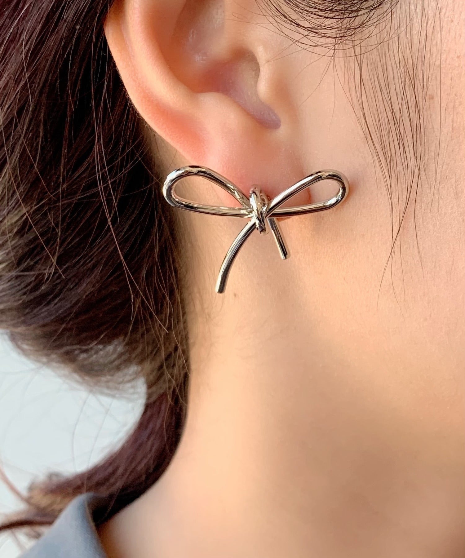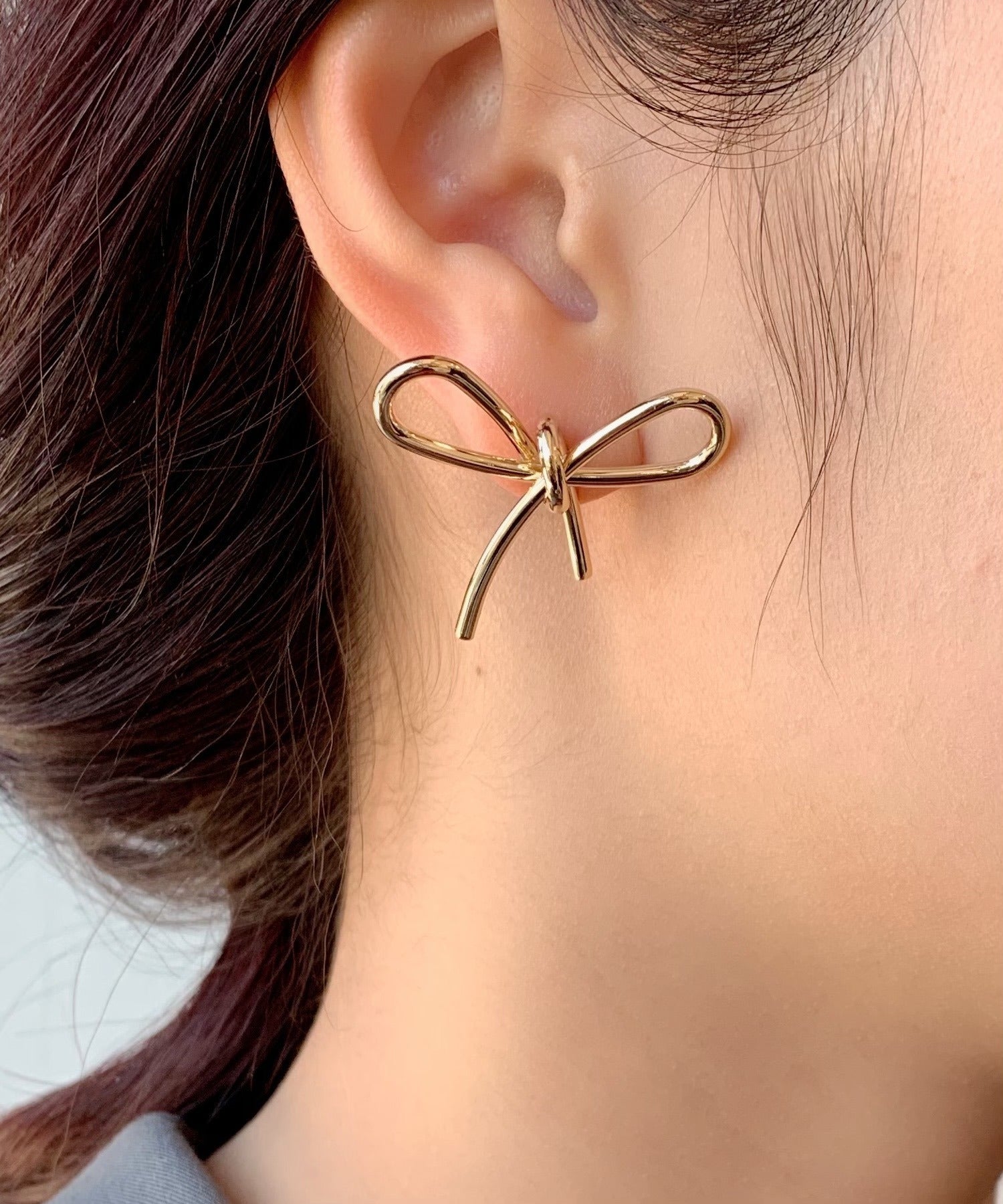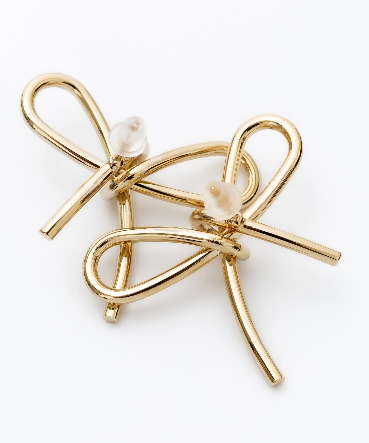 ちょうちょ結びのようにパーツを湾曲させたデザインピアス。
