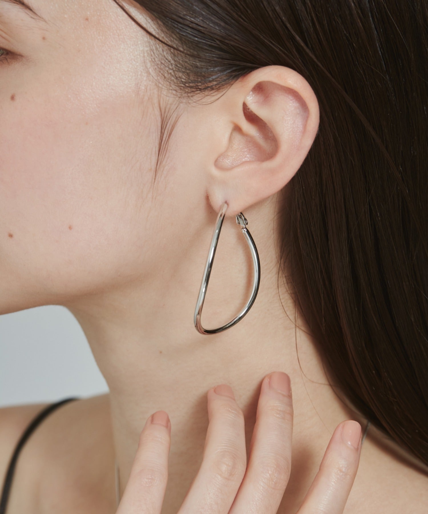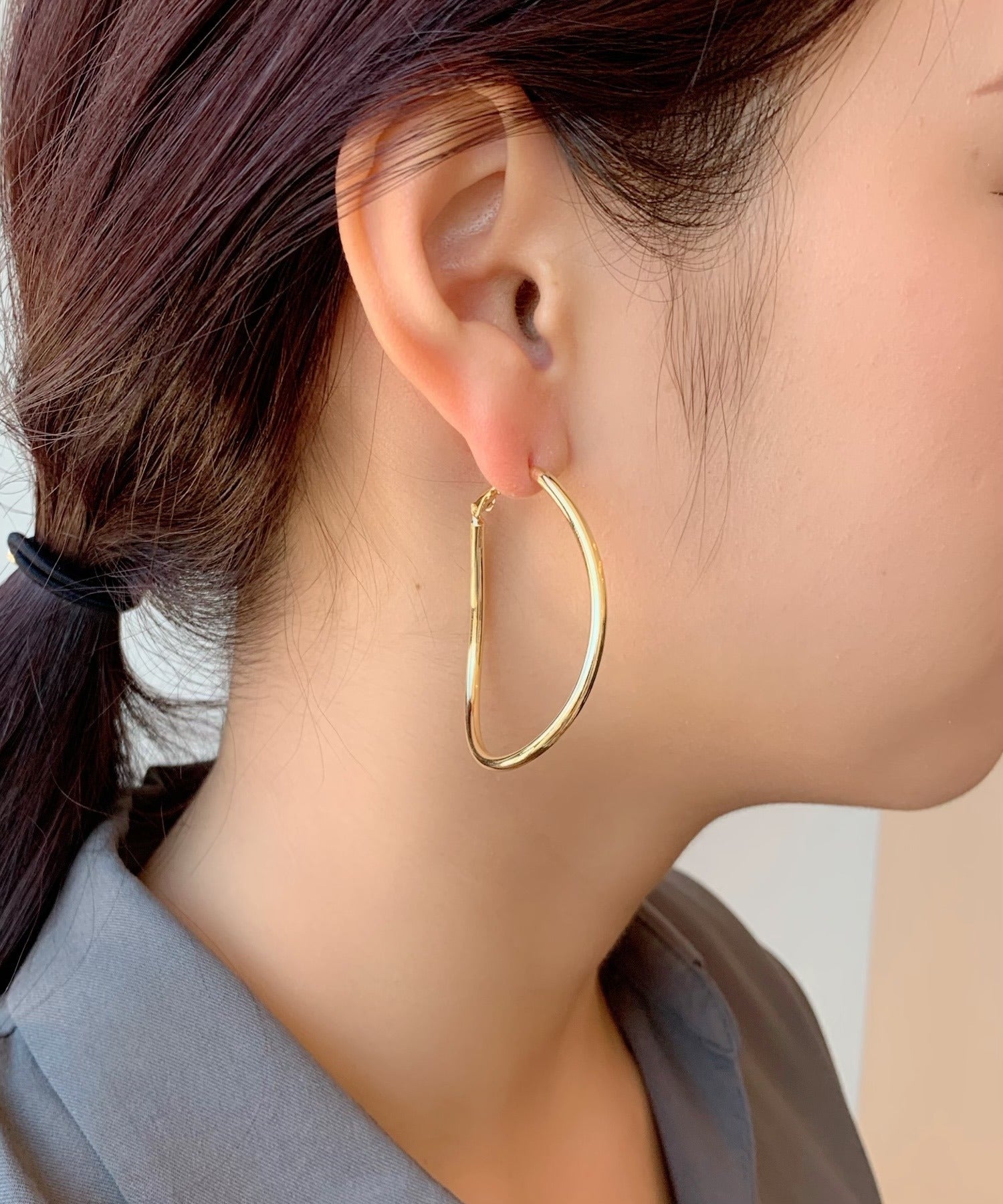 立体的に湾曲させたオーバル(楕円)型のフープピアス。