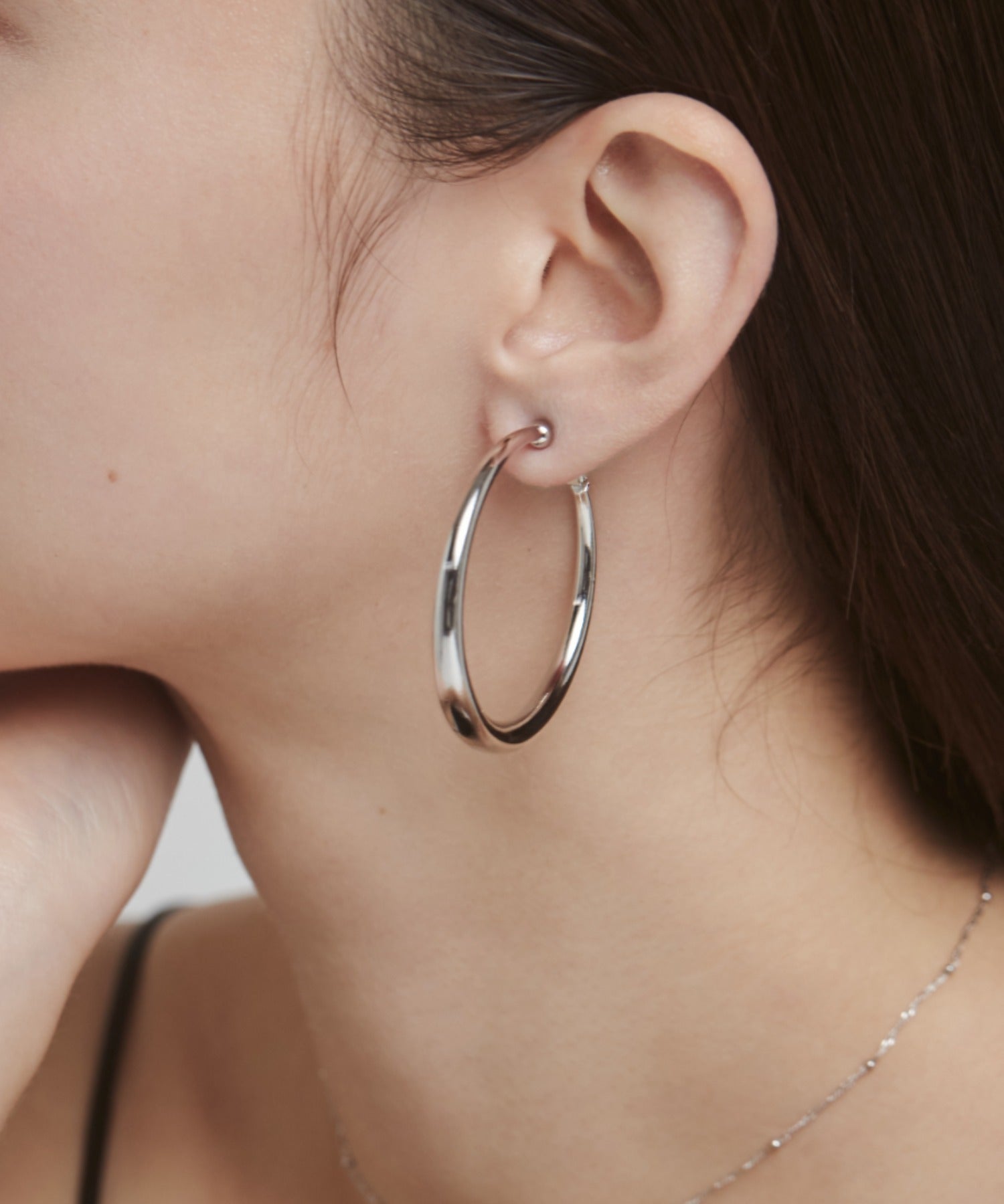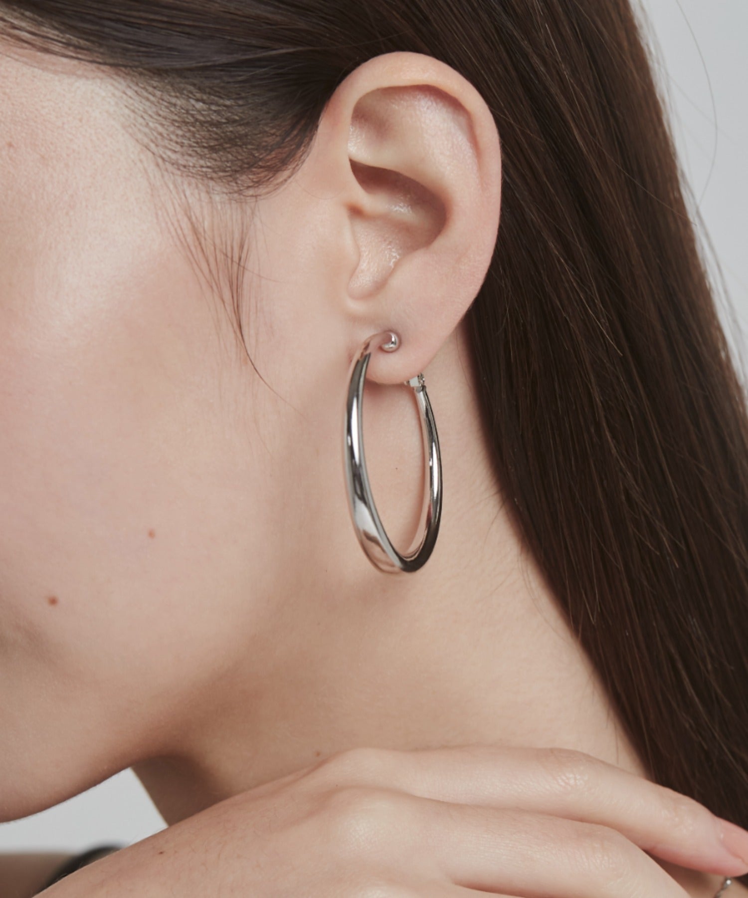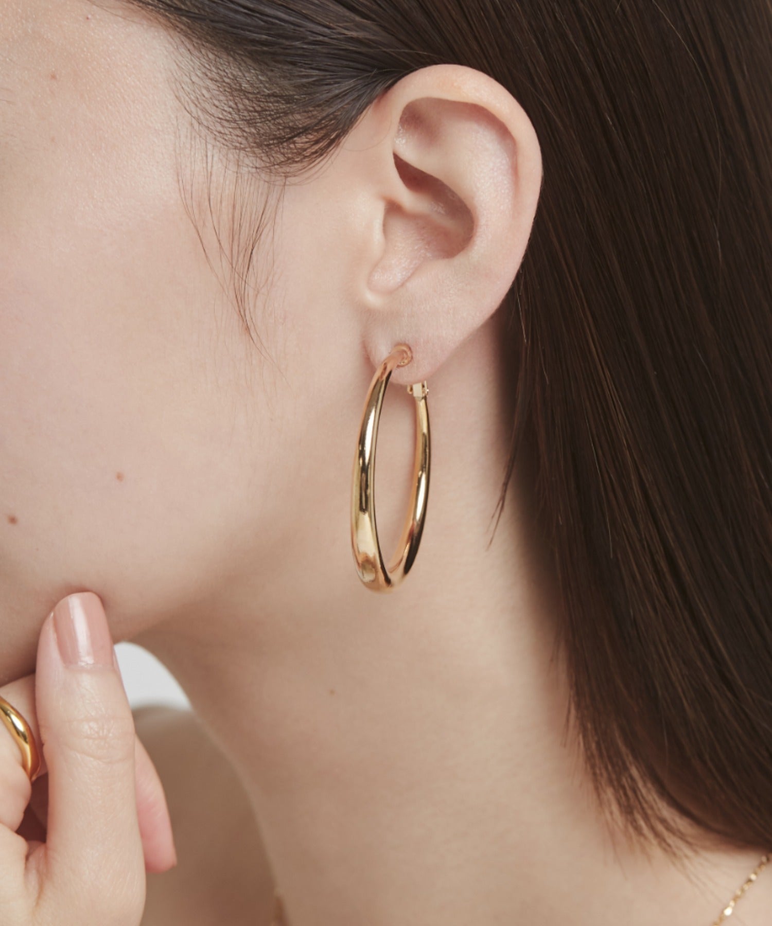 ほどよいボリュームの丸みを帯びたデザインが大人な女性らしさを演出してくれるフープイヤリング。