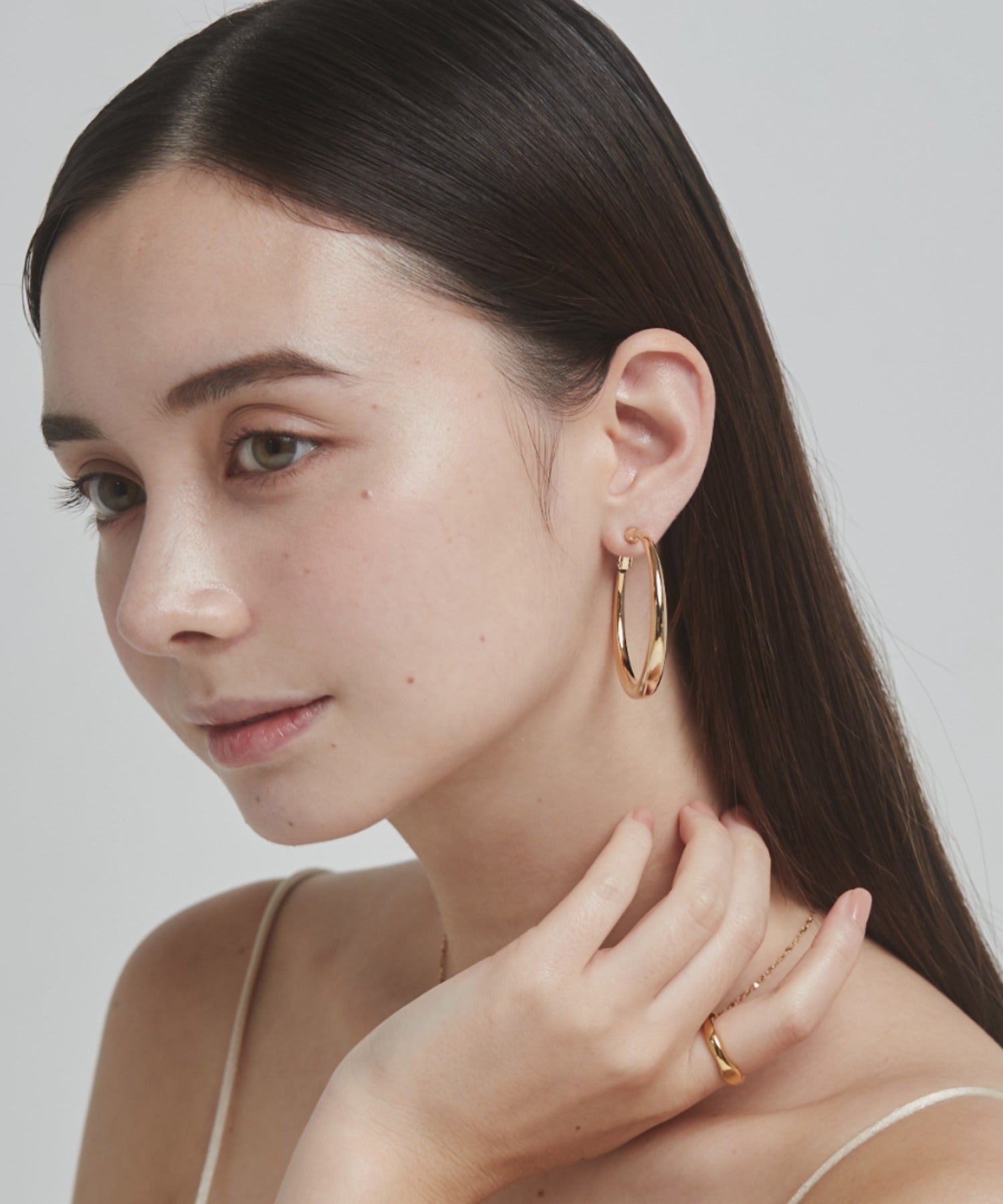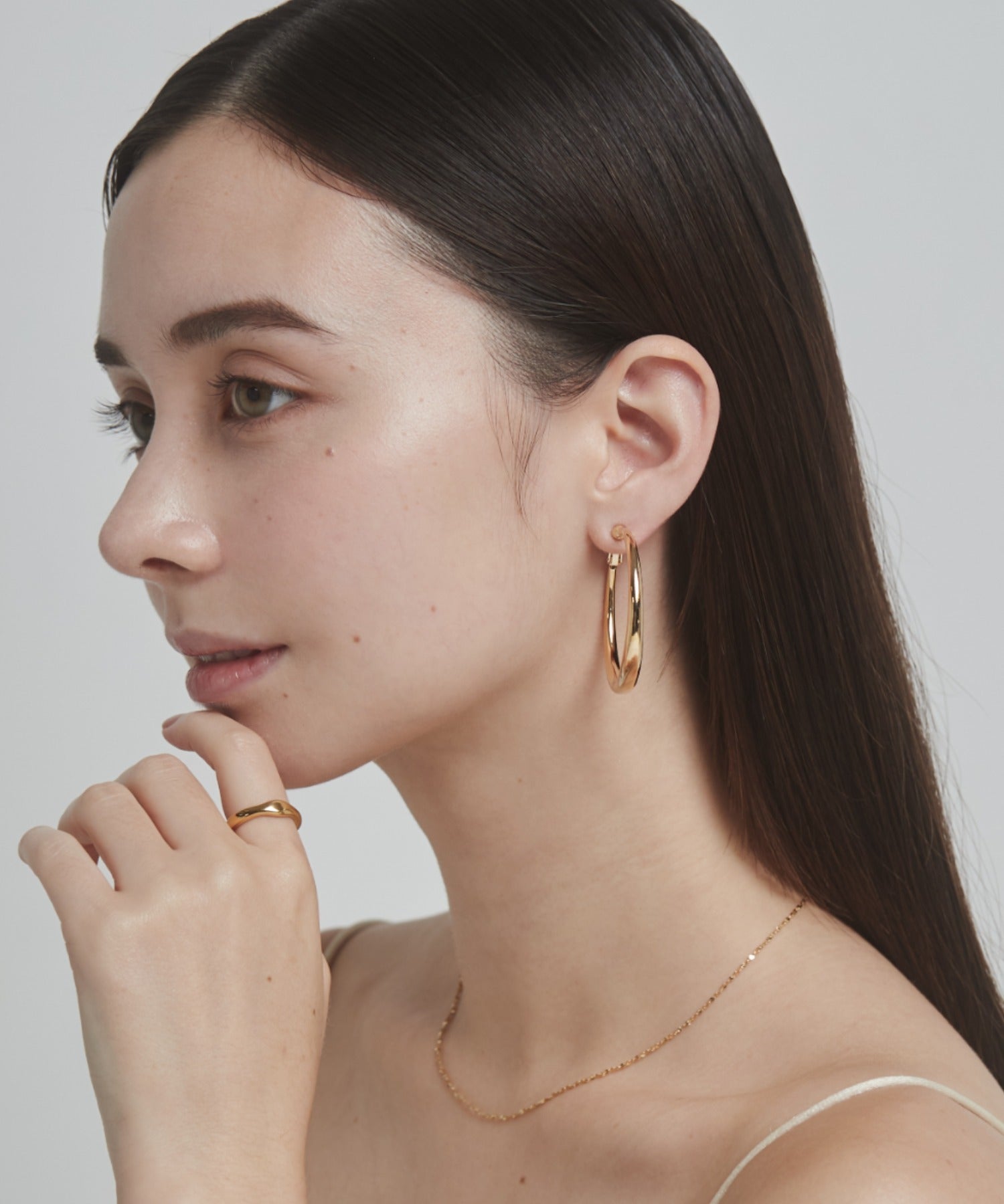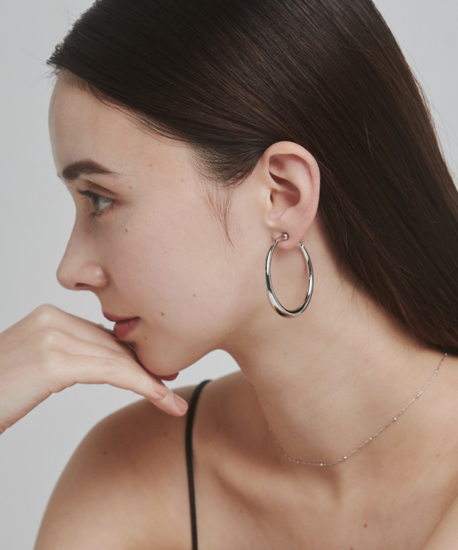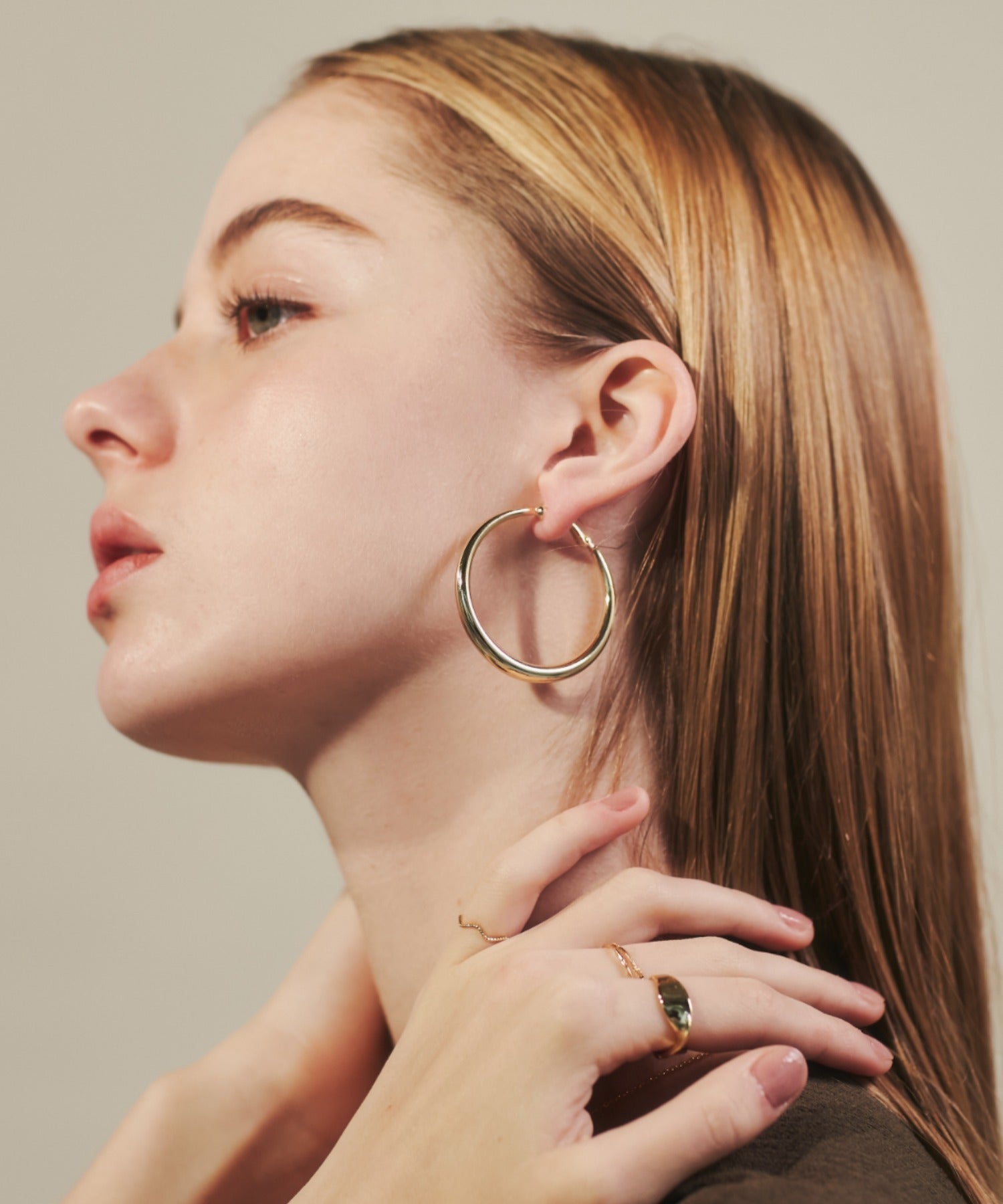 ほどよいボリュームの丸みを帯びたデザインが大人な女性らしさを演出してくれるフープイヤリング。