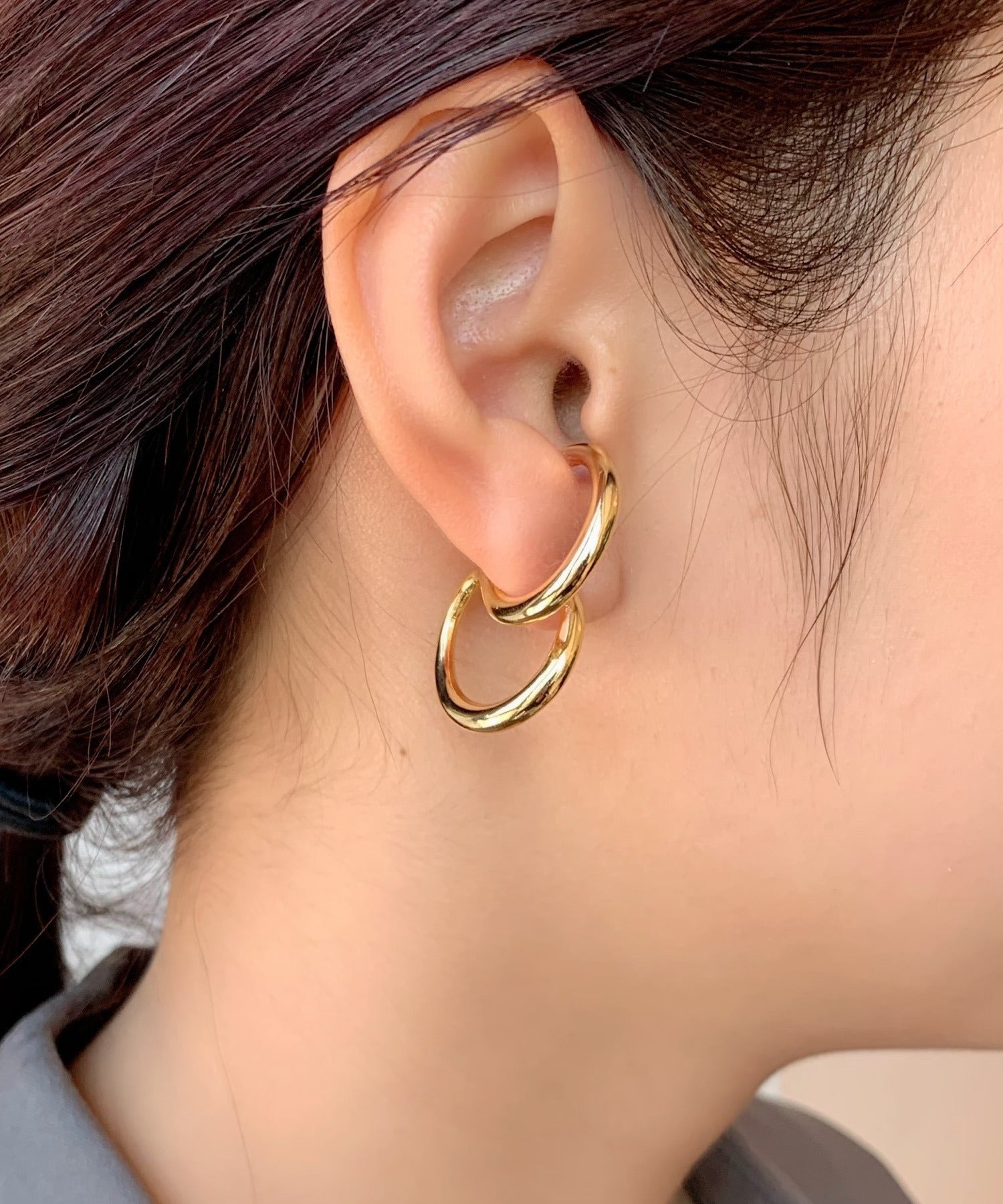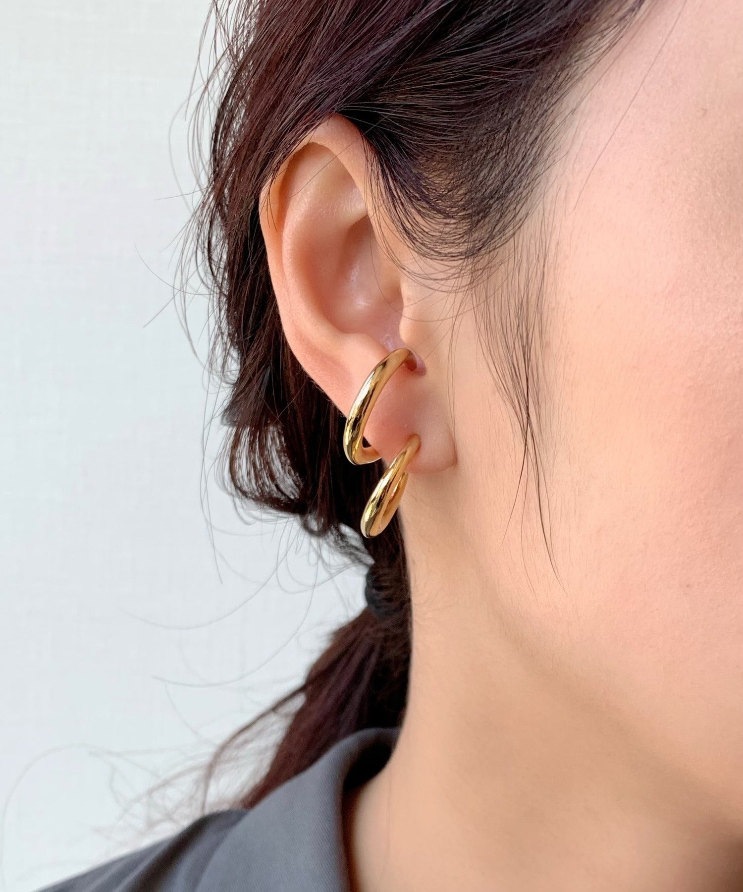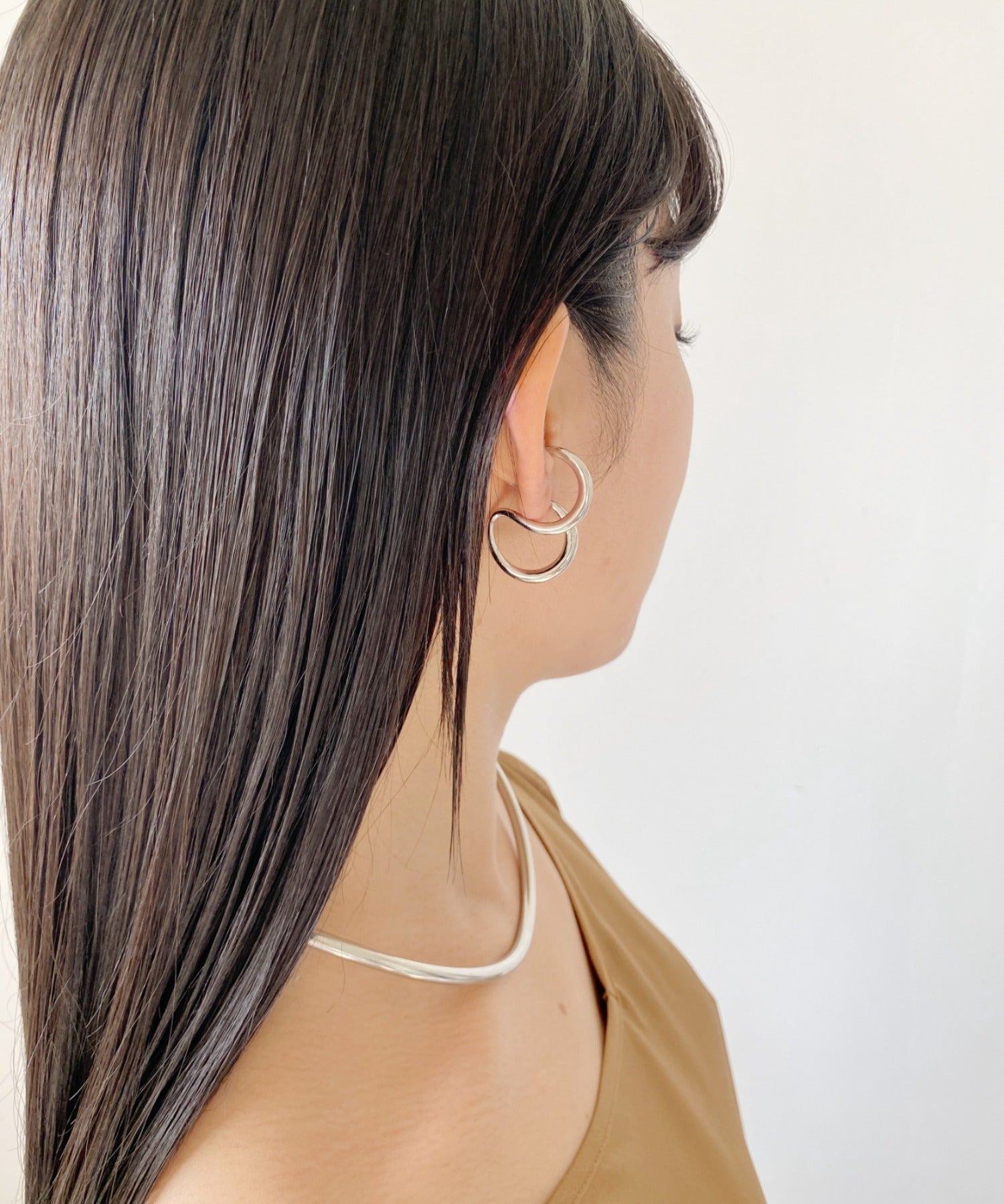柔らかい曲線で、イヤーカフのようなデザインの立体ピアス。