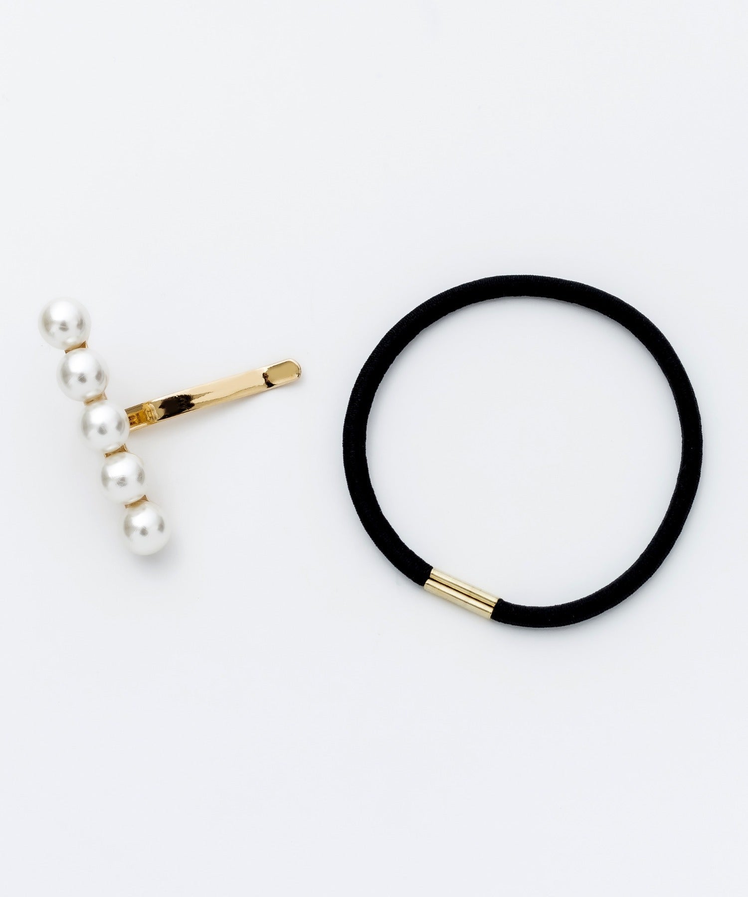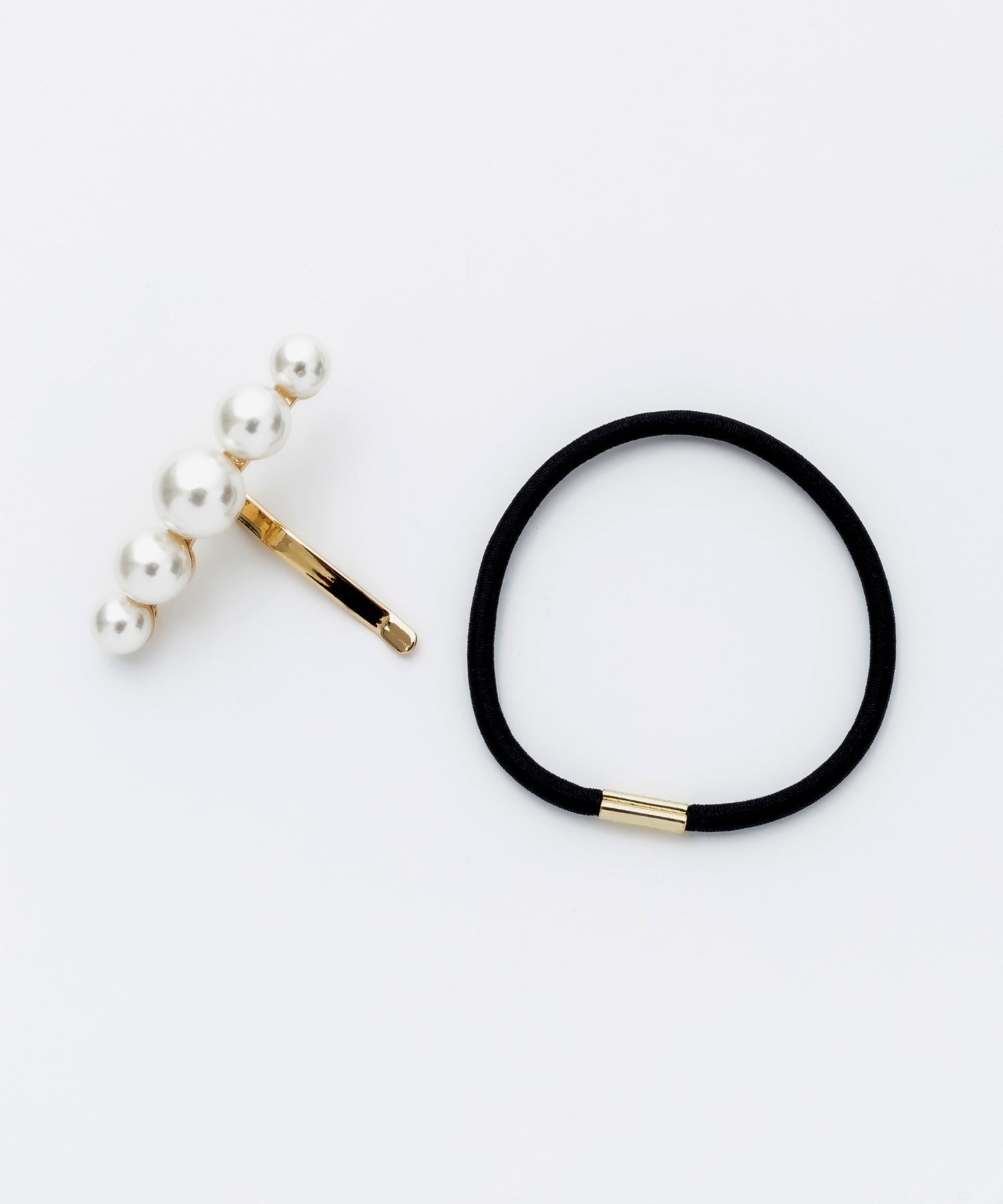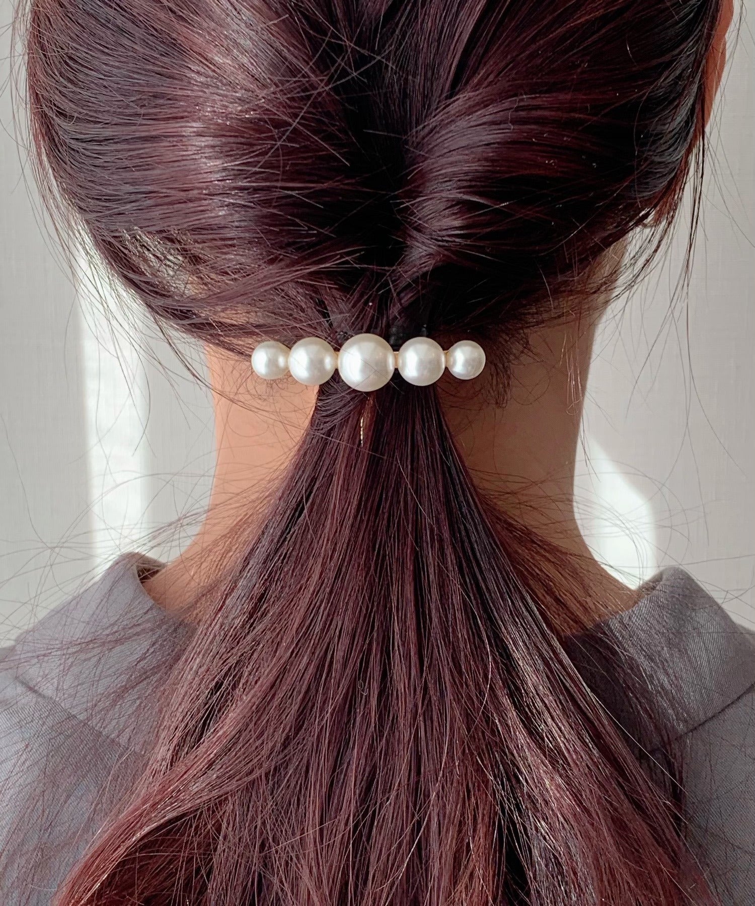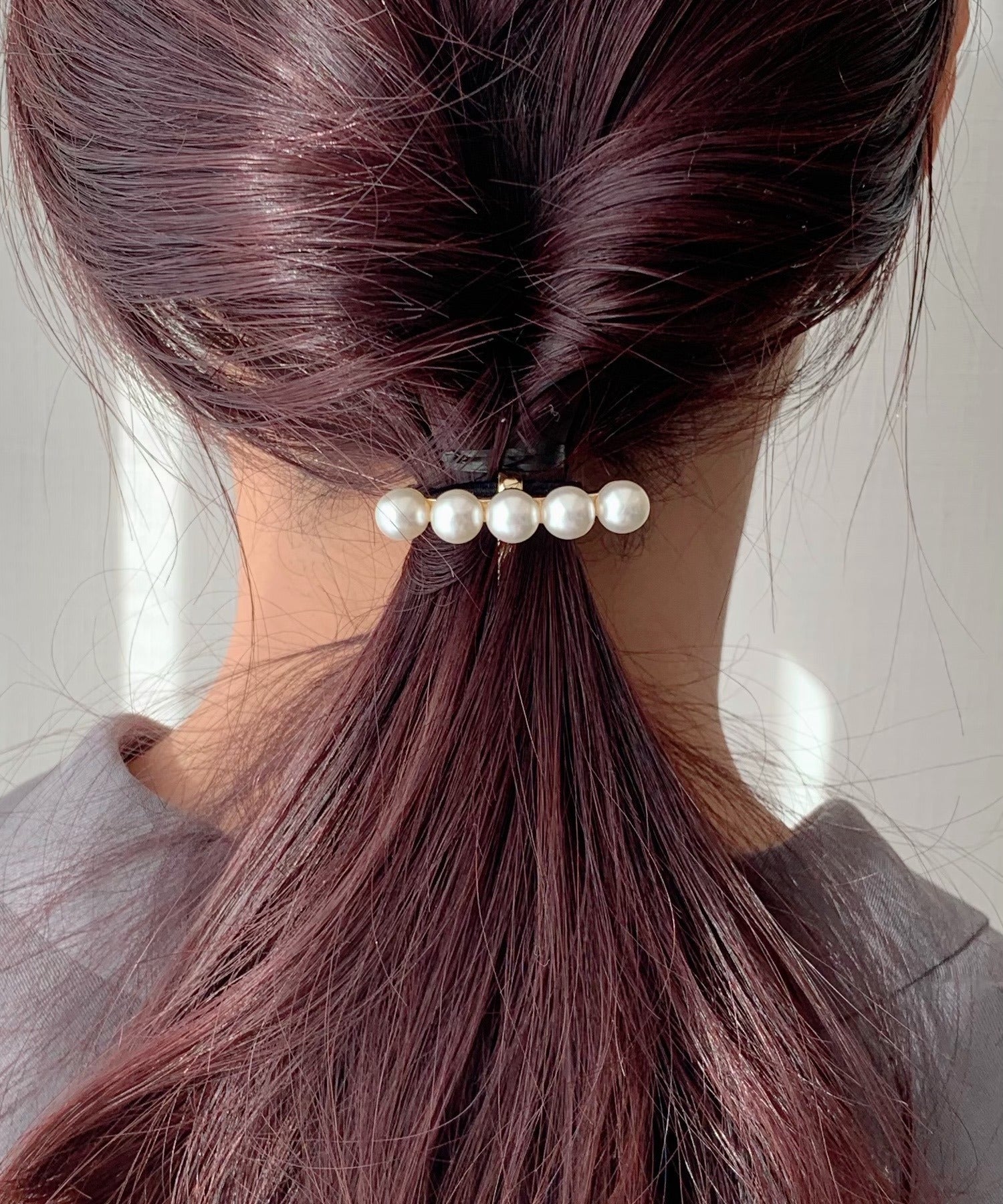 上品に光り輝くパールを5つ組み合わせたヘアアクセサリー。