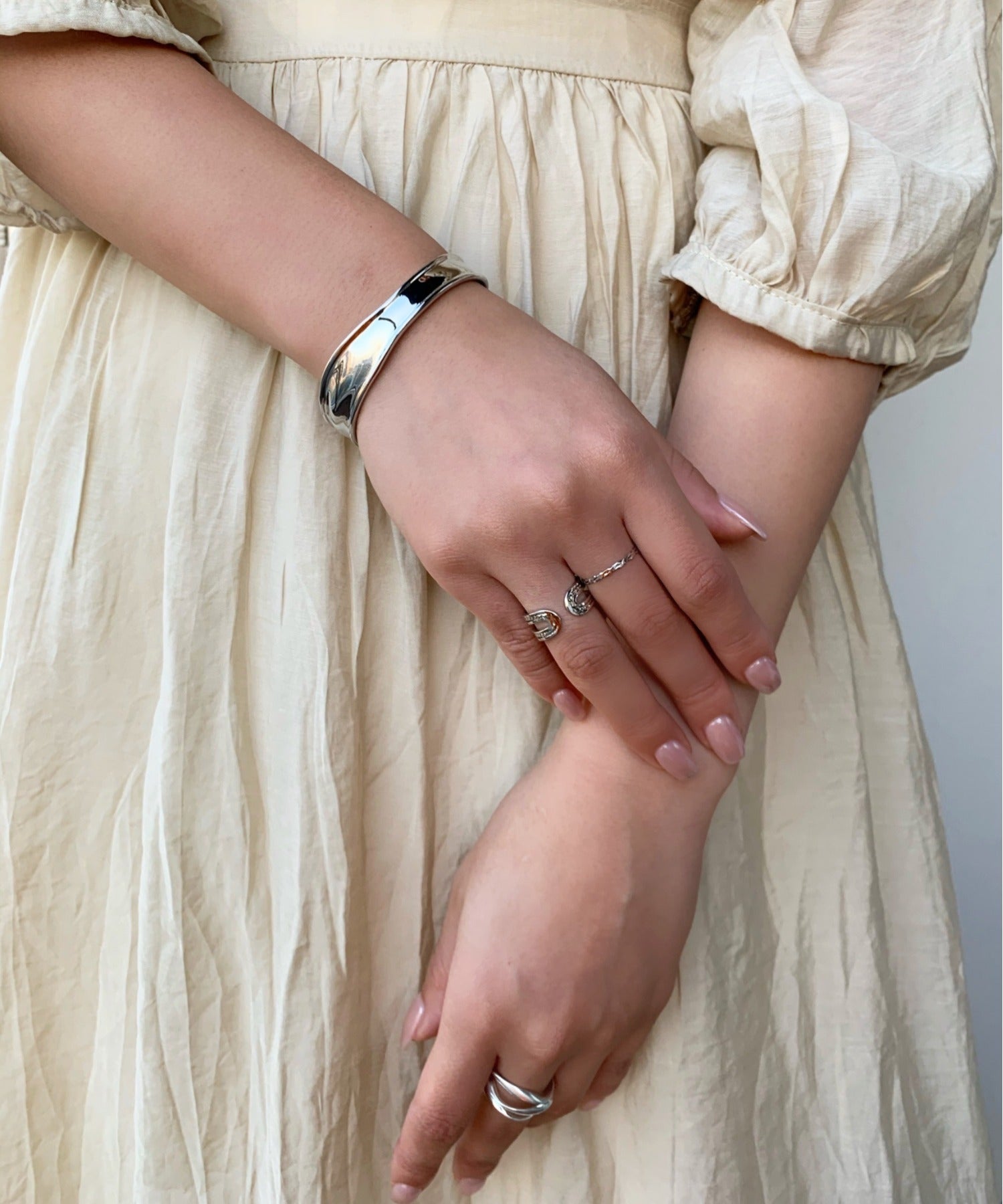 存在感がありアクセントとしても効果的。他のバングルと重ね付けしても◎