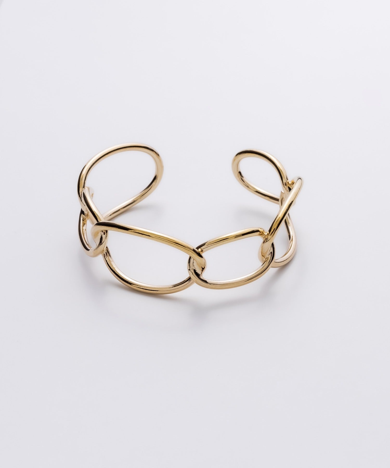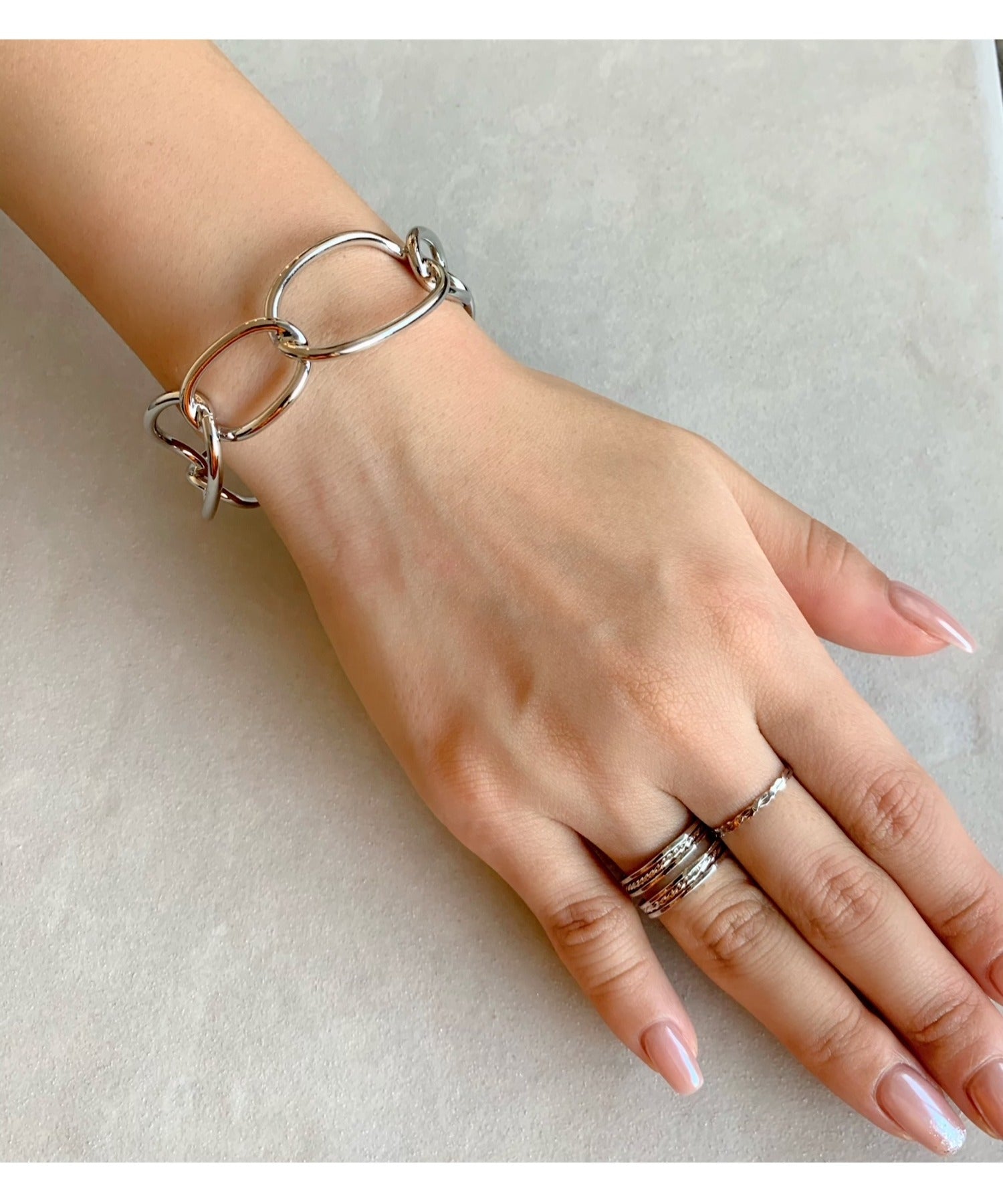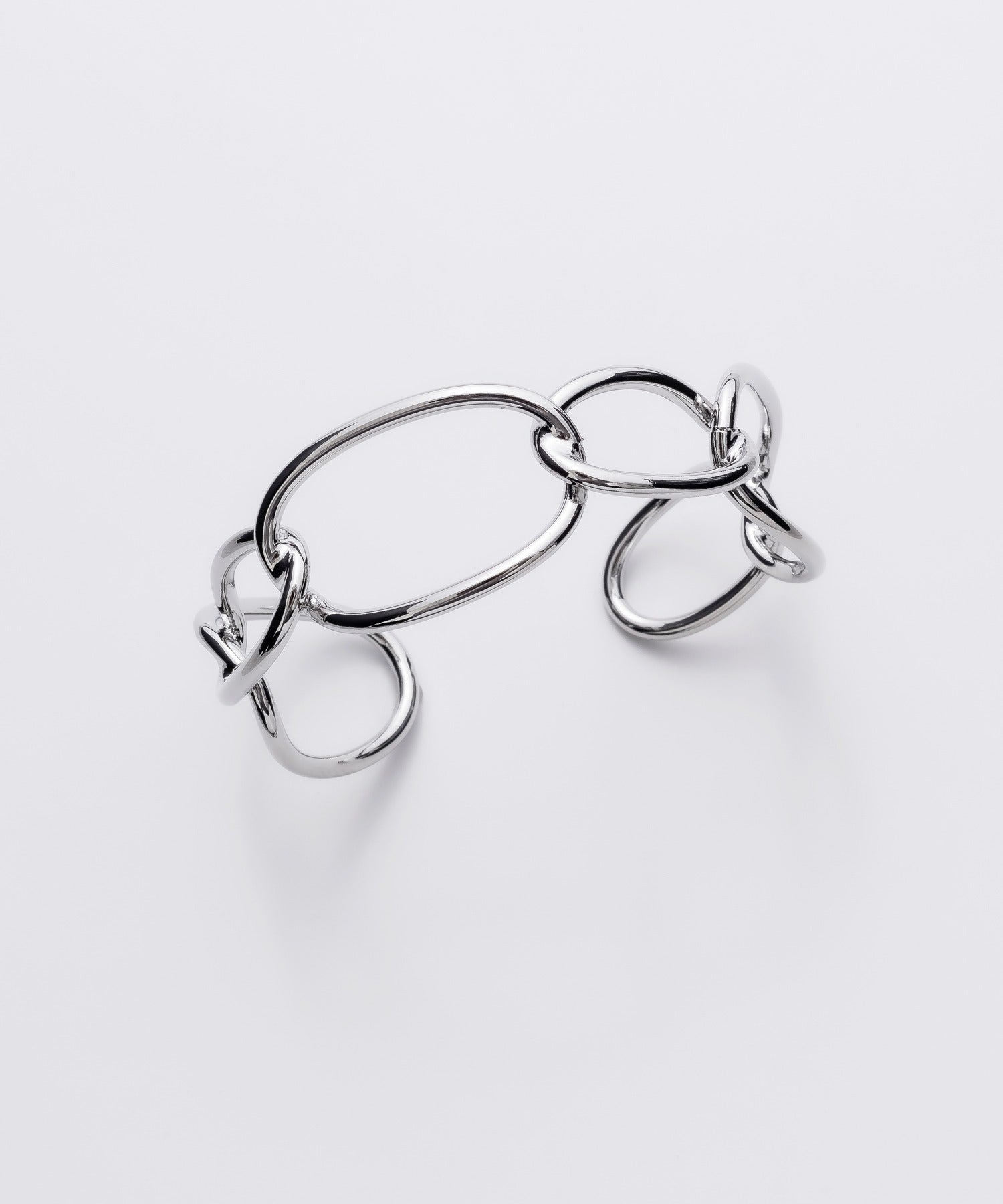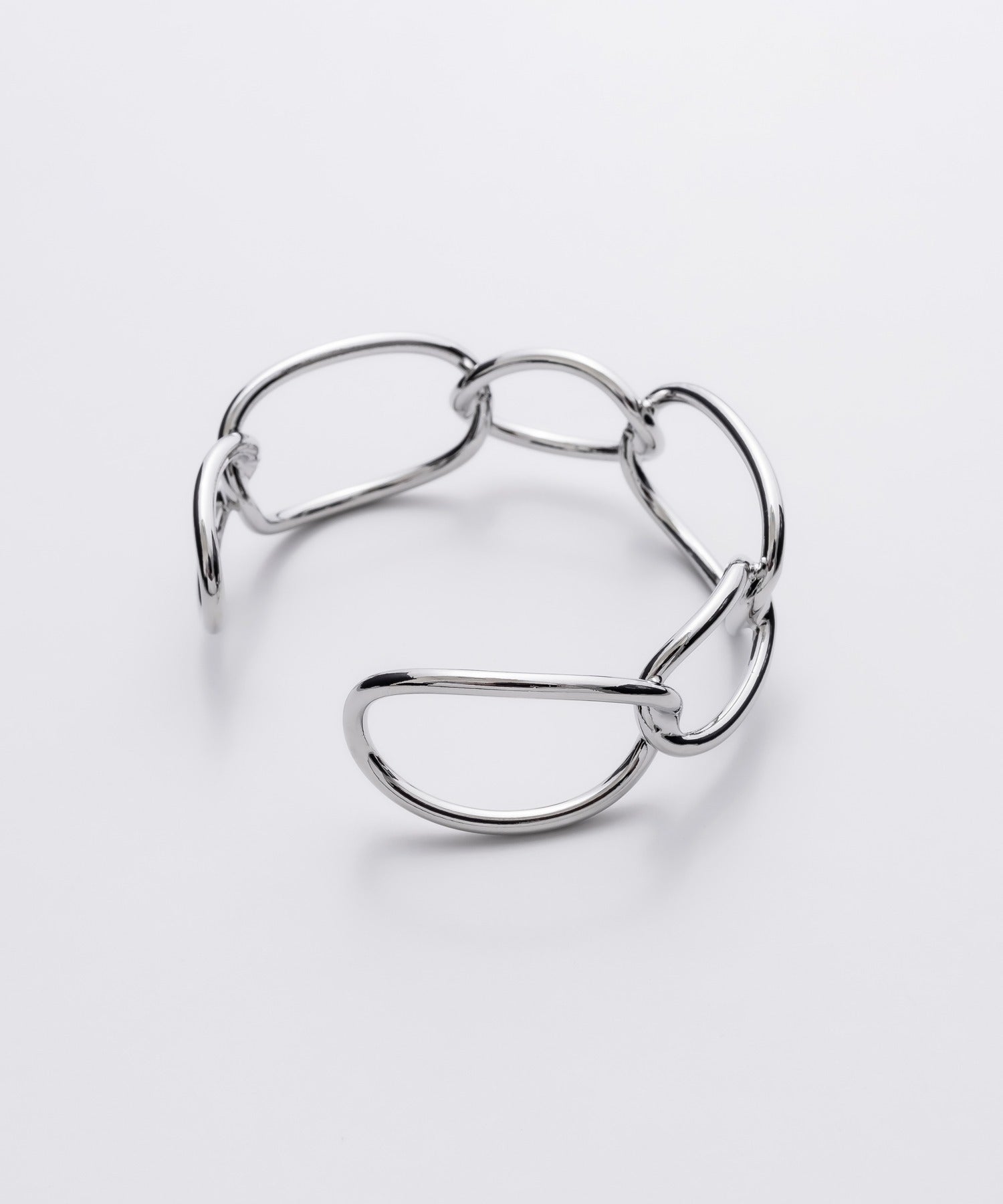 メタルな質感がシャープな印象のチェーンデザインバングル。