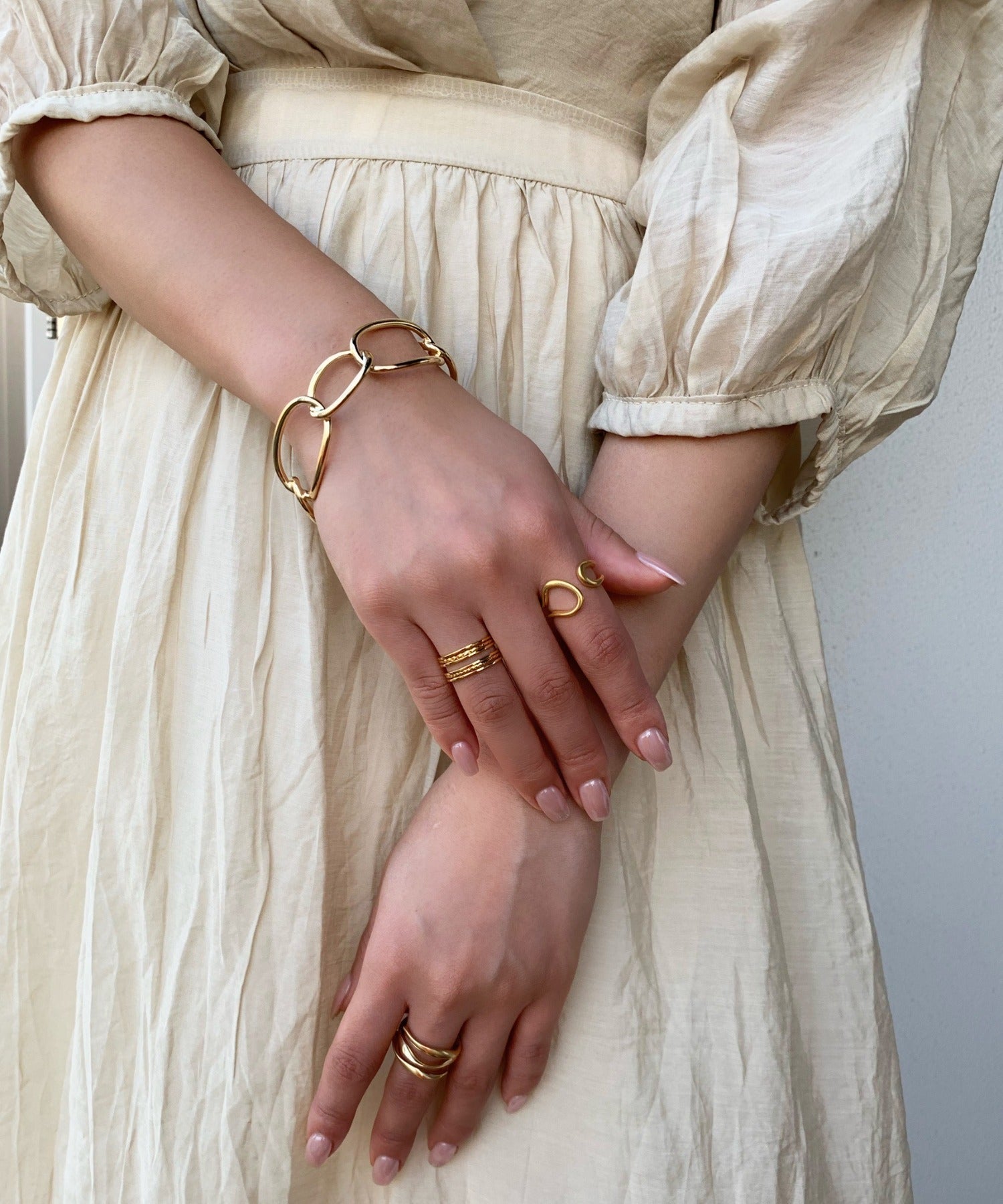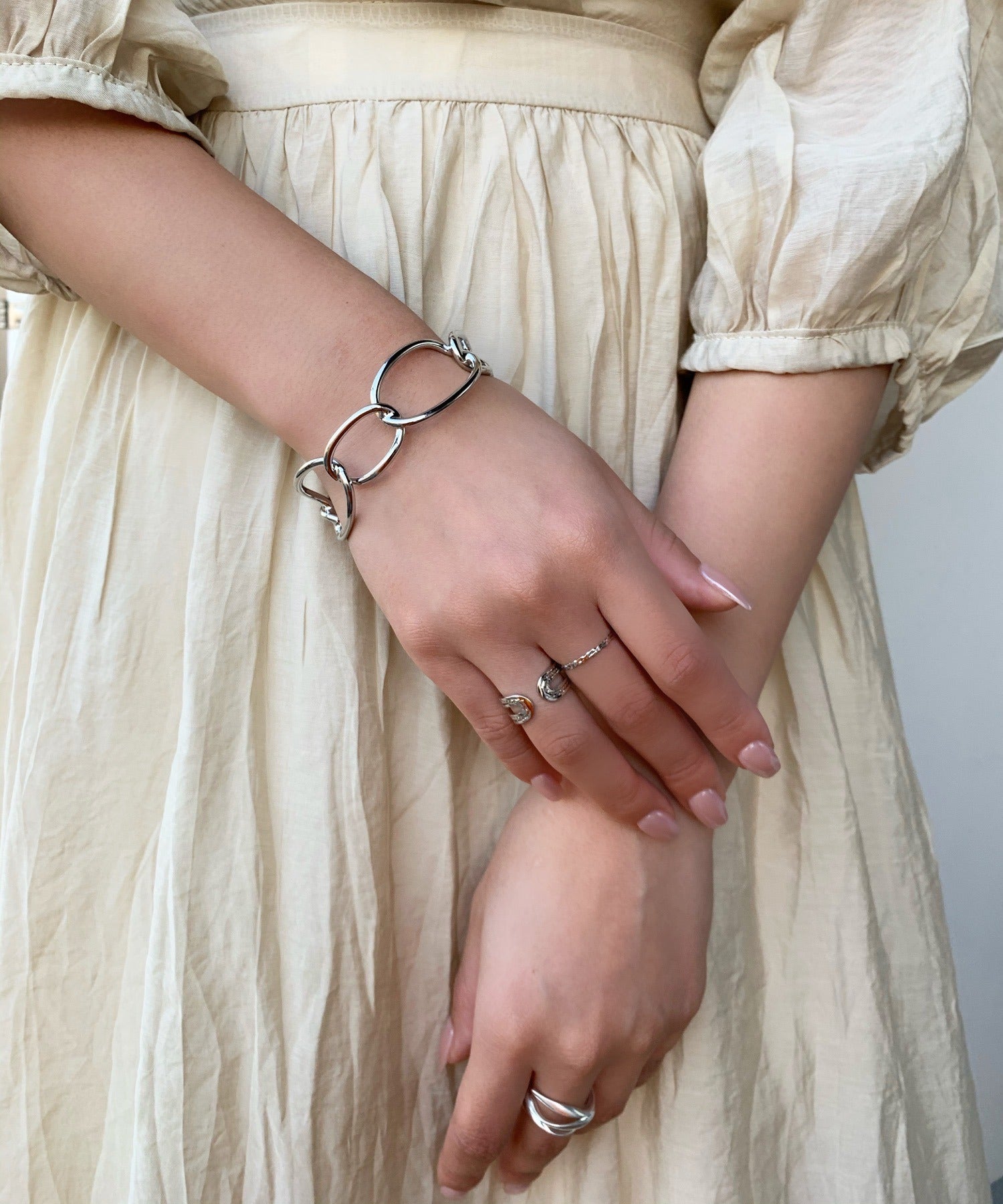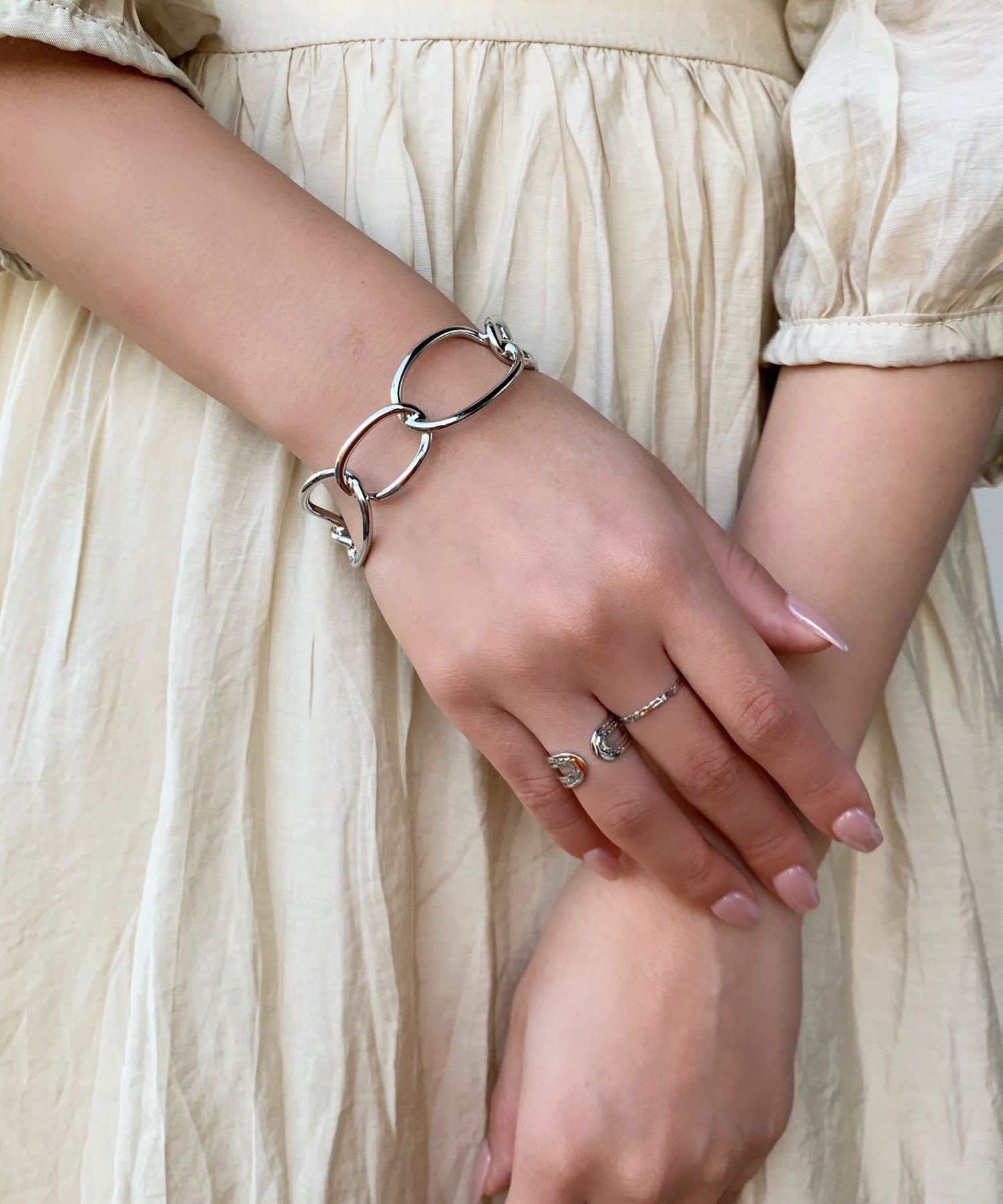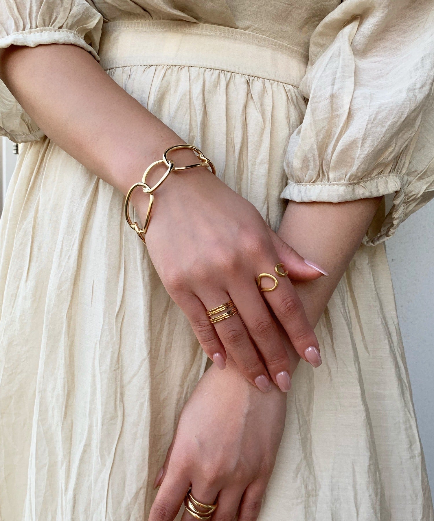 メタルな質感がシャープな印象のチェーンデザインバングル。