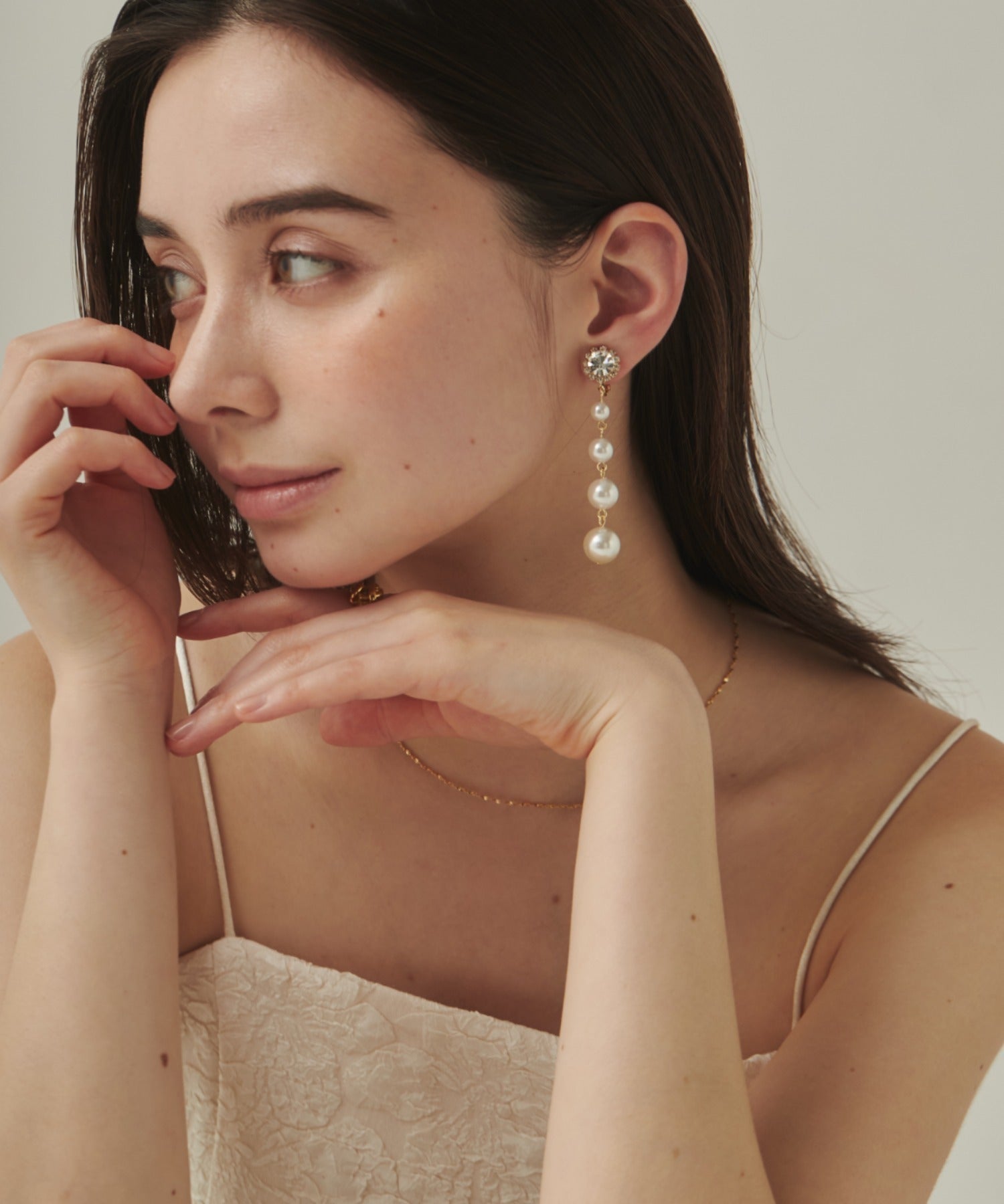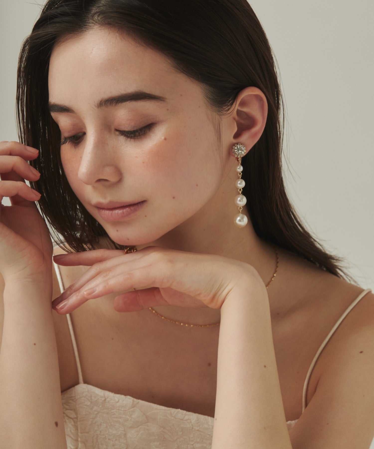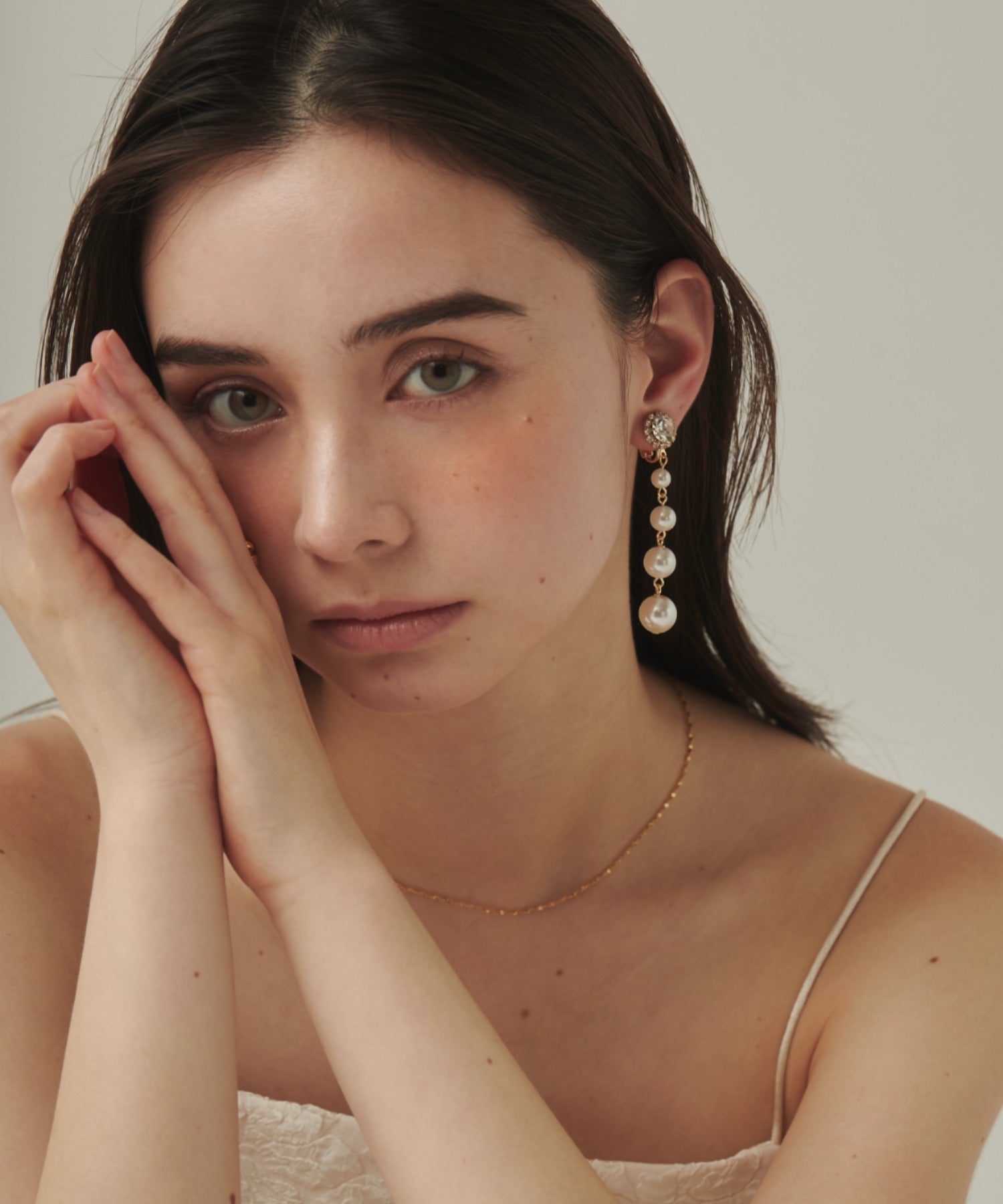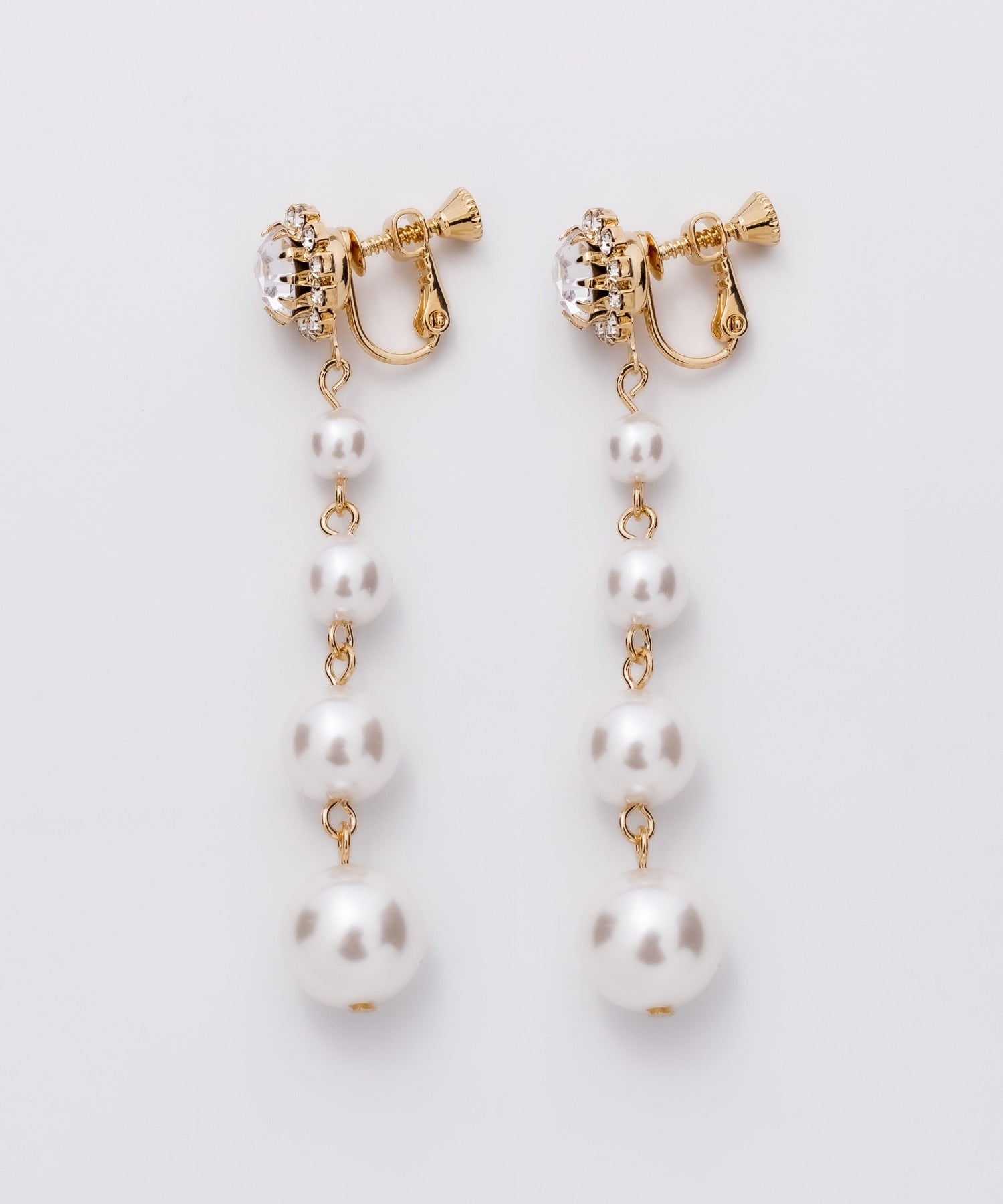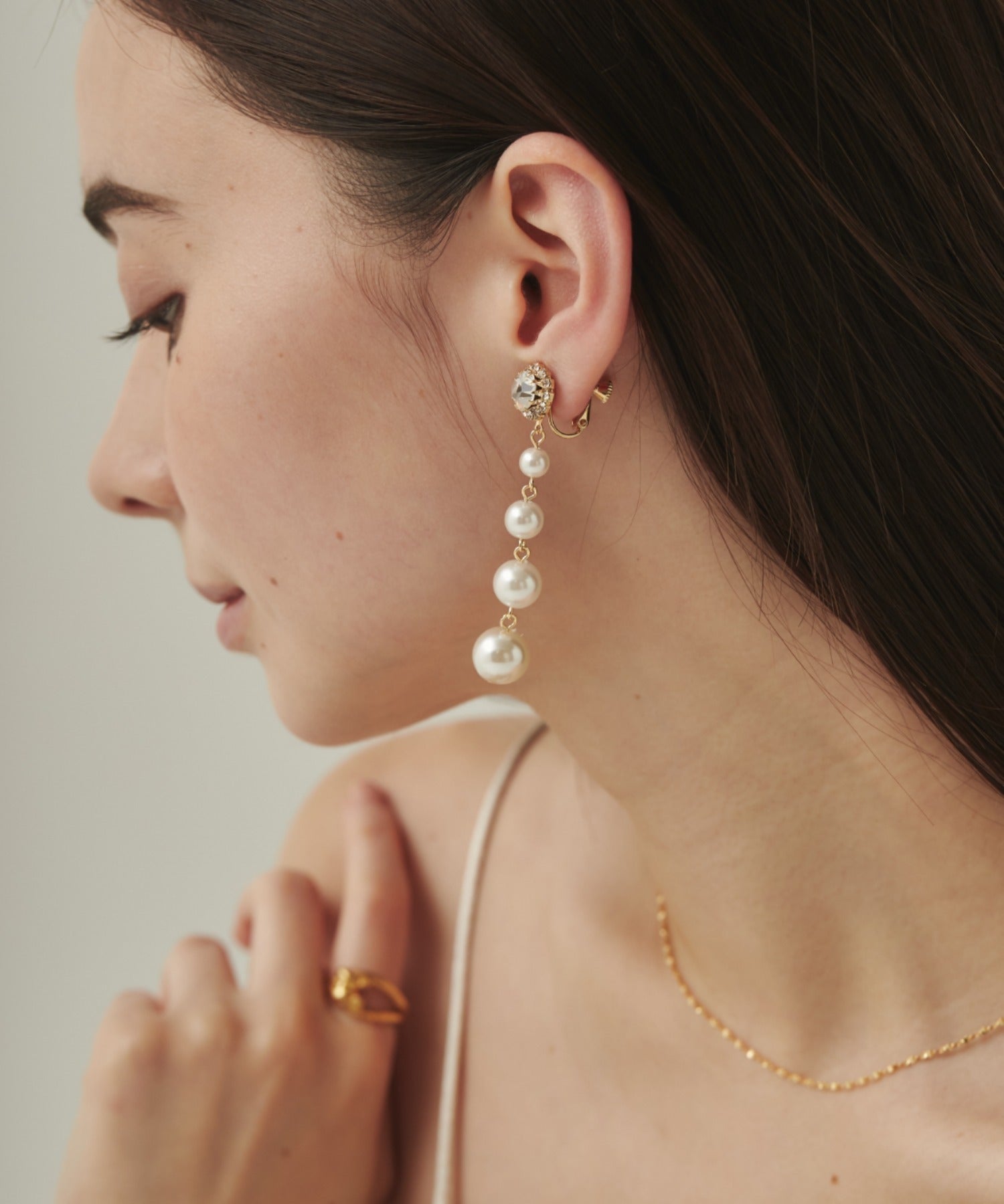 大ぶりのカラービジューとパールをあしらったデザインイヤリング。