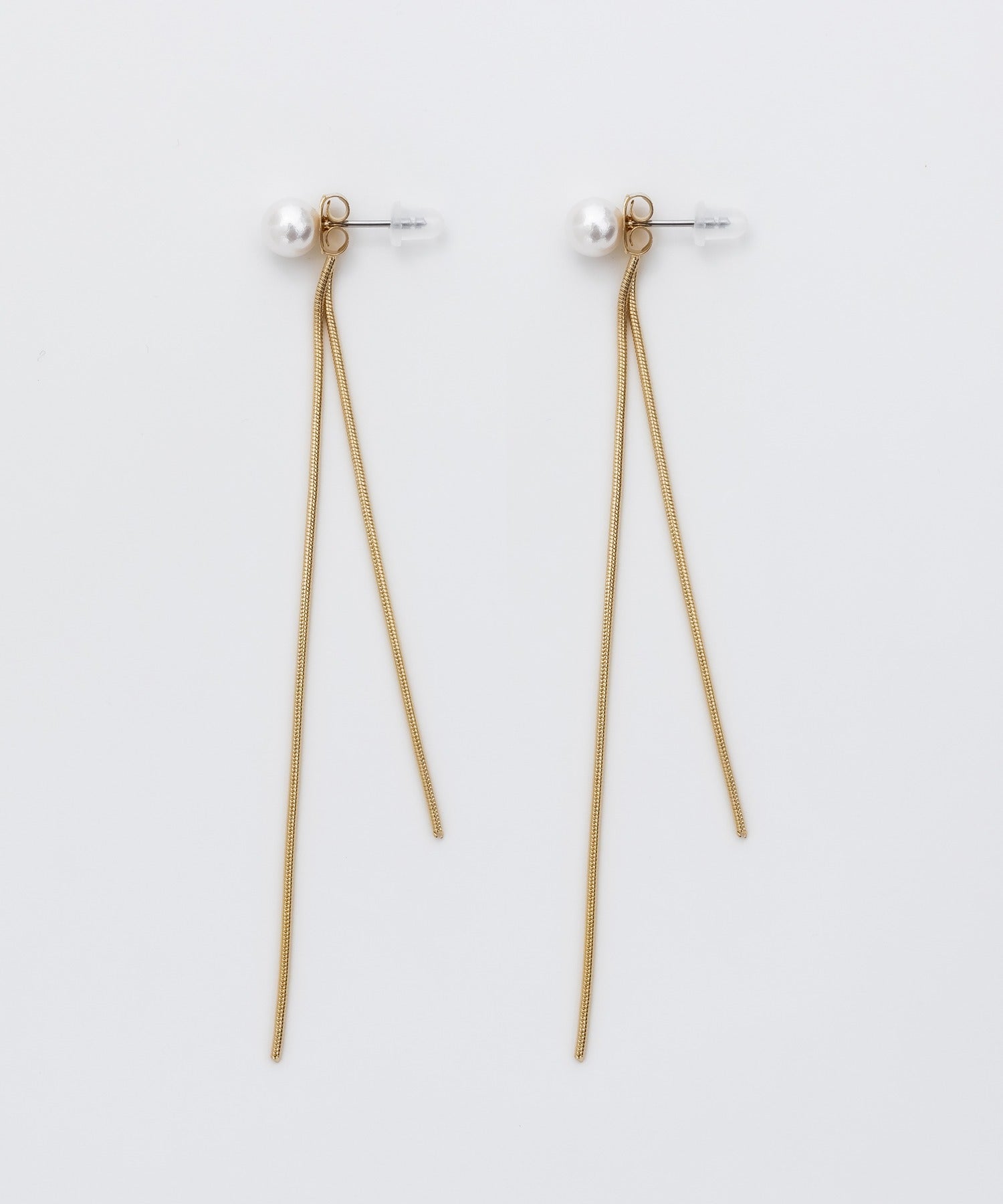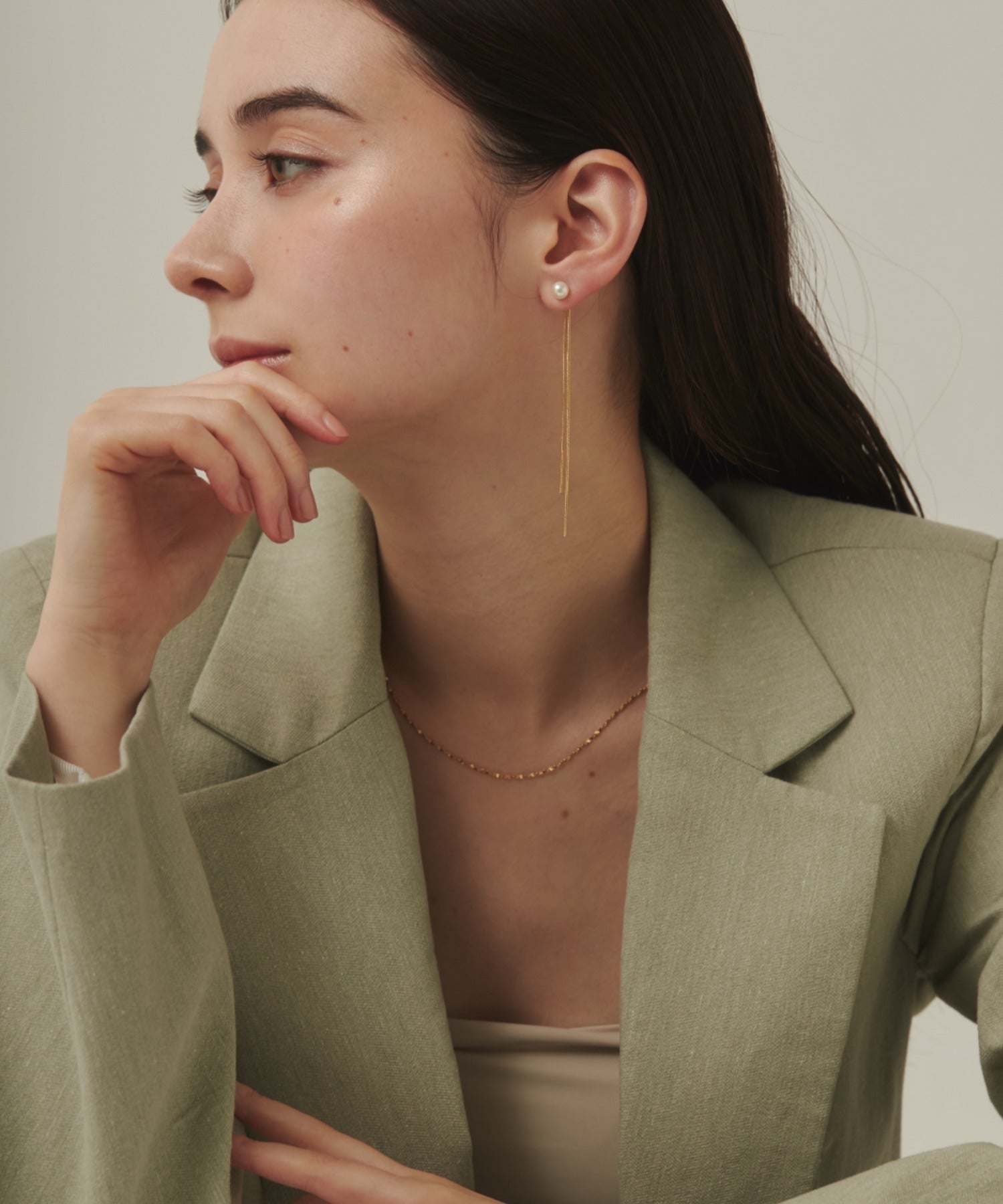 可愛らしいサイズのパールにチェーンを組み合わせたデザインピアス。