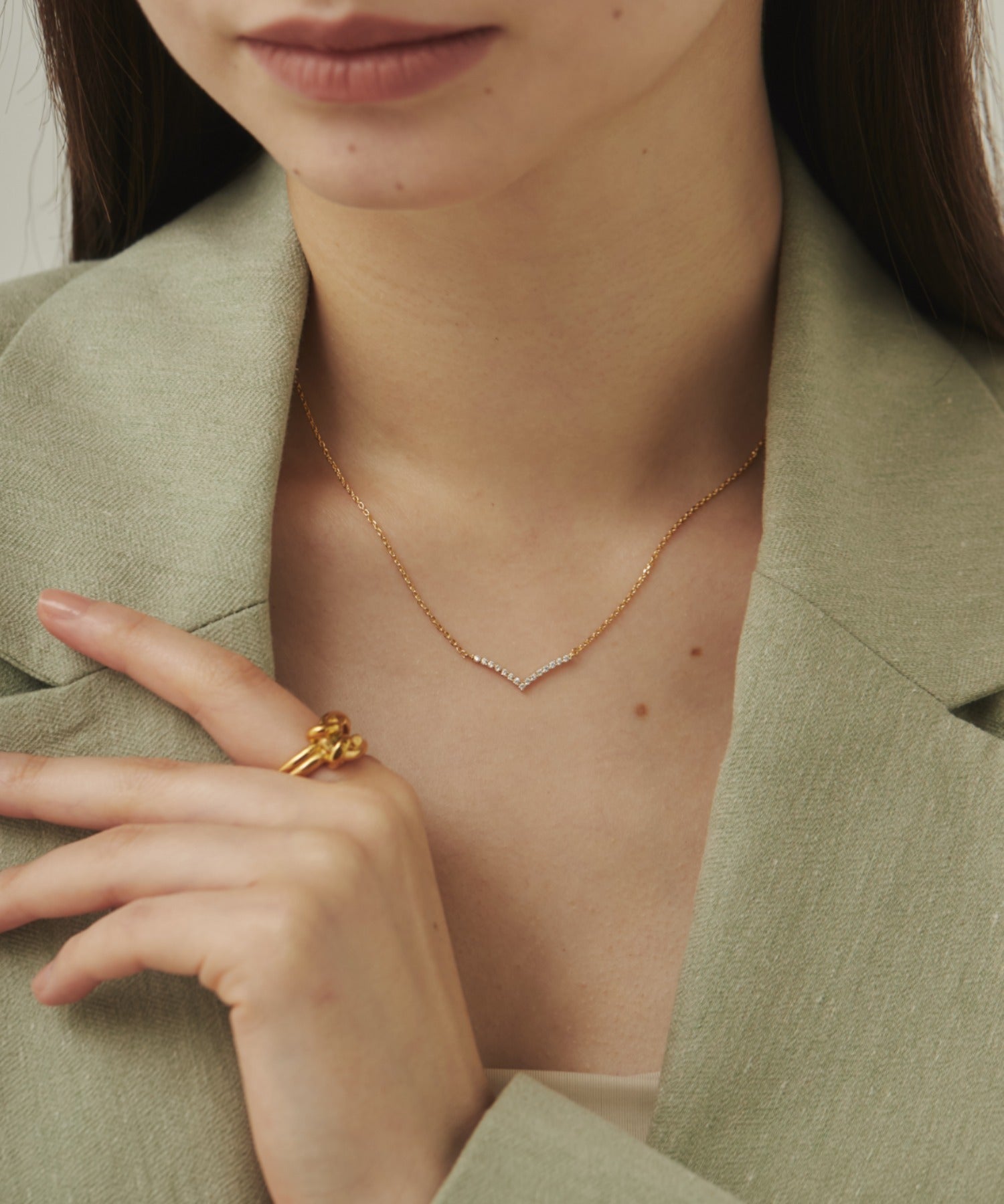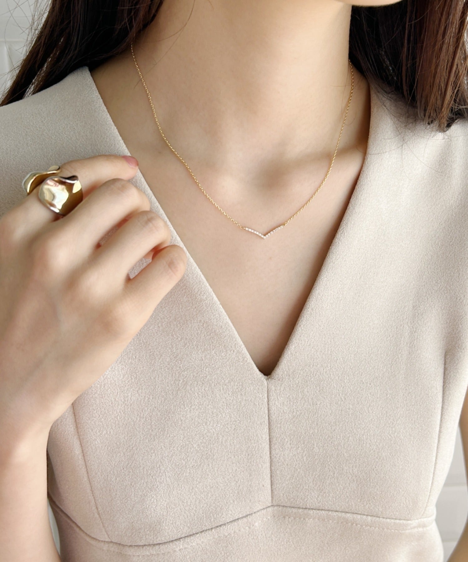 シンプルながらもサイズ感や付けた時のバランスに最大限こだわったビジューネックレス。