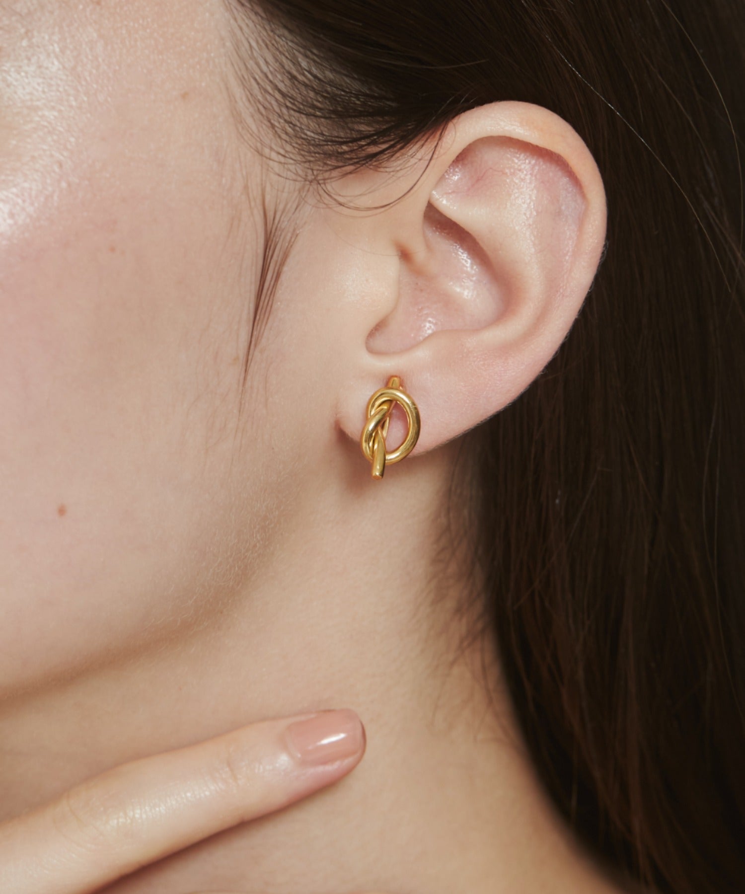 結び目デザインが大人可愛い印象のデザインイヤリング。