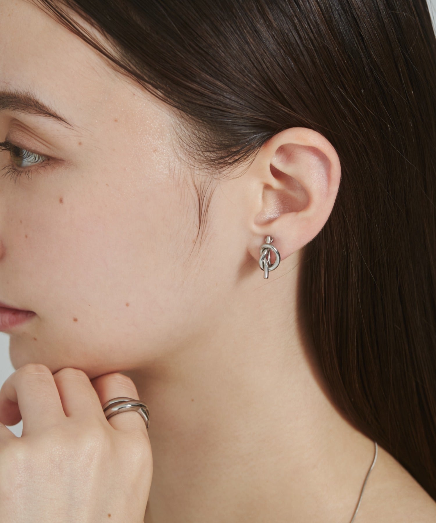 【 金属アレルギー対応 】 ノット イヤリング サージカルステンレス (両耳用)