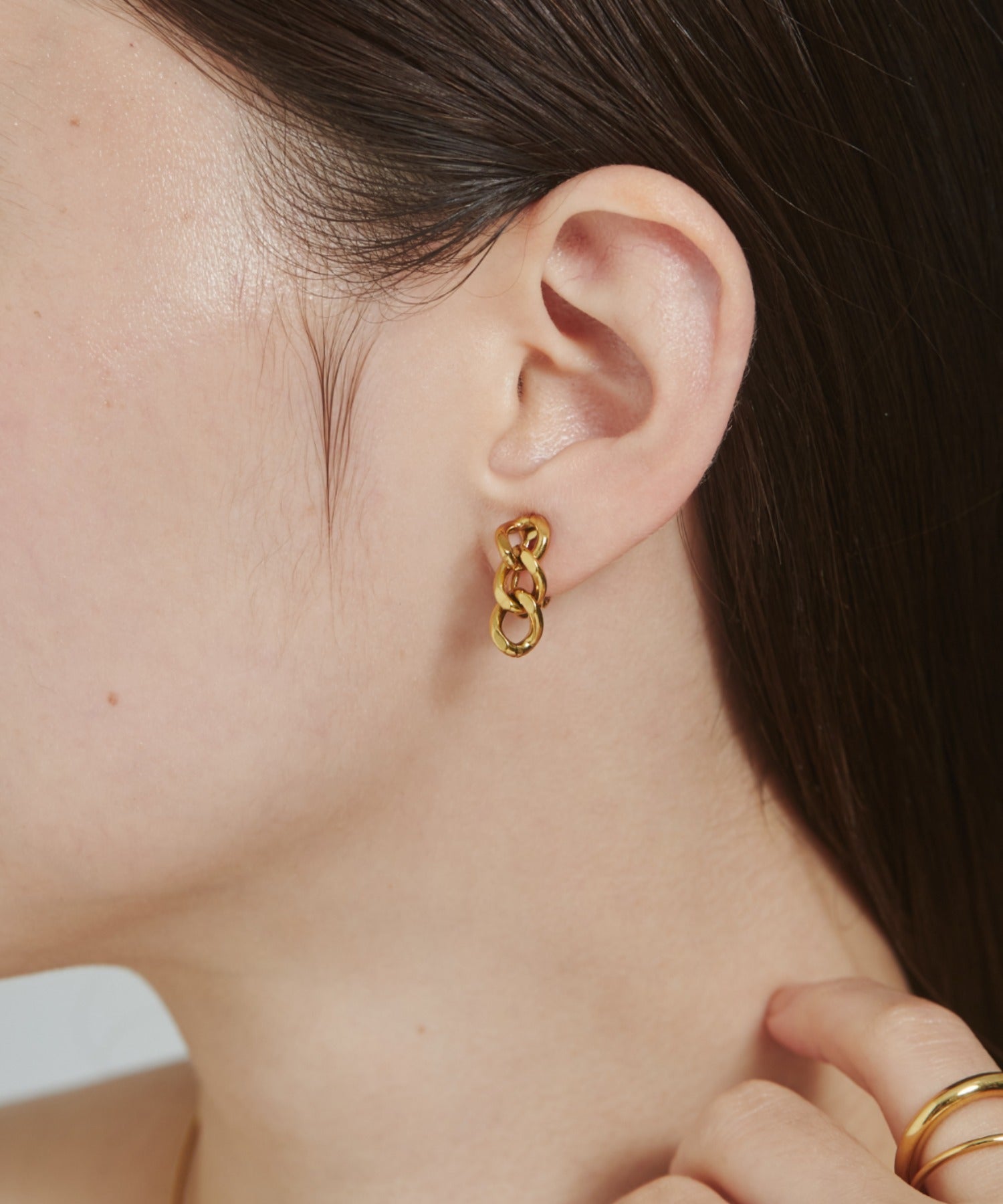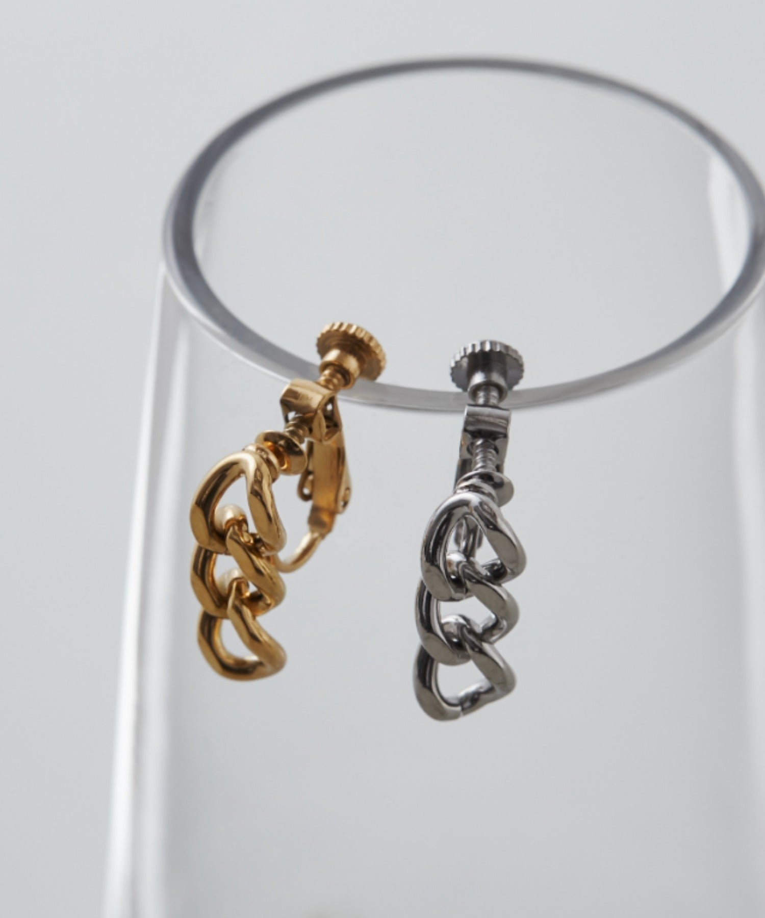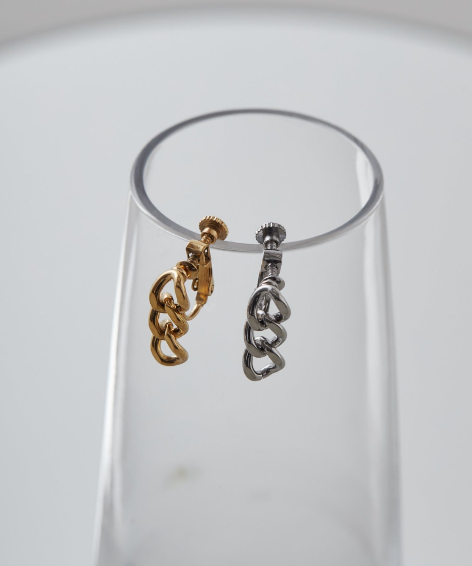 【 金属アレルギー対応 】 チェーンモチーフ イヤリング サージカルステンレス (両耳用)