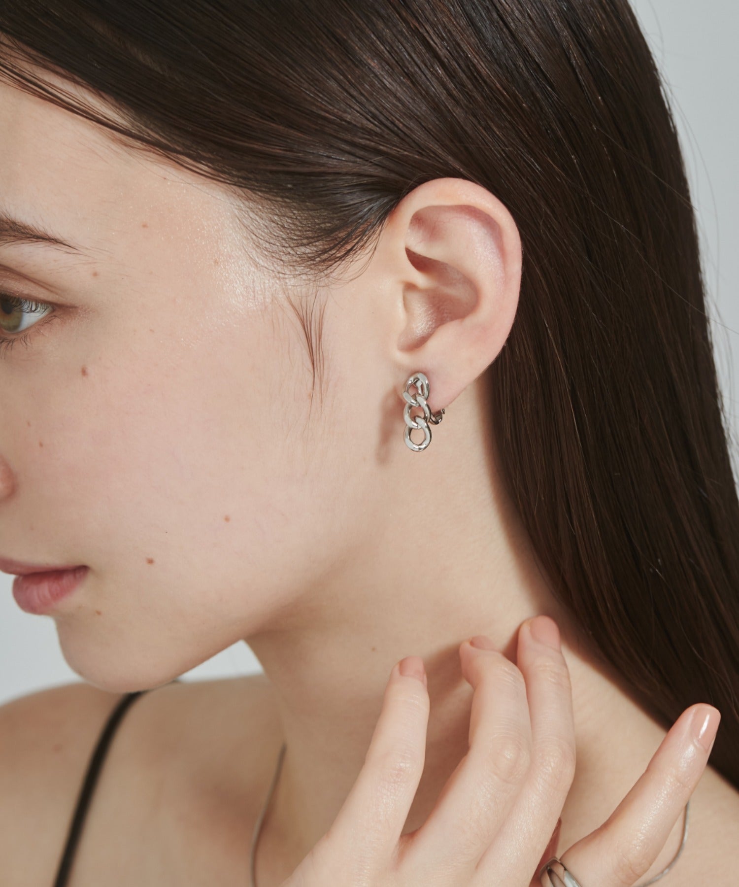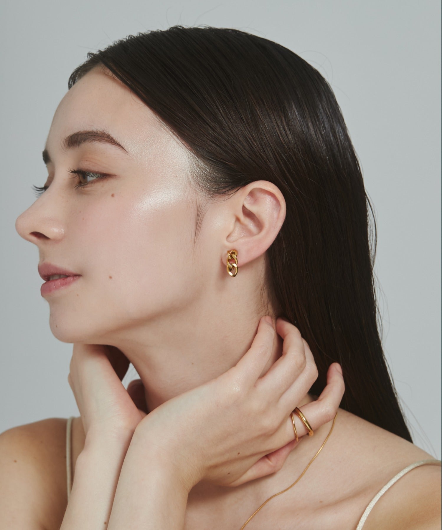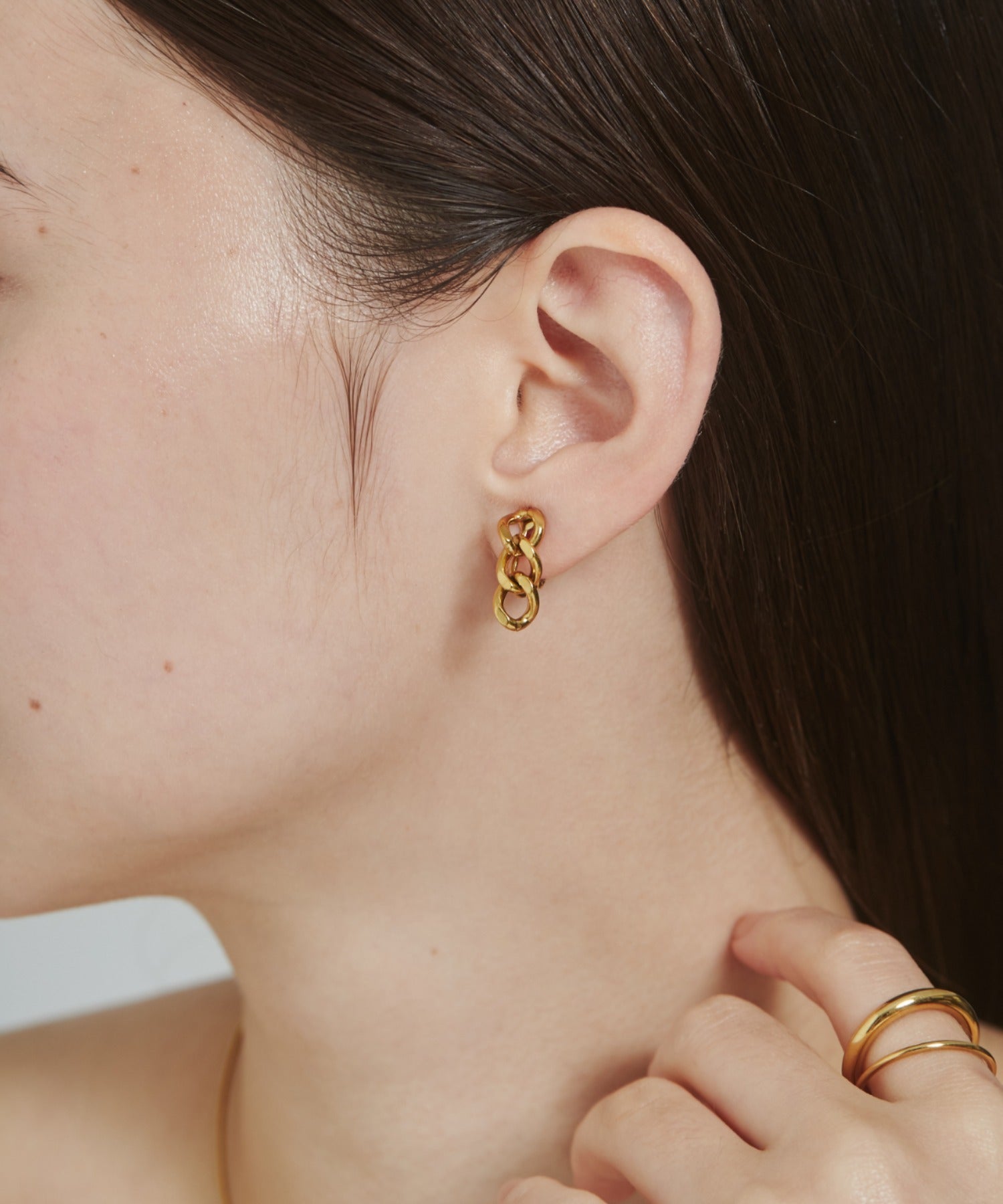 チェーンモチーフが大人可愛い印象のイヤリング。
