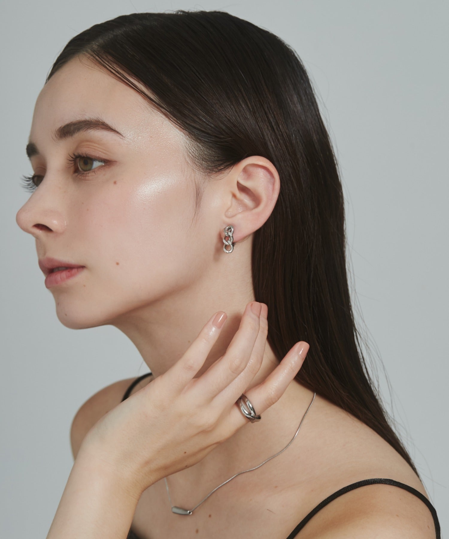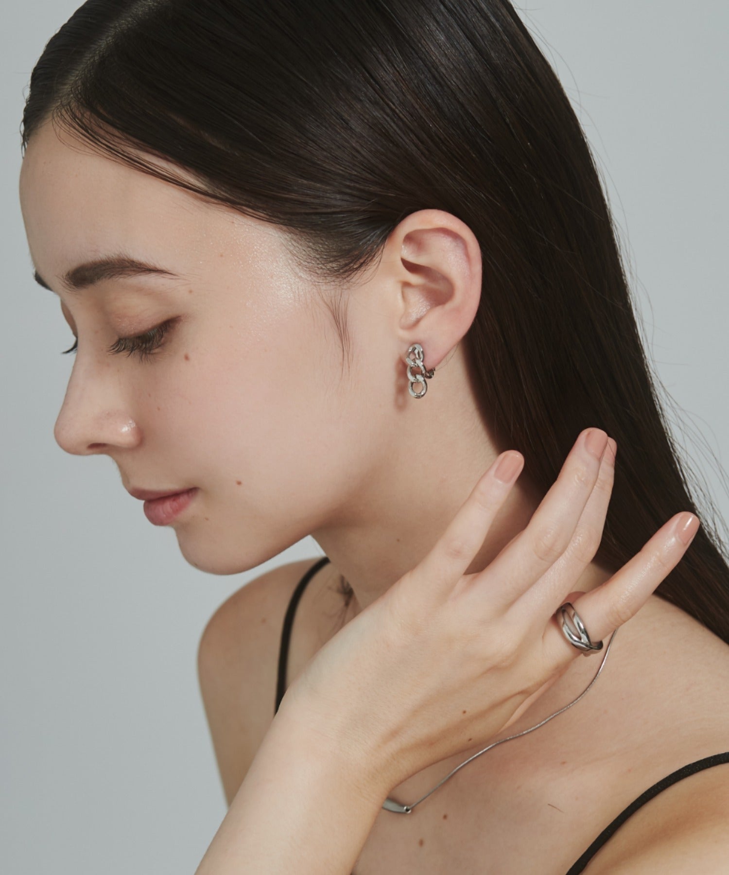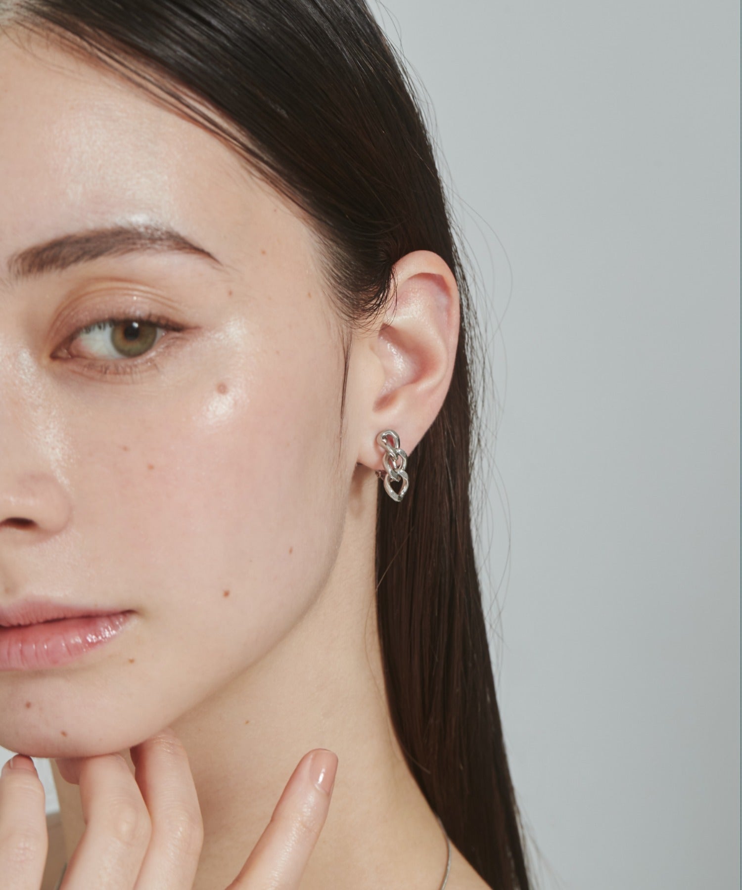 チェーンモチーフが大人可愛い印象のイヤリング。