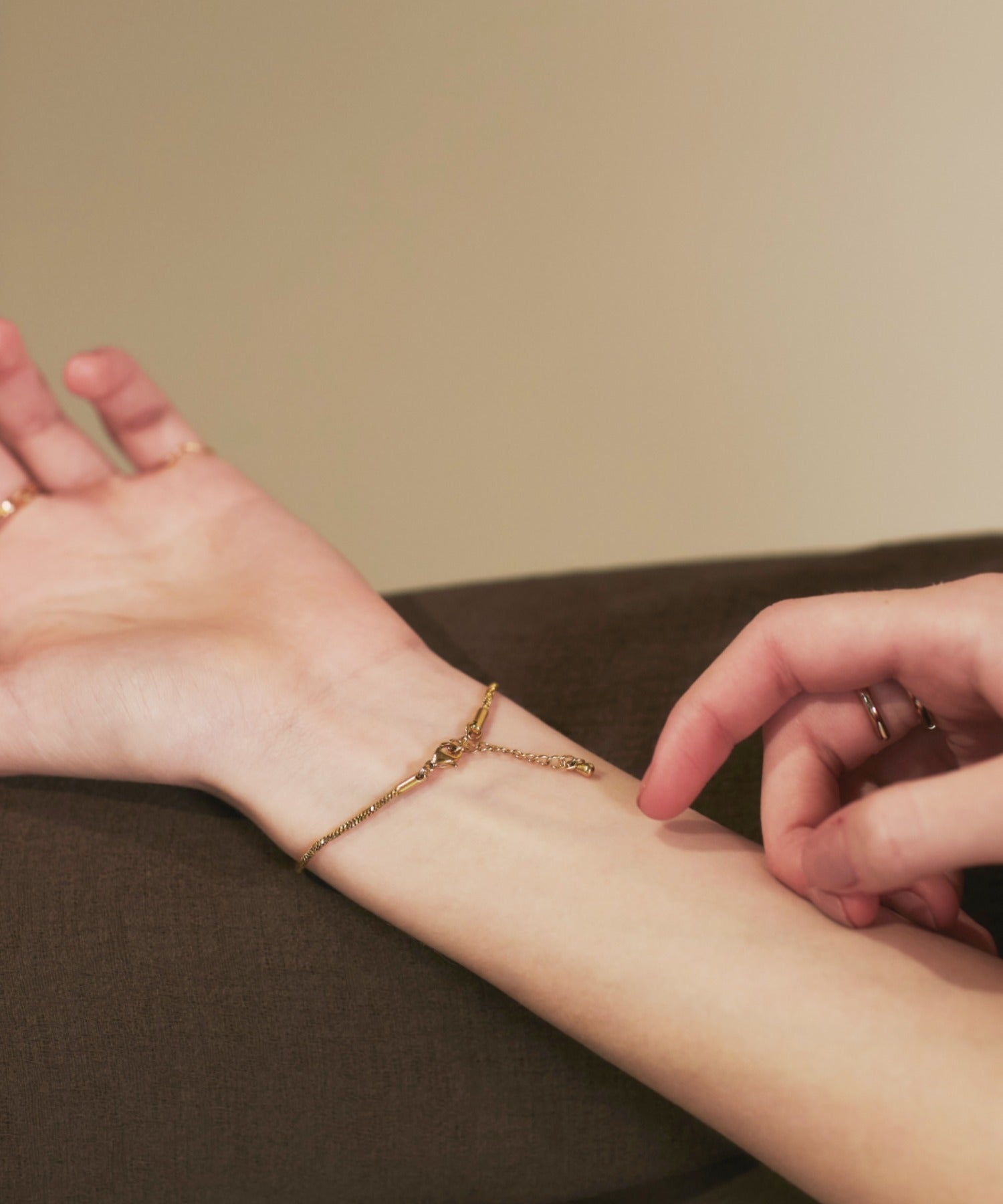 シンプルながらも付けたときのバランスにこだわったチェーンブレスレット。