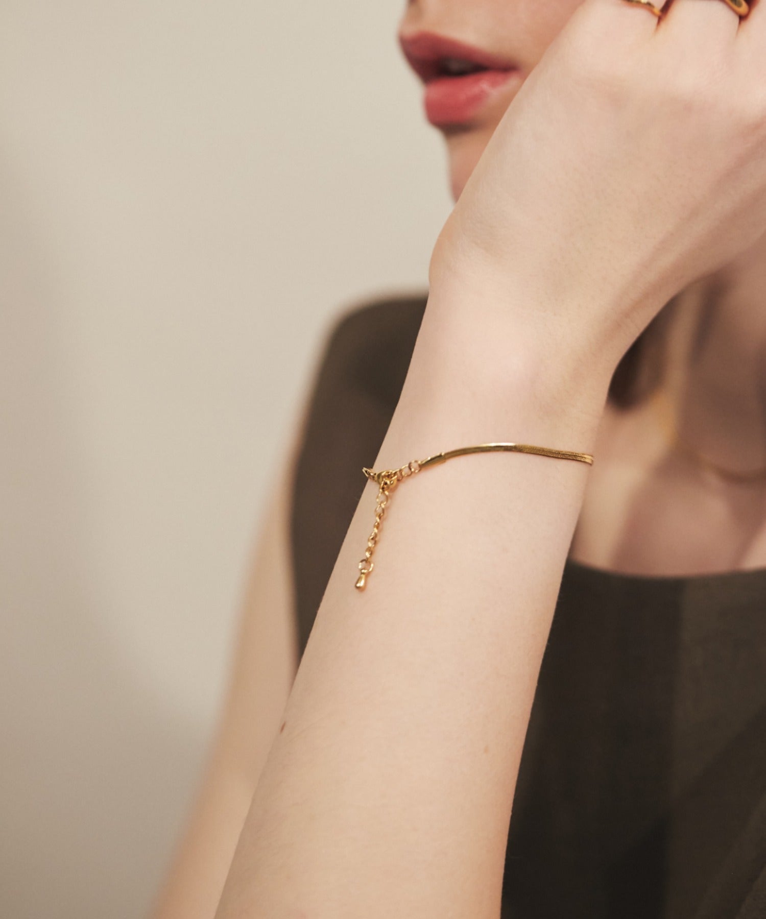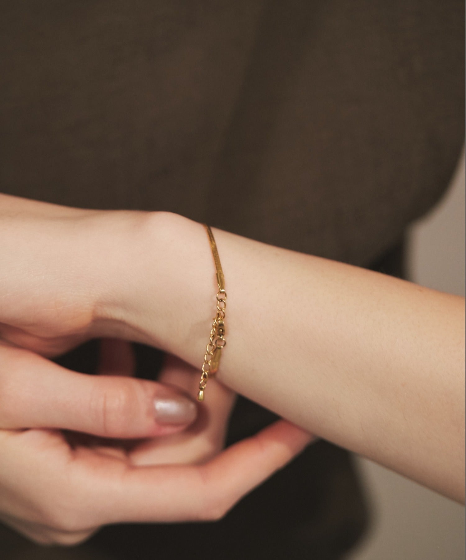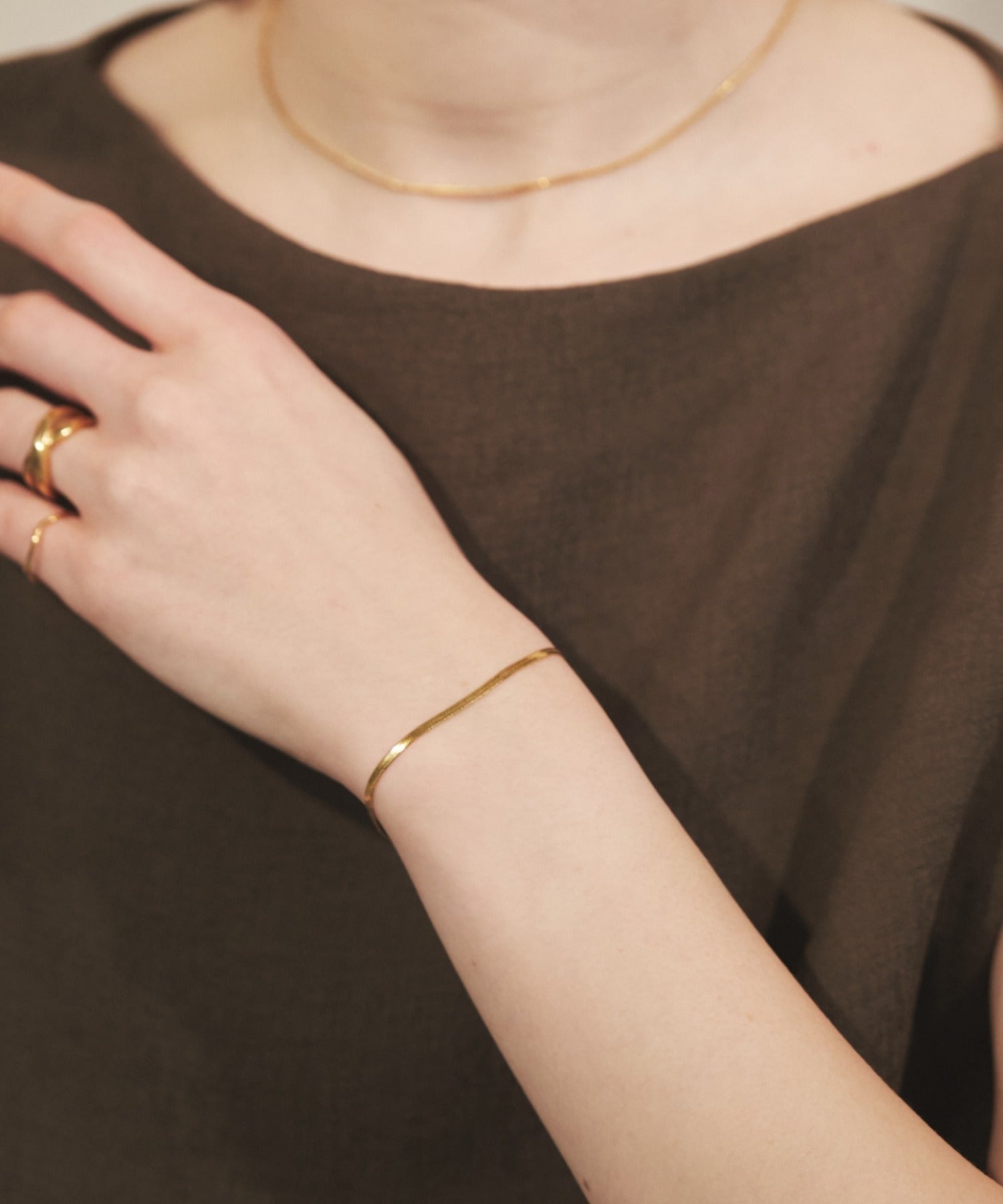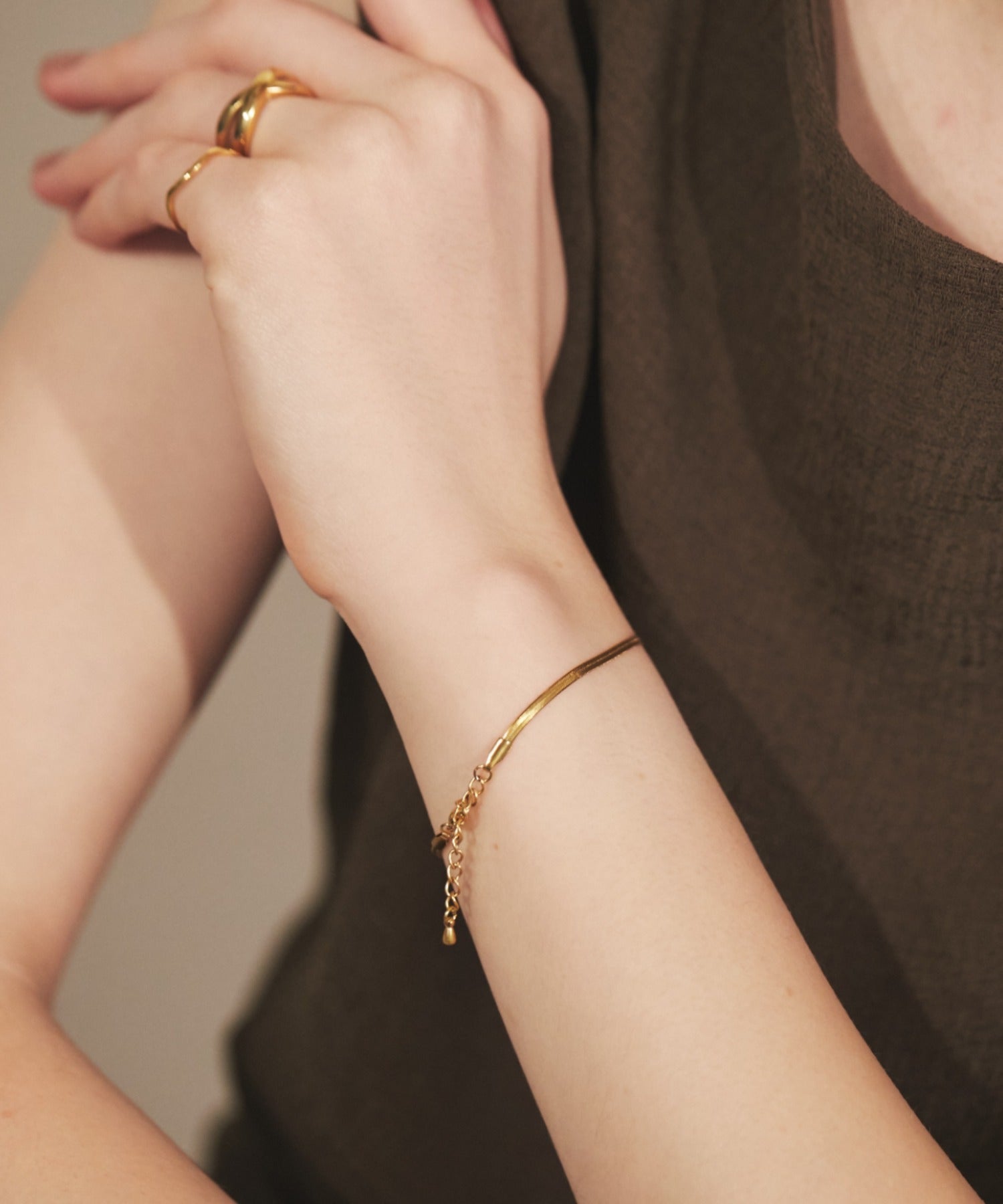 シンプルながらも付けたときのバランスにこだわったスネークチェーンブレスレット。