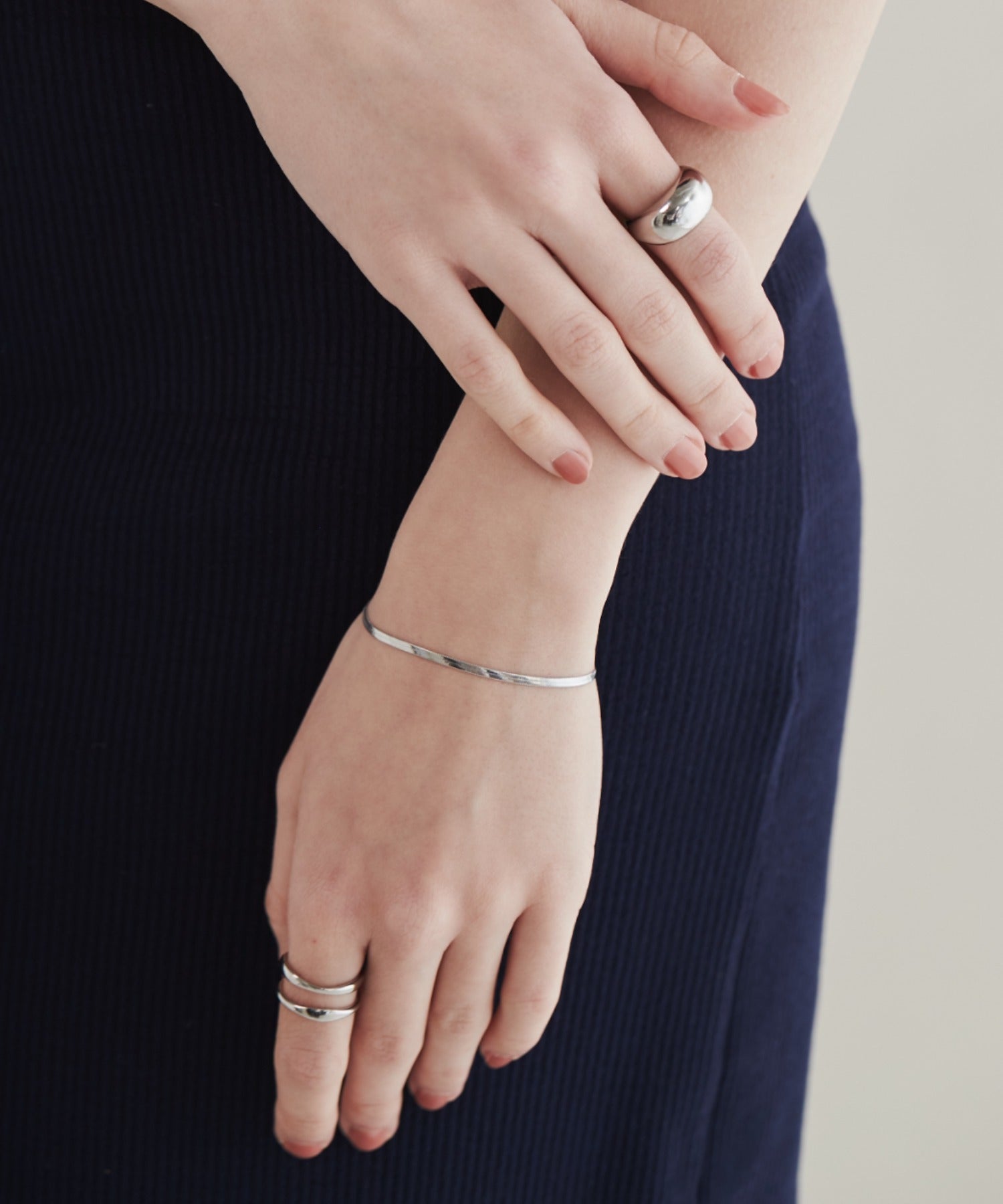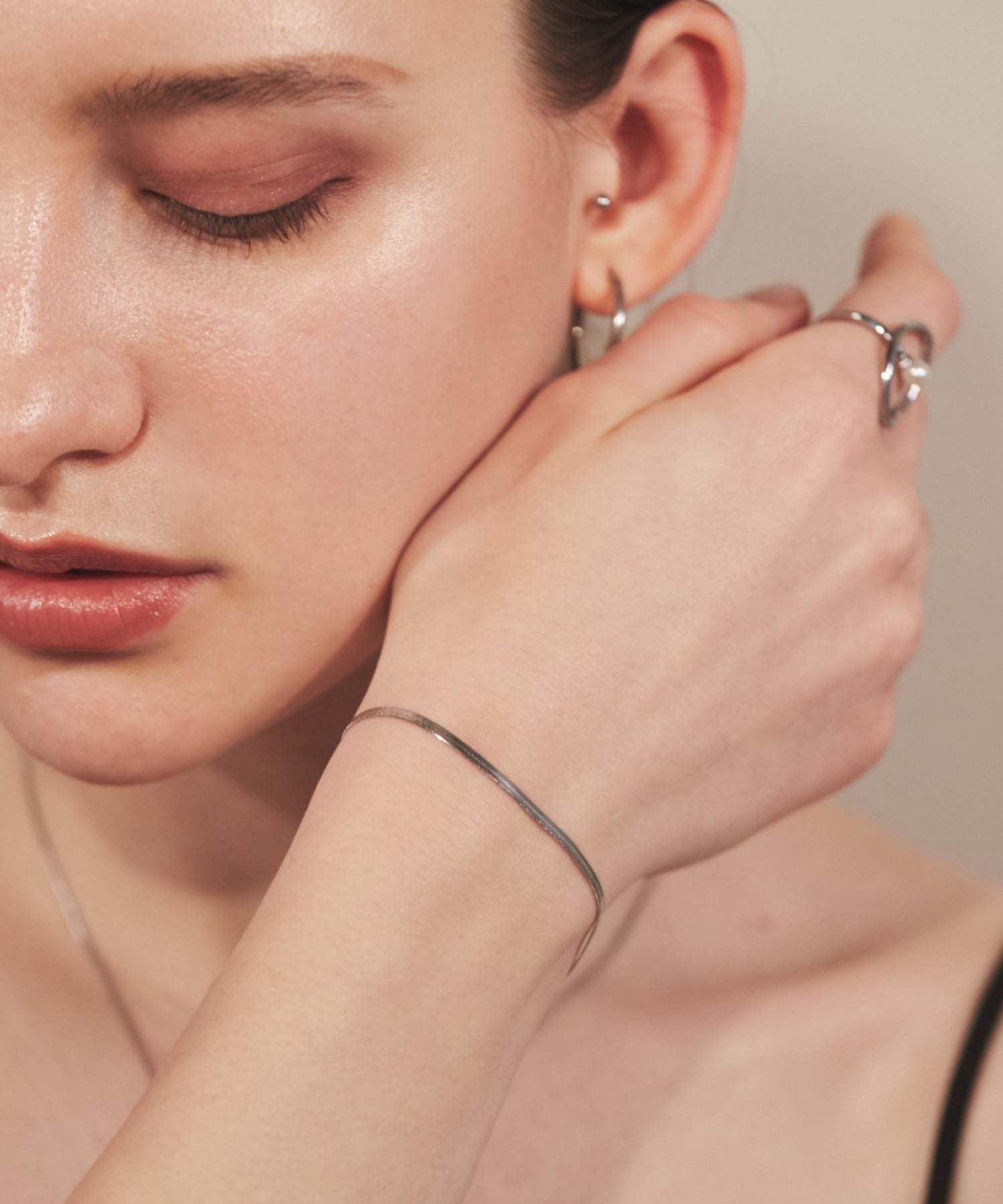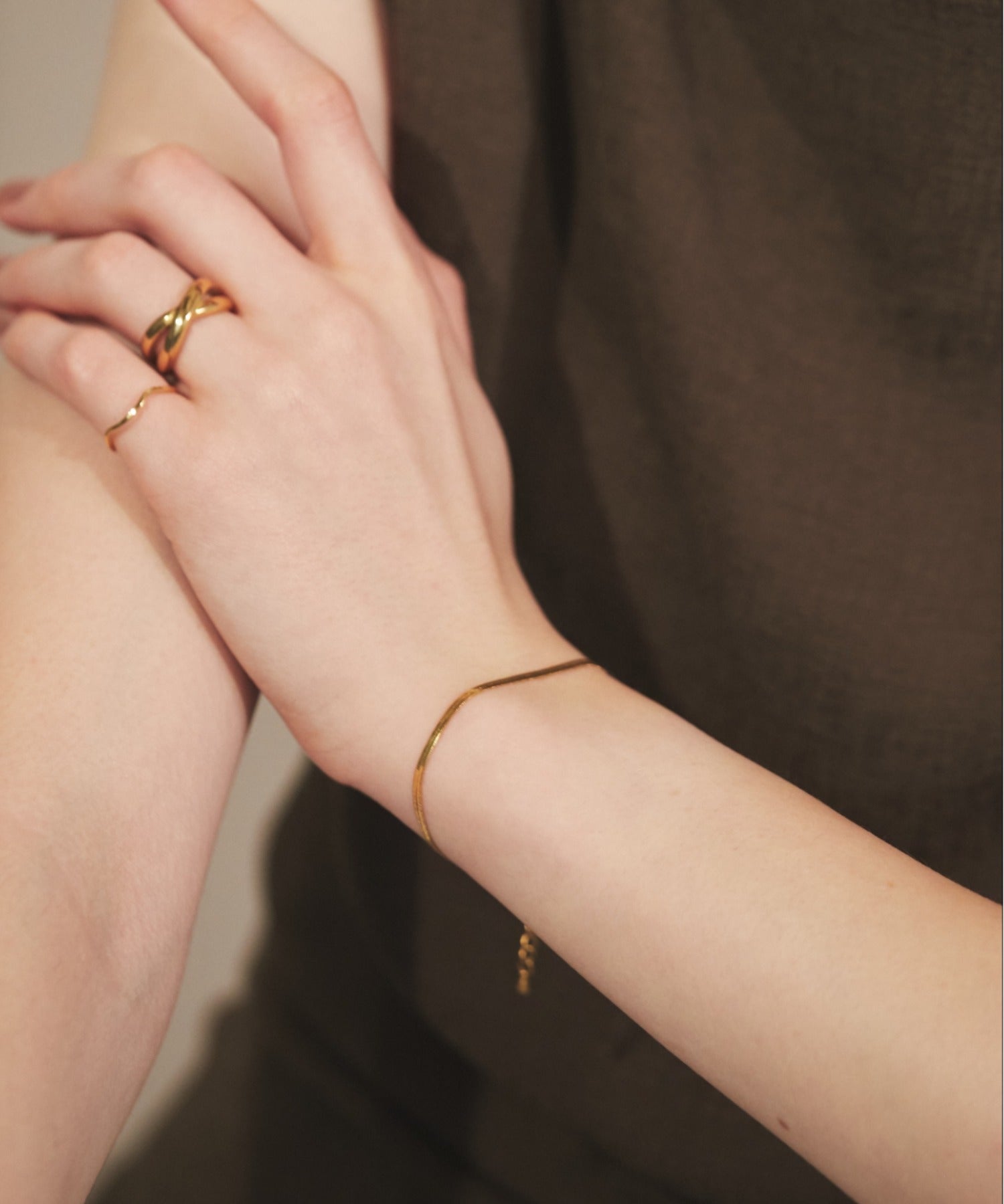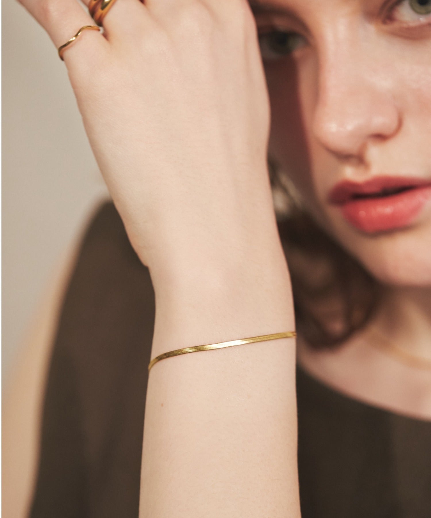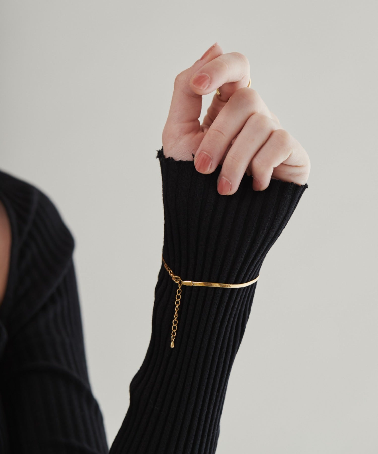 シンプルながらも付けたときのバランスにこだわったスネークチェーンブレスレット。