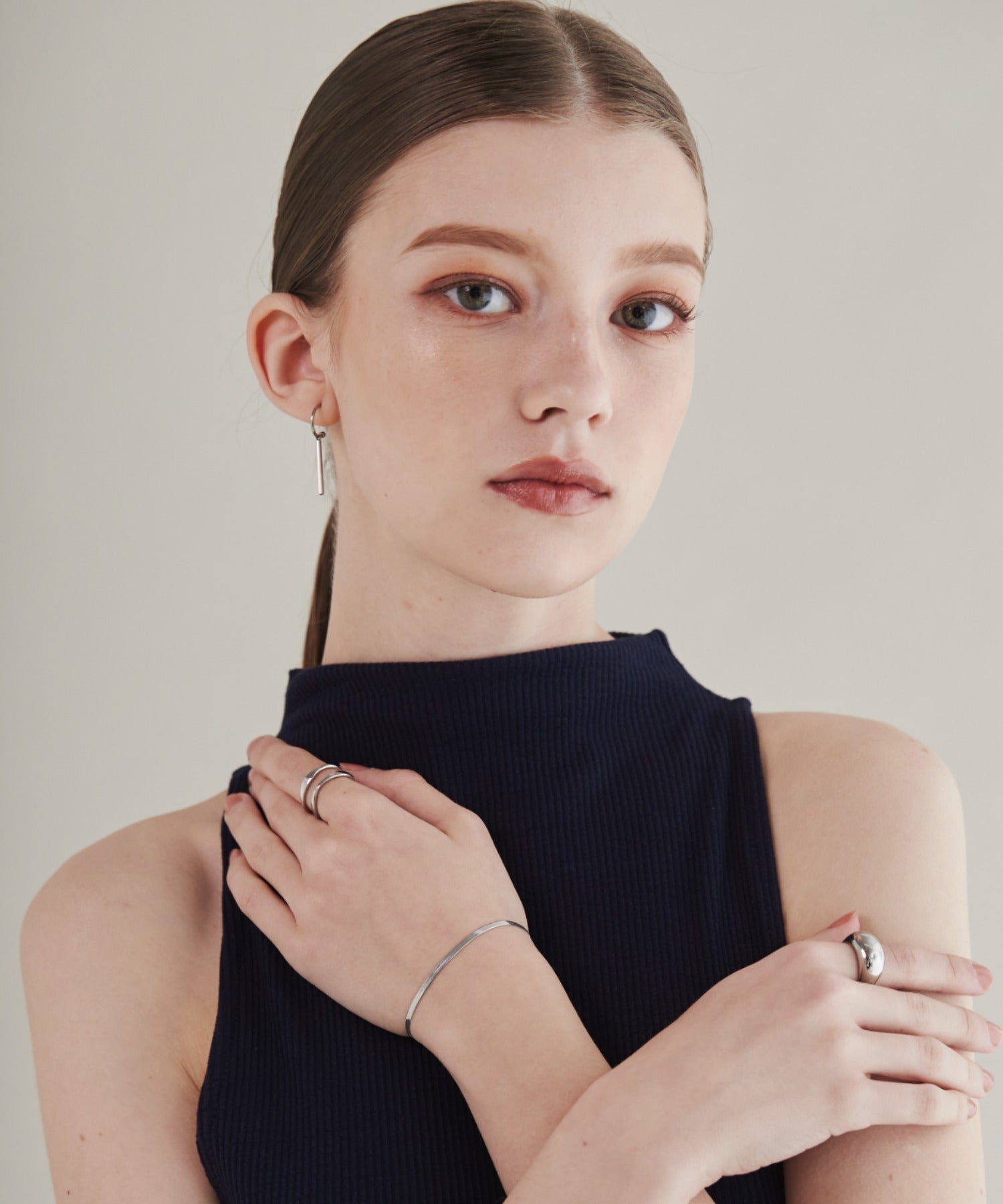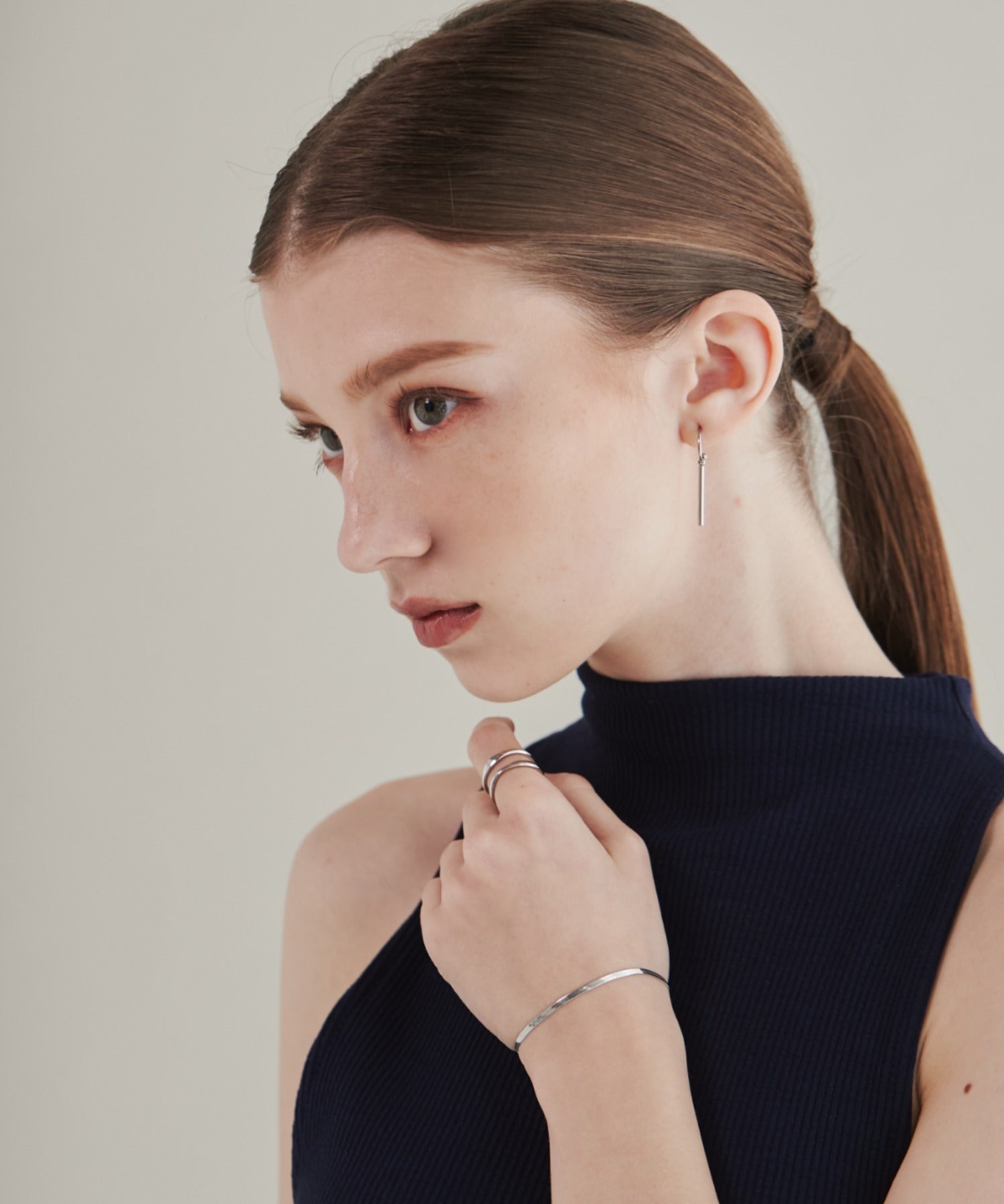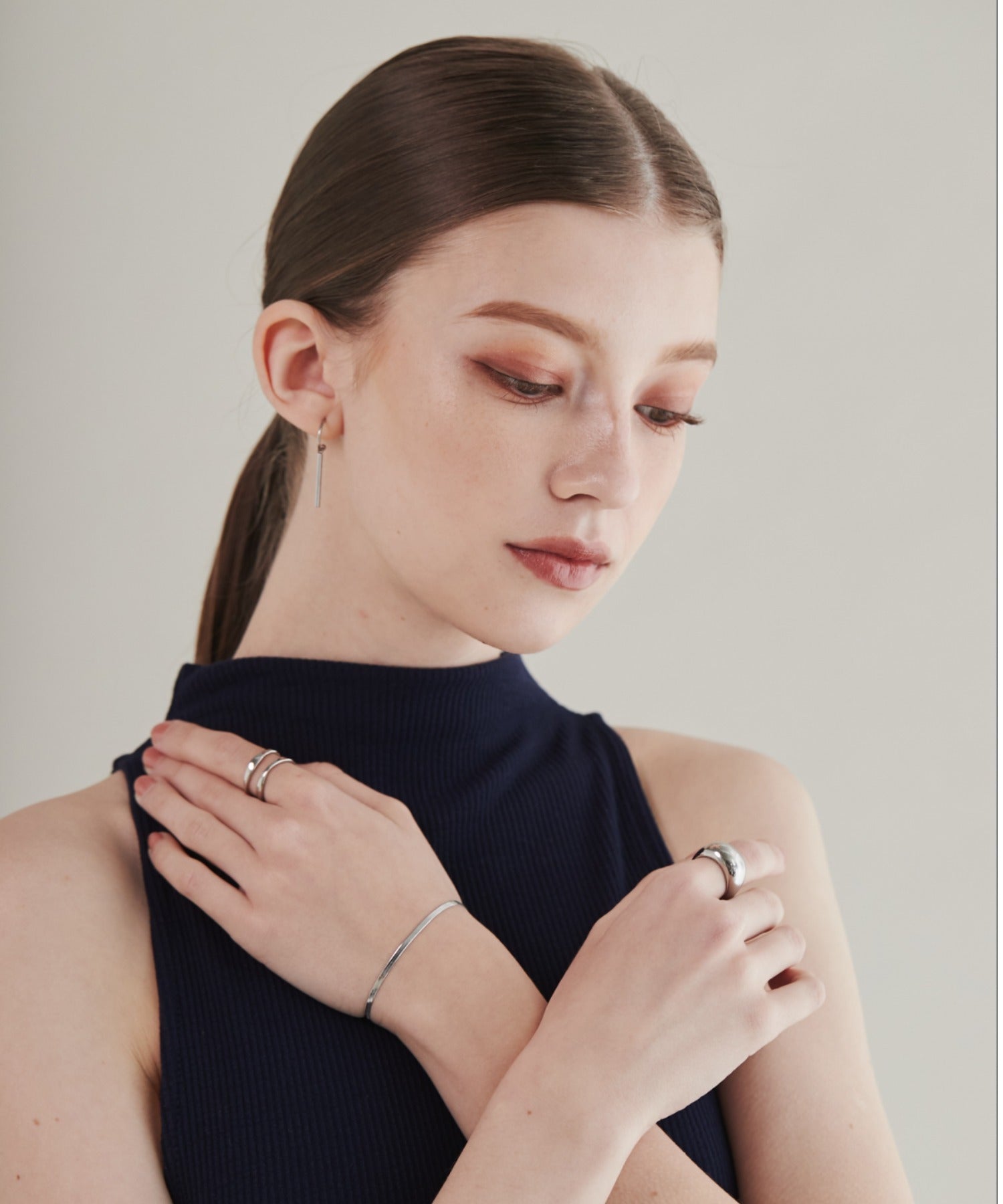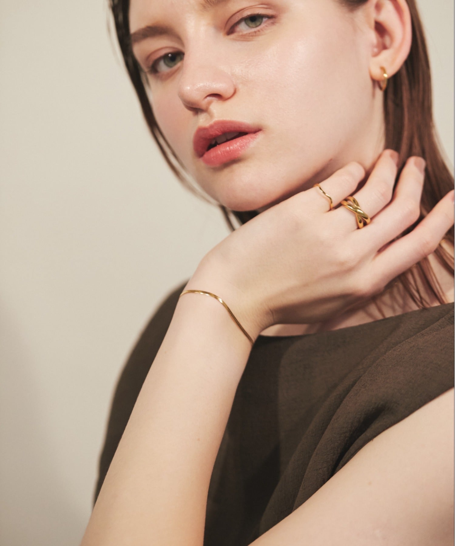 シンプルながらも付けたときのバランスにこだわったスネークチェーンブレスレット。