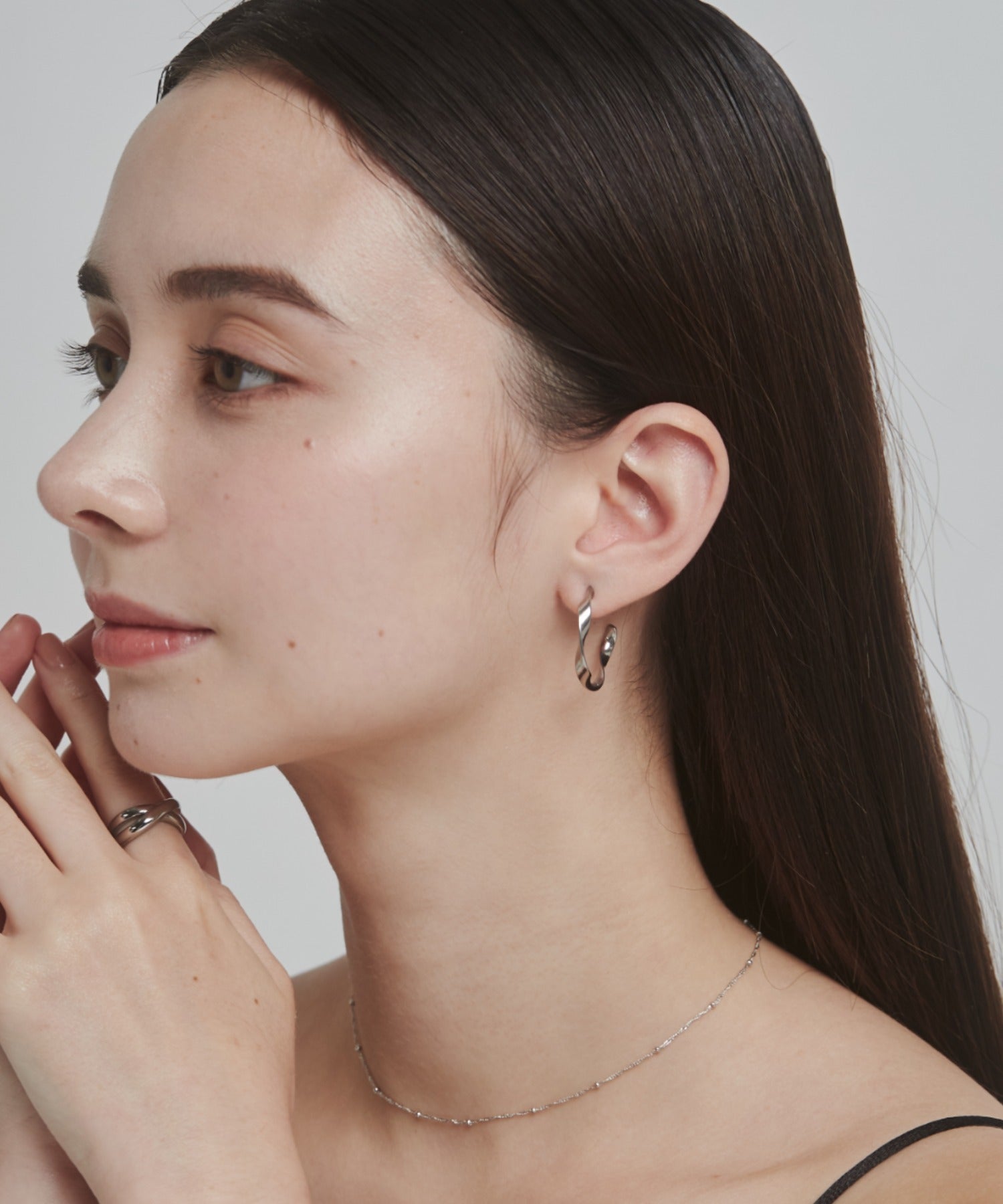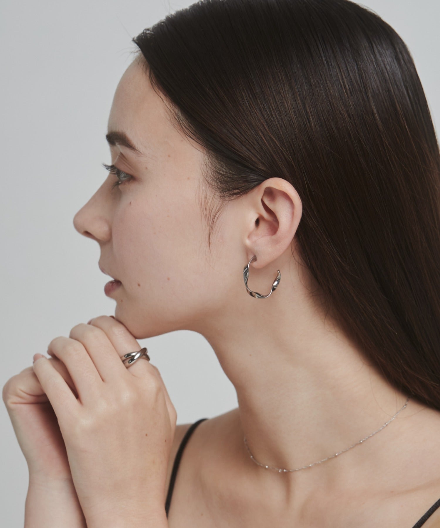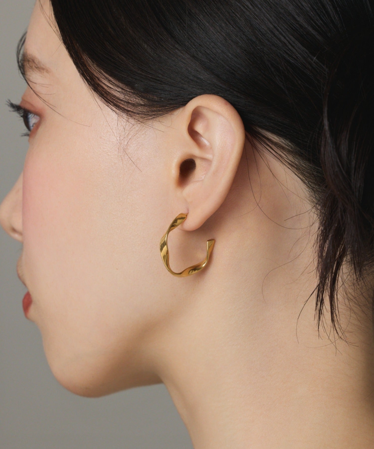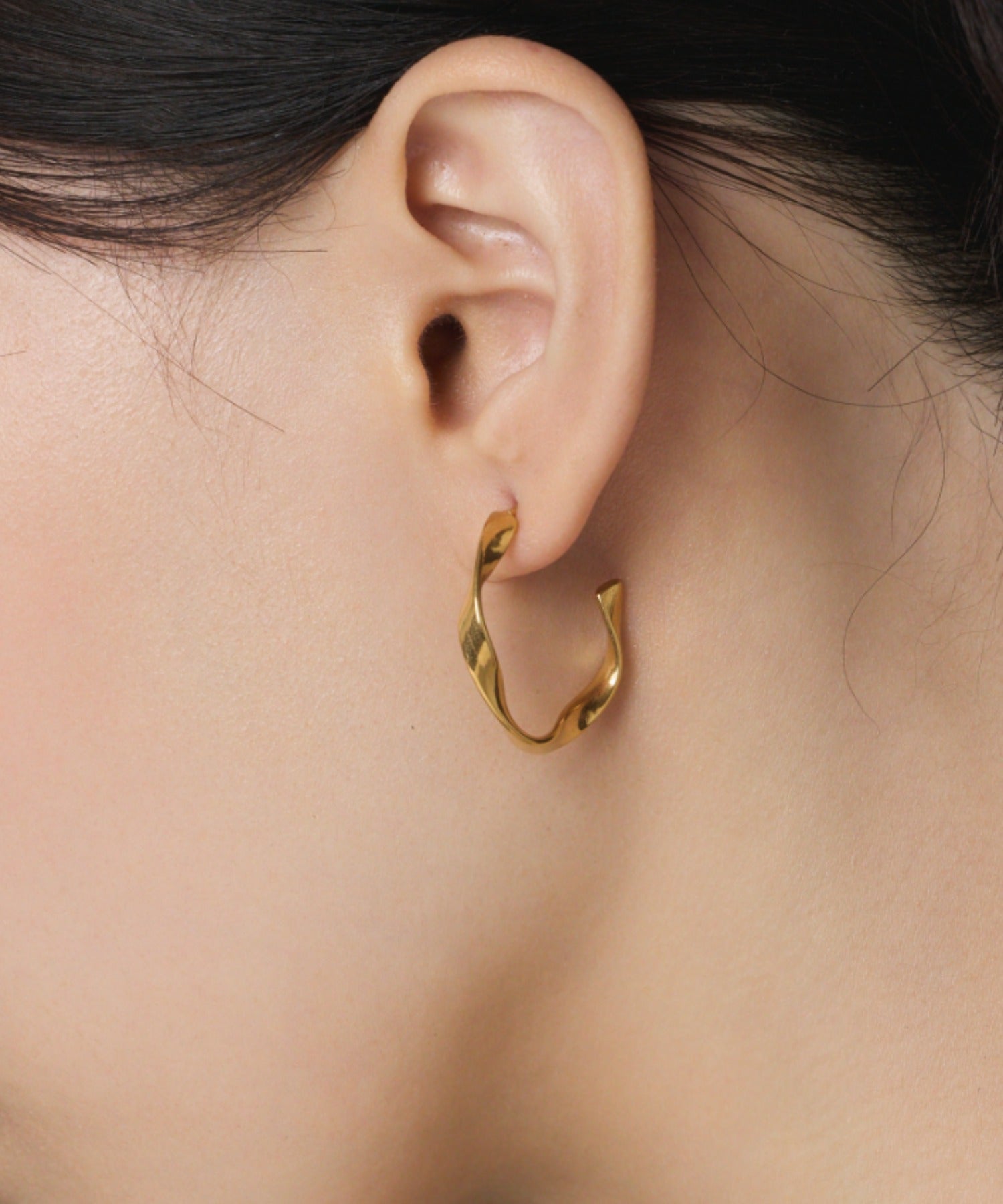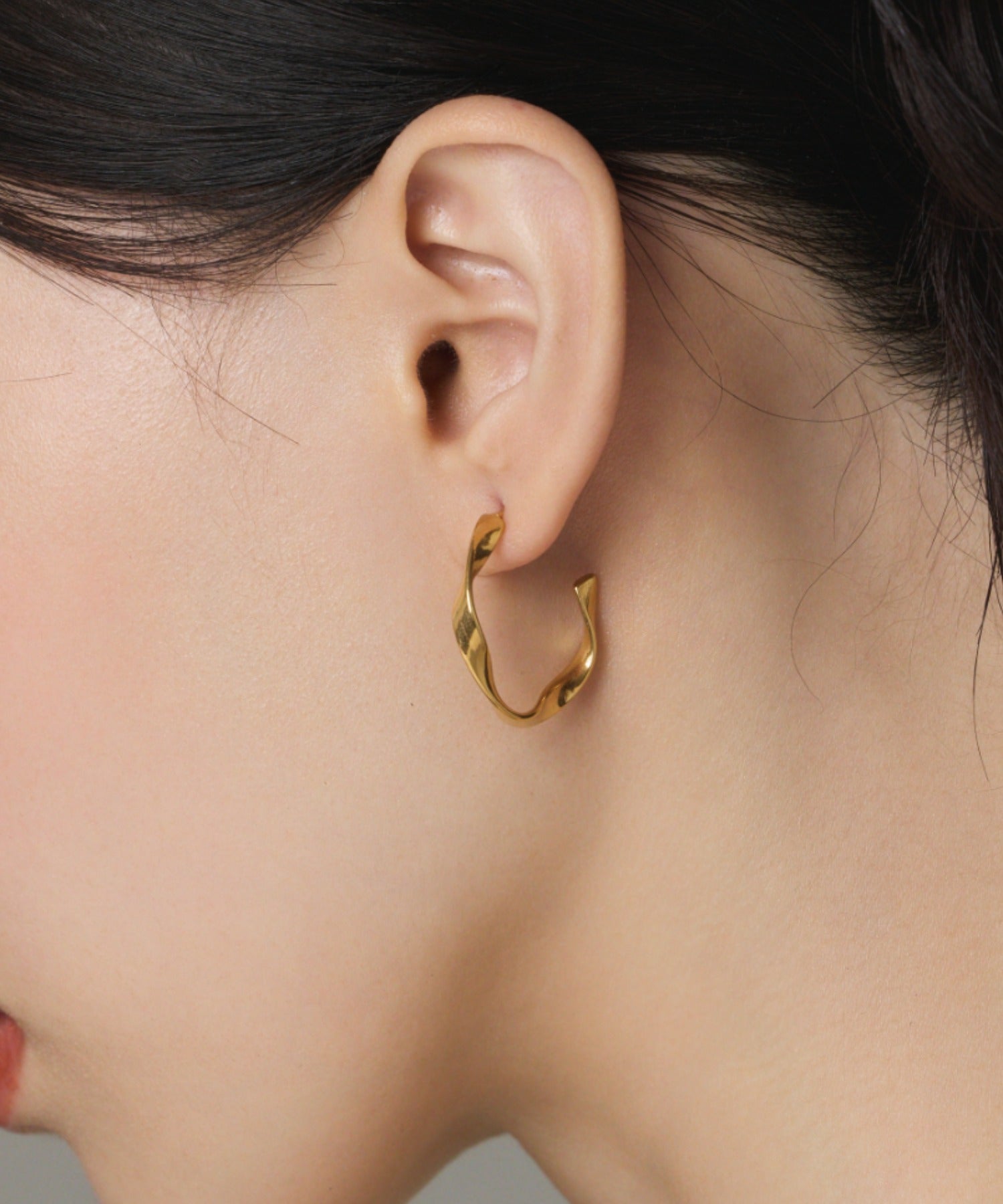 緩やかなひねりを加えたフープピアス。