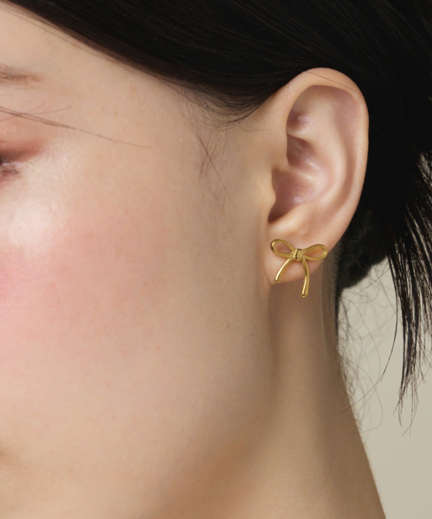 【 金属アレルギー対応 】 リボンピアス サージカルステンレス (両耳用)