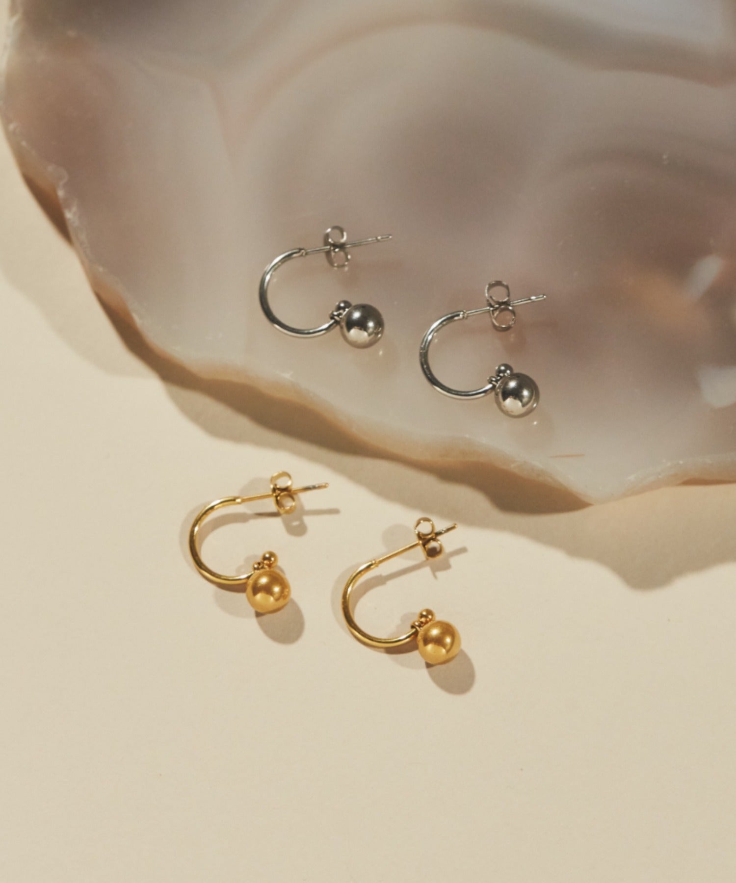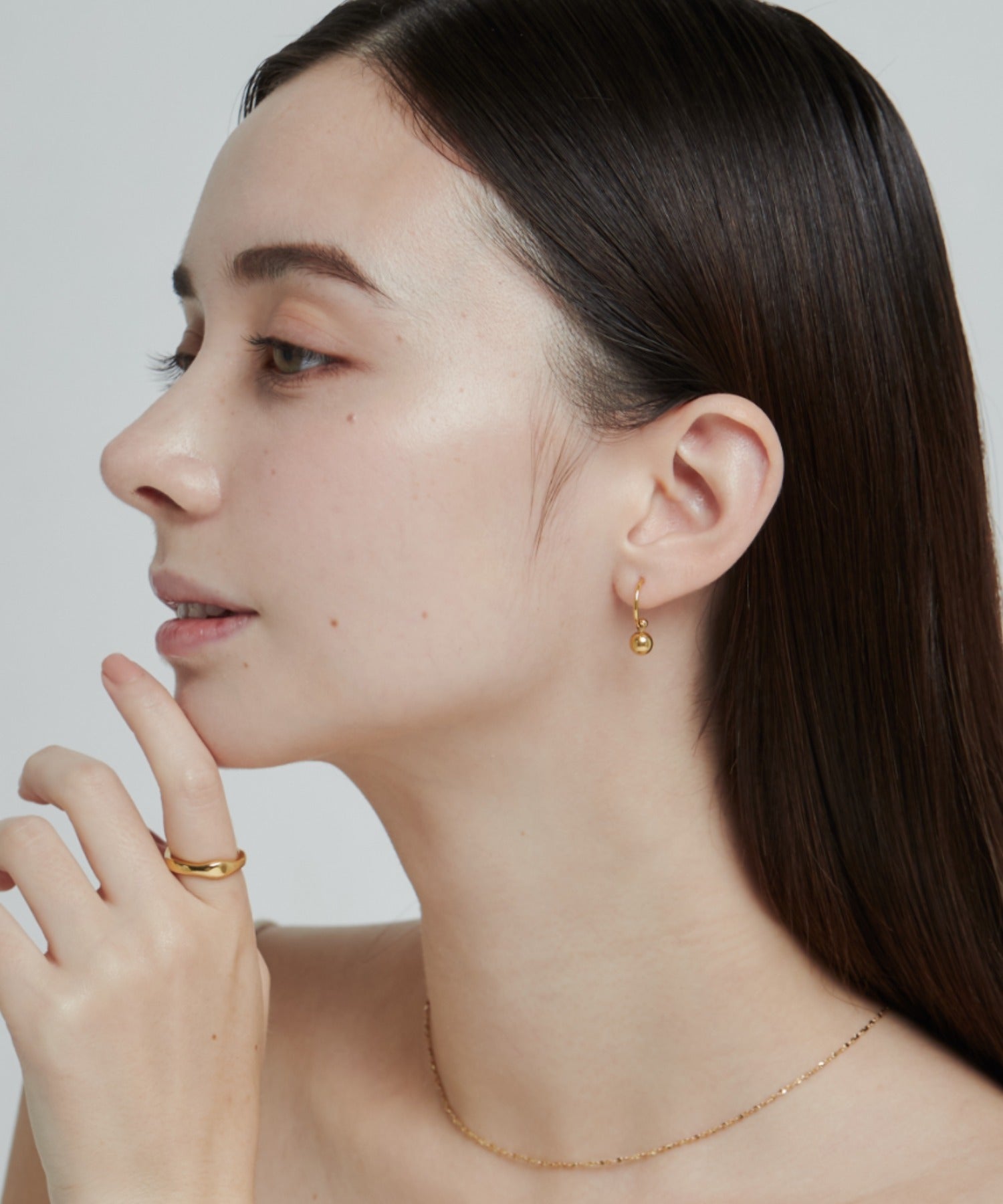 シンプルながらも付けたときのバランスにこだわったモチーフピアス。