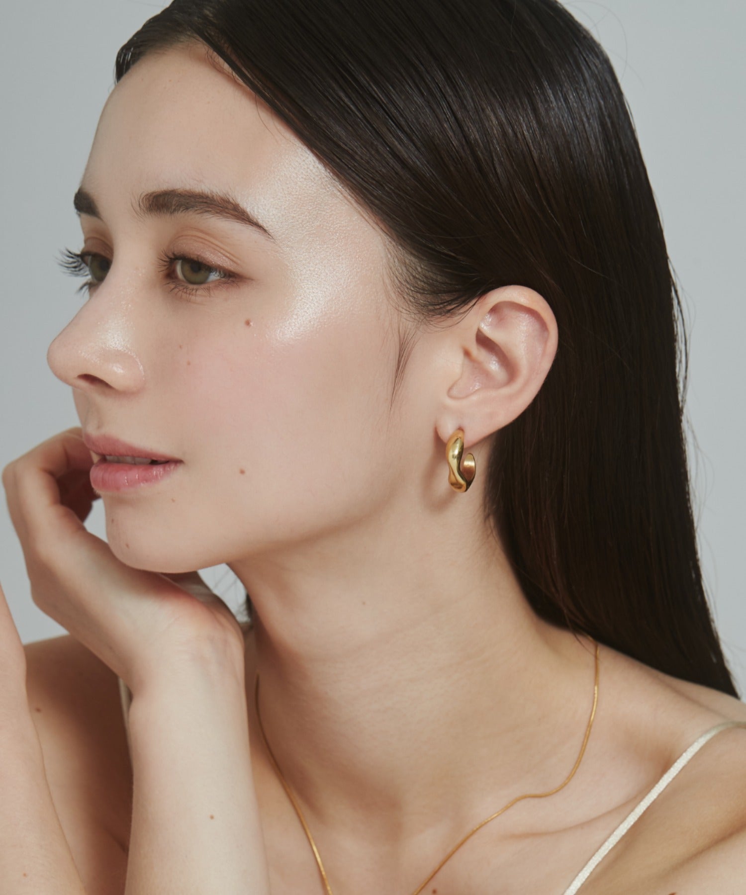 程よいボリューム感とデザインが大人可愛い印象のピアス。
