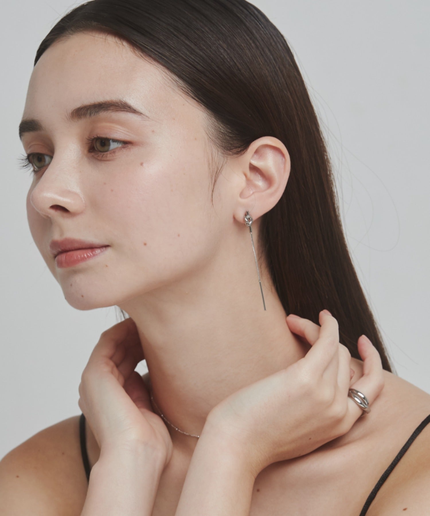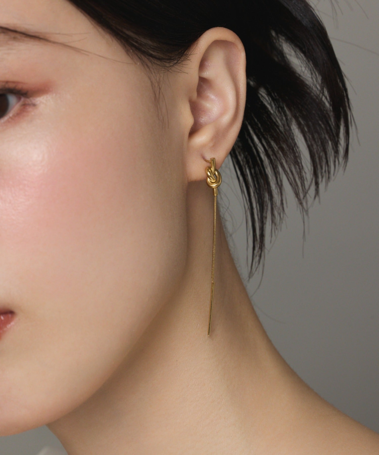 【 金属アレルギー対応 】 ノットチェーンピアス サージカルステンレス (両耳用)