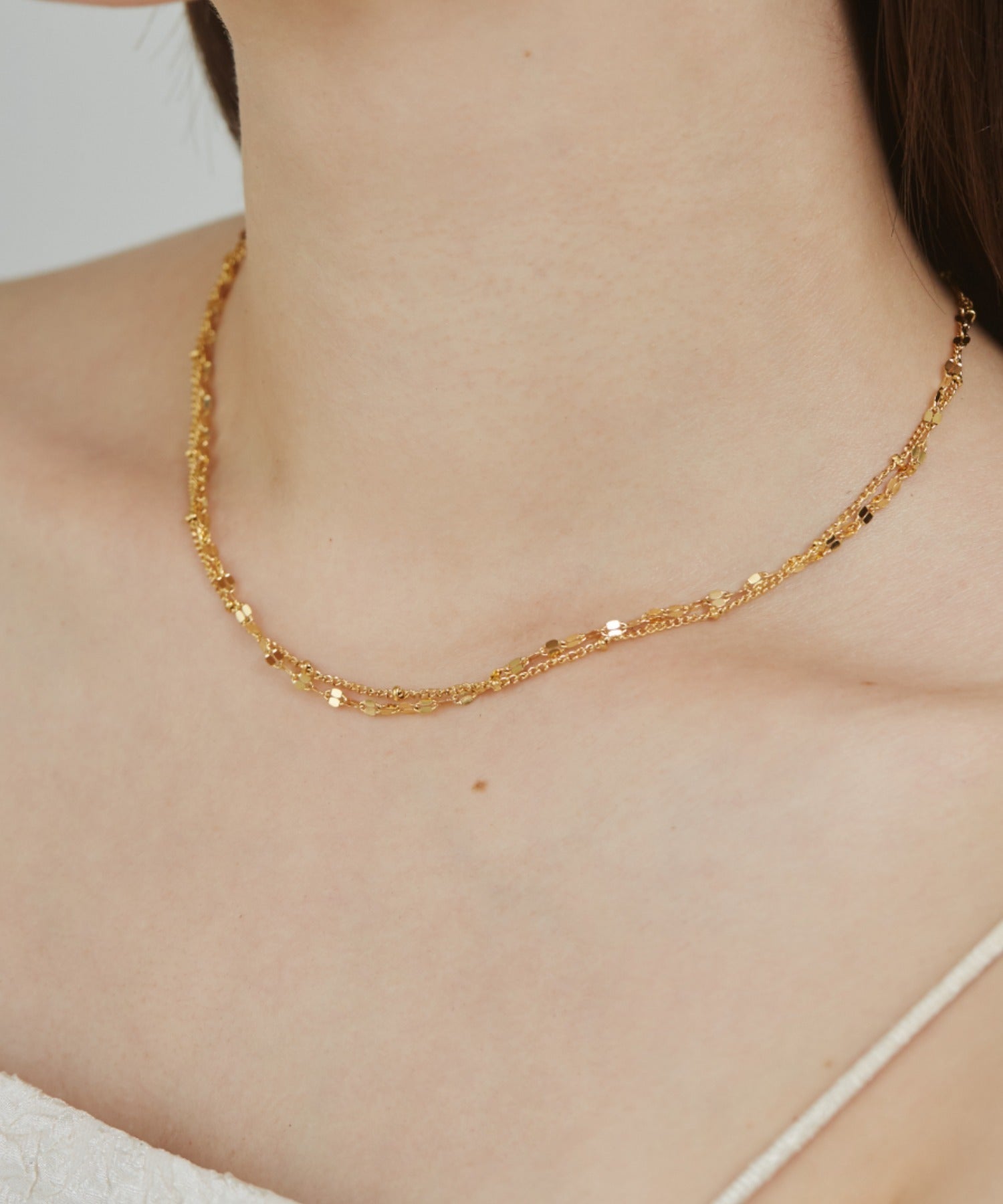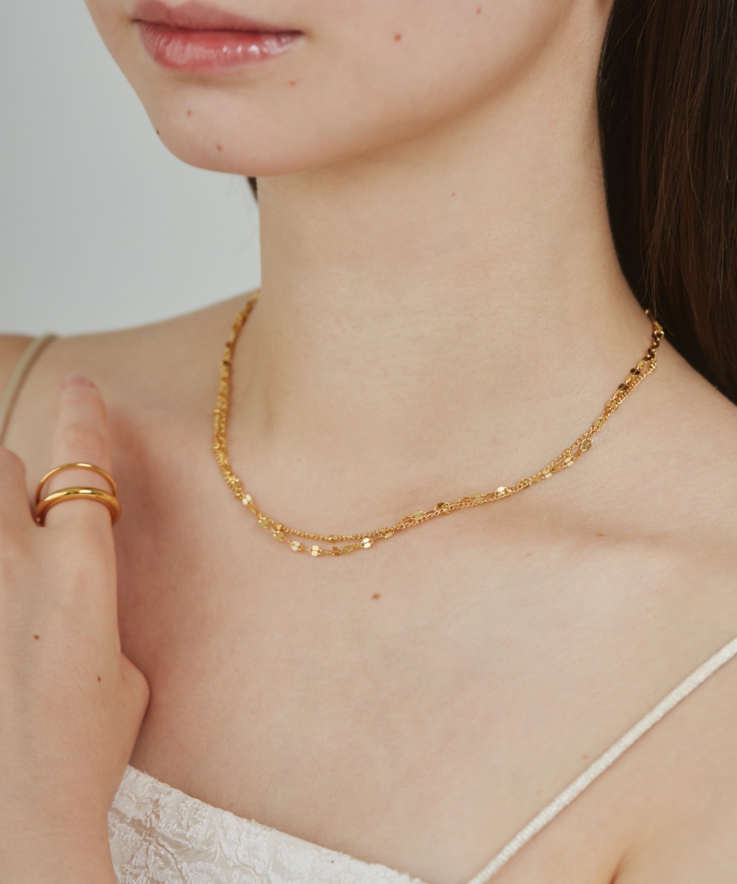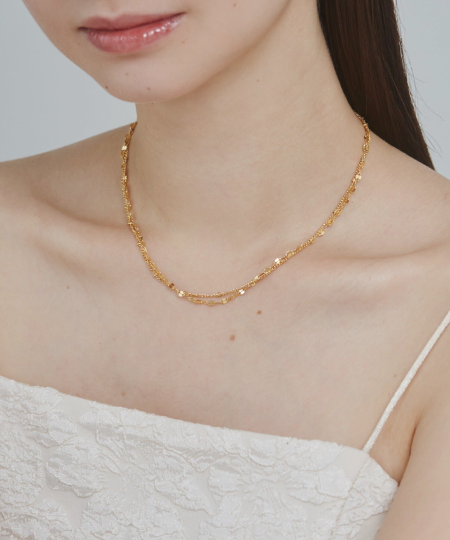 2つのネックレスを組み合わせたデザインで、いつものコーディネートに合わせるだけでコーデを格上げしてくれます◎