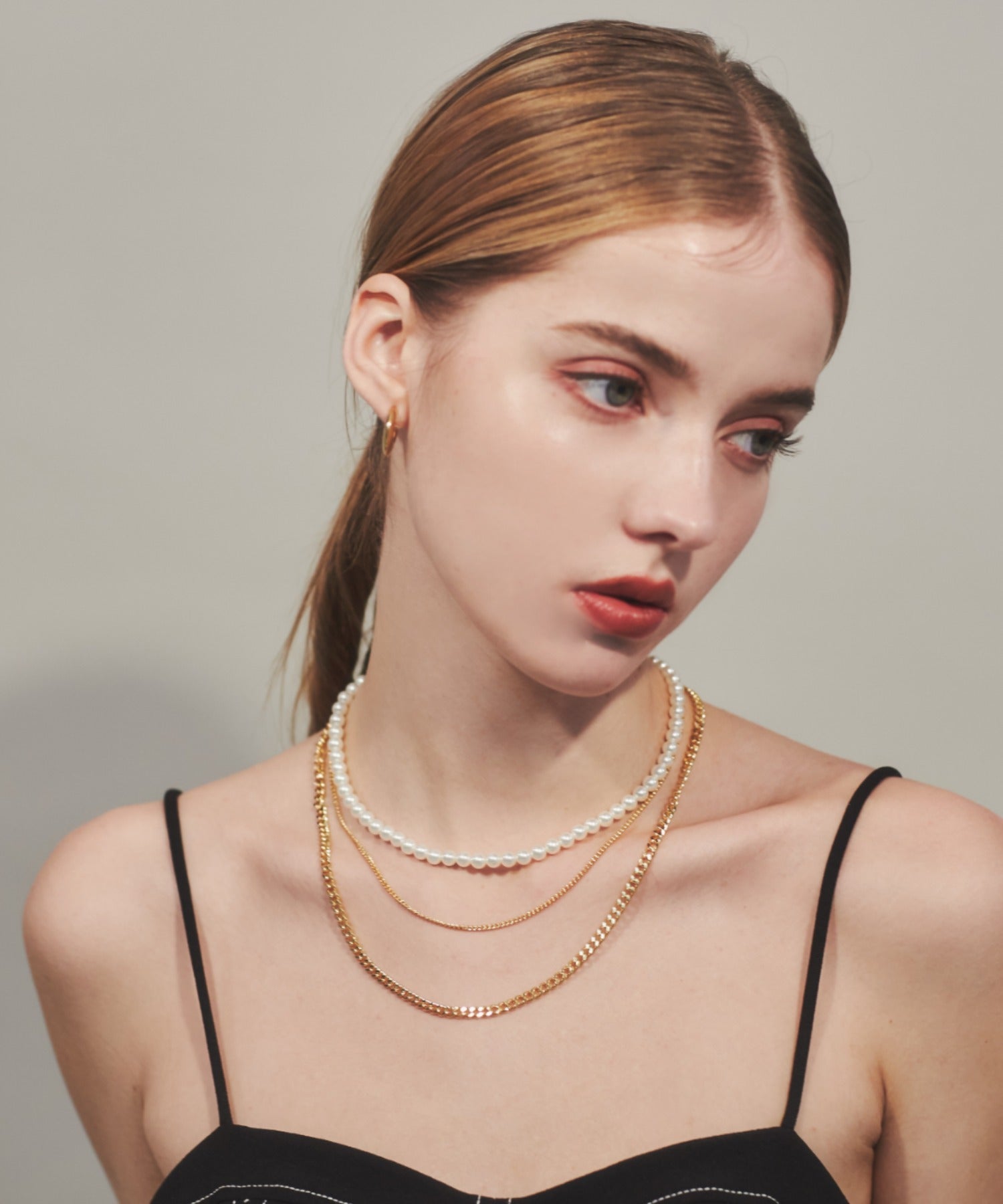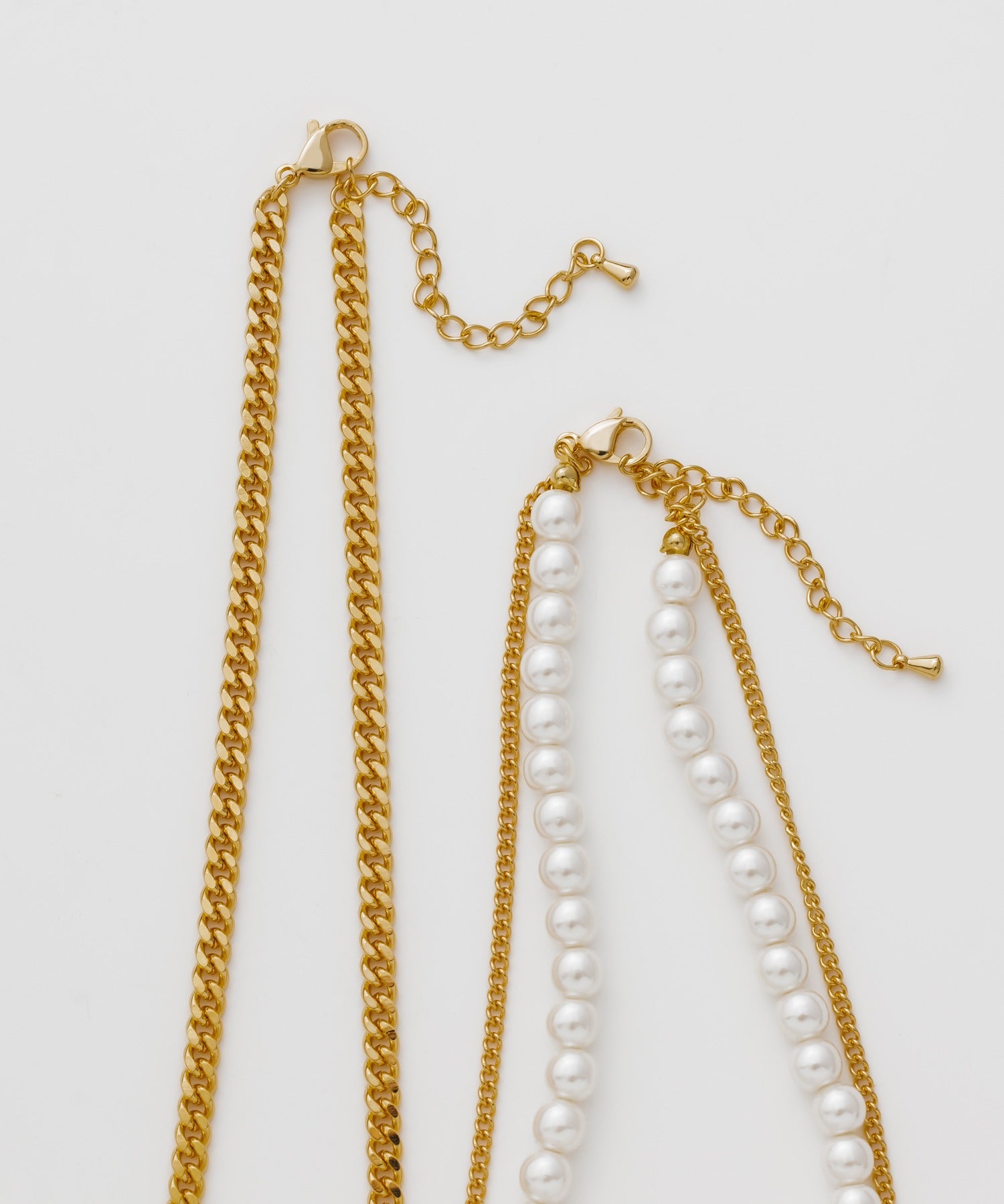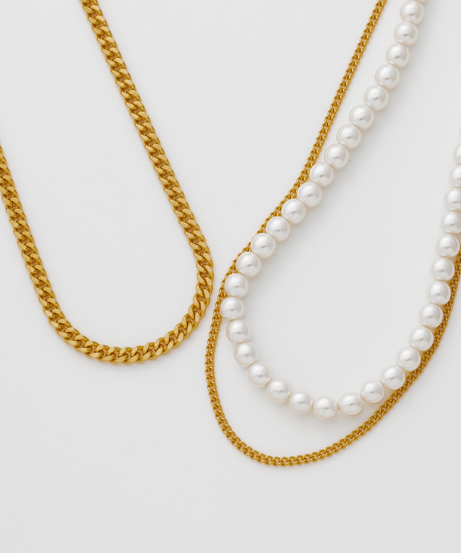 1つはシンプルなチェーンネックレスで、もう一つはパールを組み合わせたデザインネックレス。