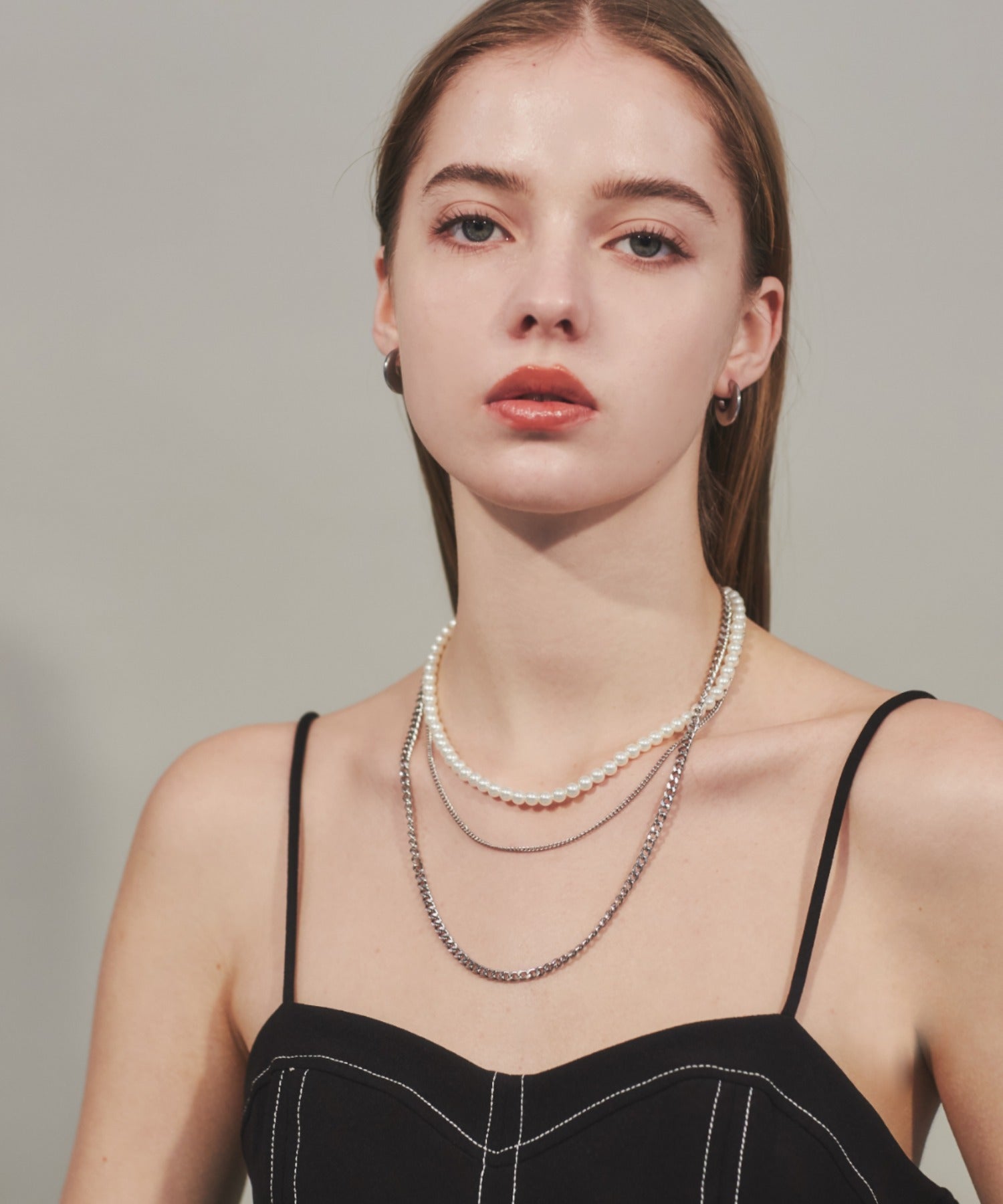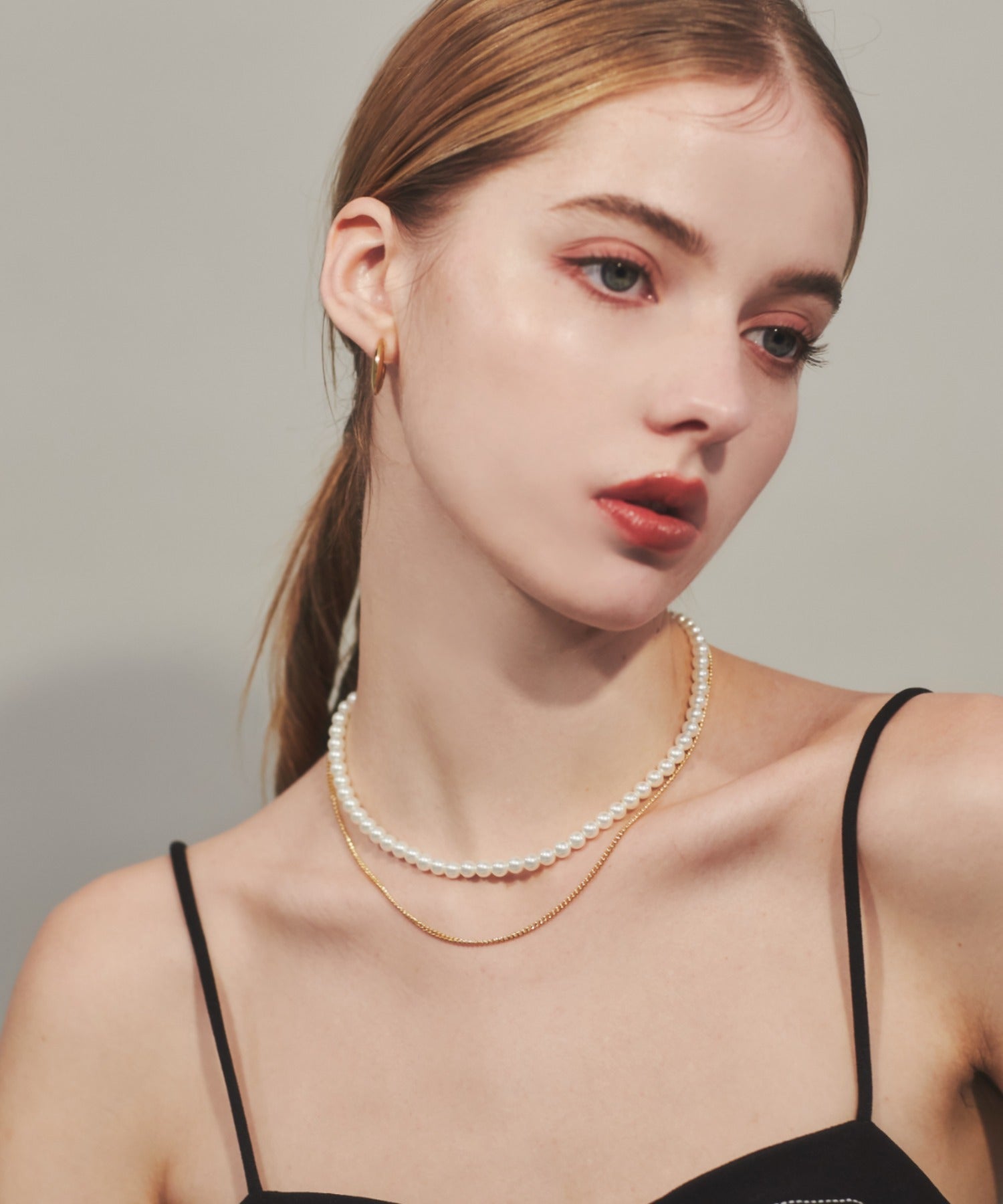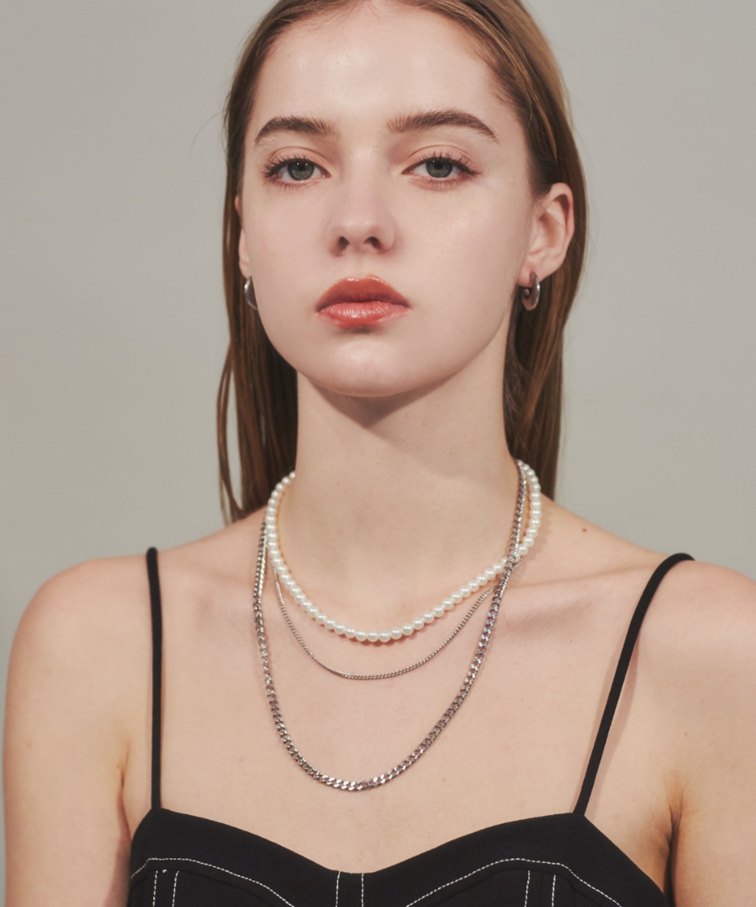 1つはシンプルなチェーンネックレスで、もう一つはパールを組み合わせたデザインネックレス。