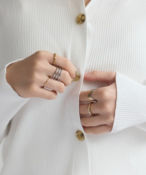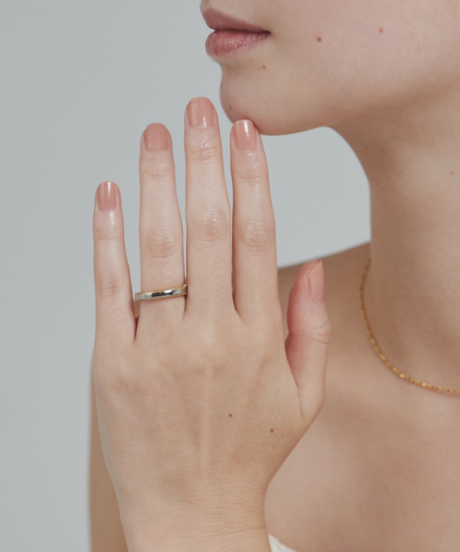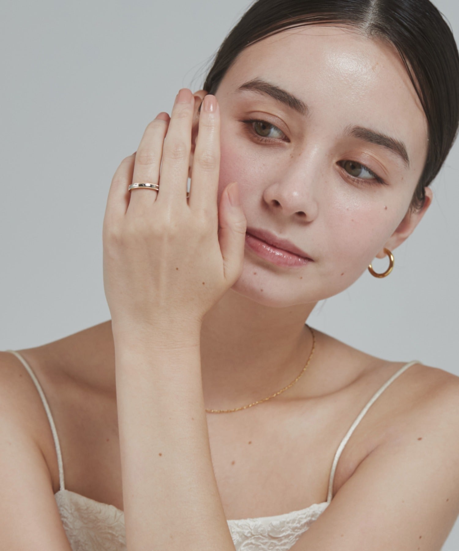 シンプルながらも付けた時のバランスに最大限こだわり、単体で付けるのはもちろん、他のリングとの組み合わせもオススメです◎