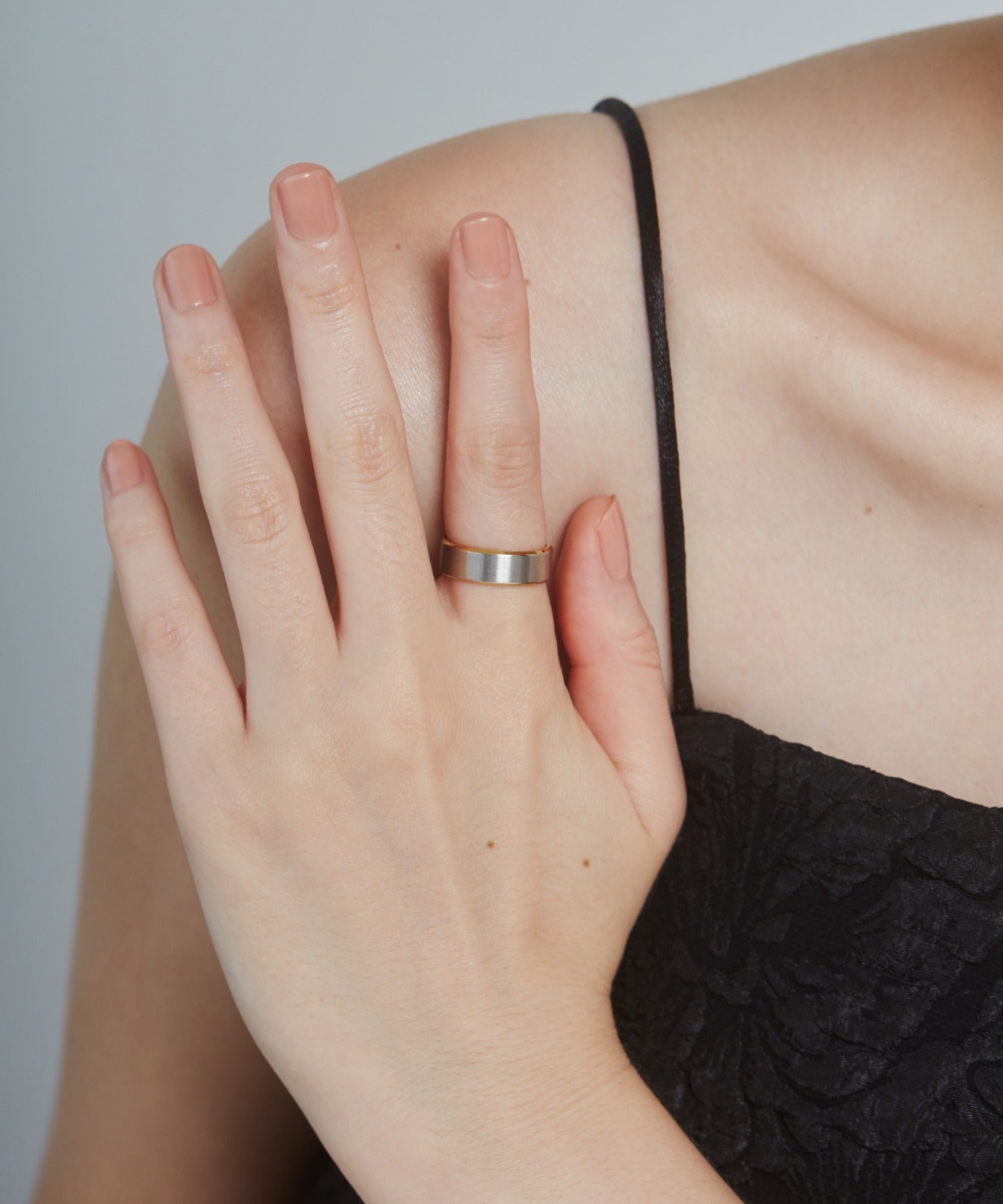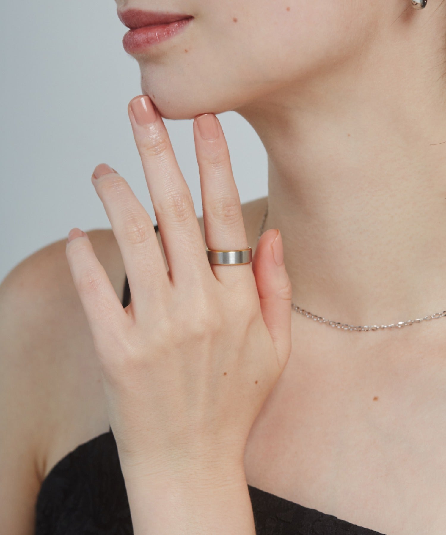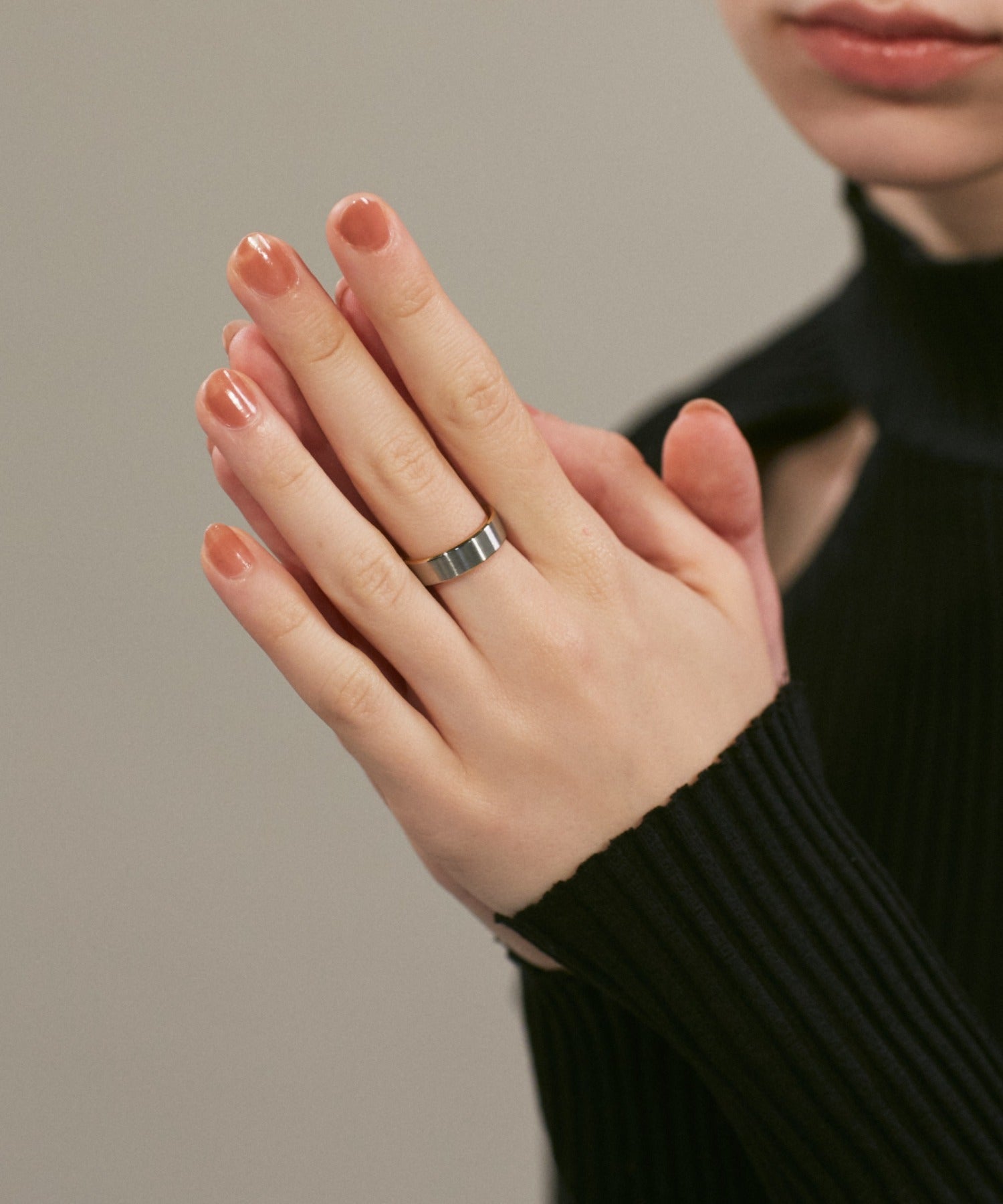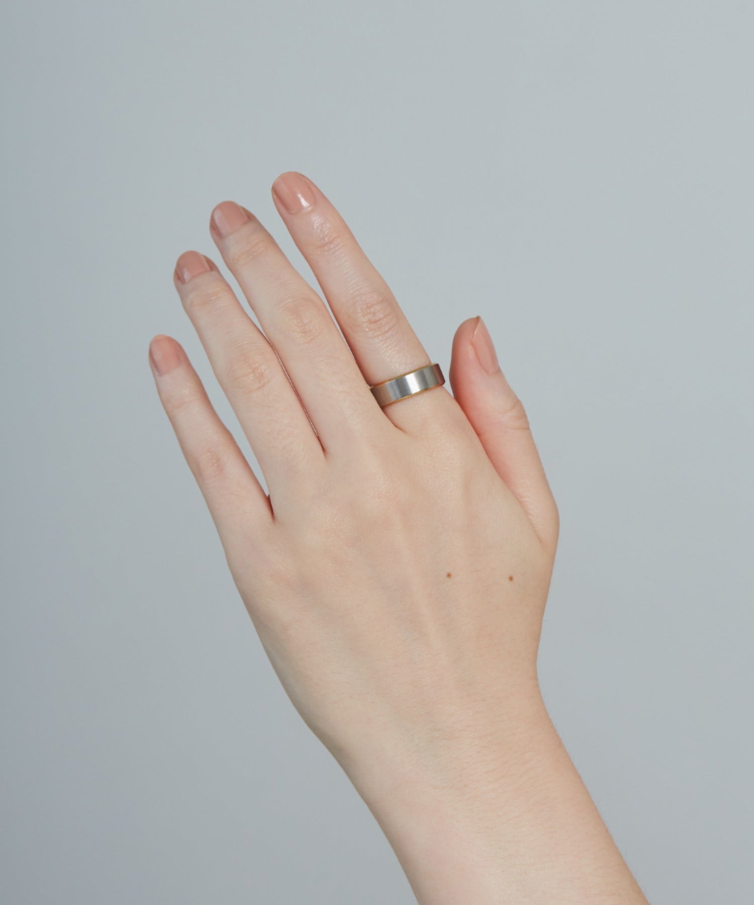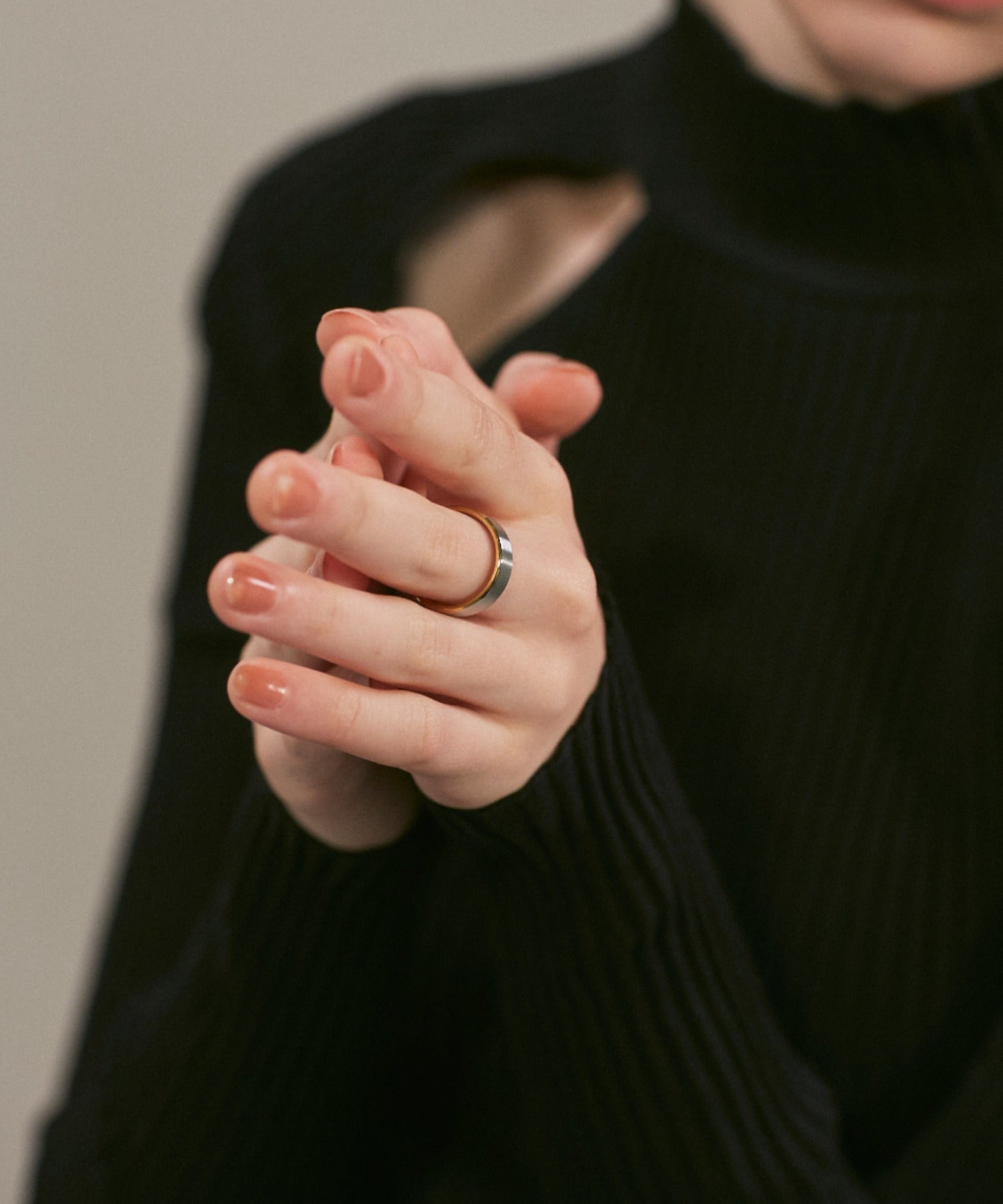 リングの縁(ふち)部分と内側のカラーをバイカラーにしたデザインリング。