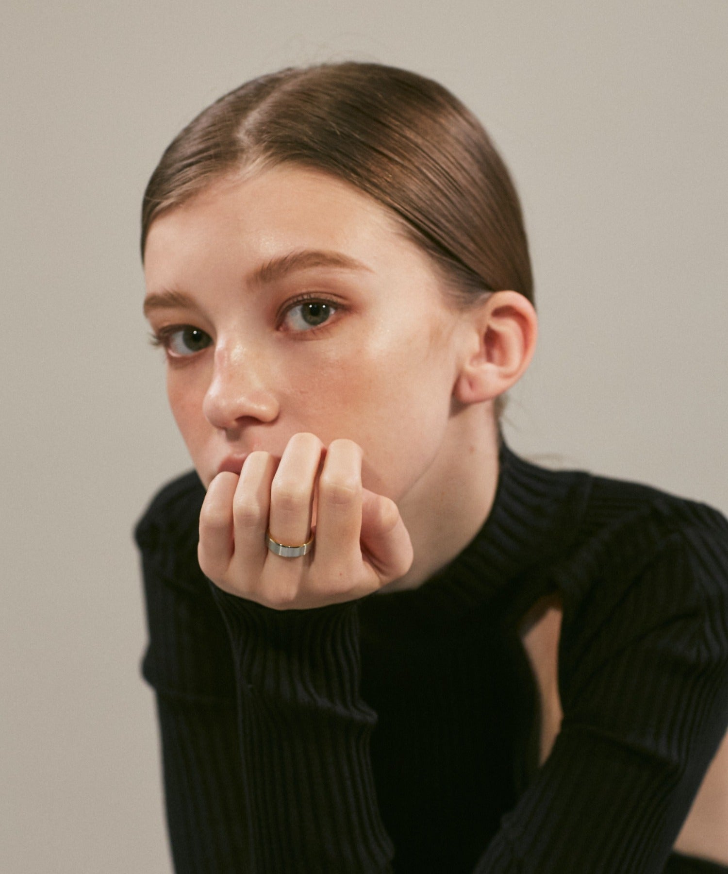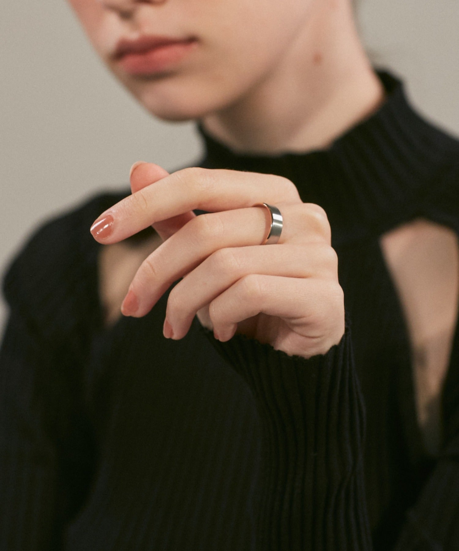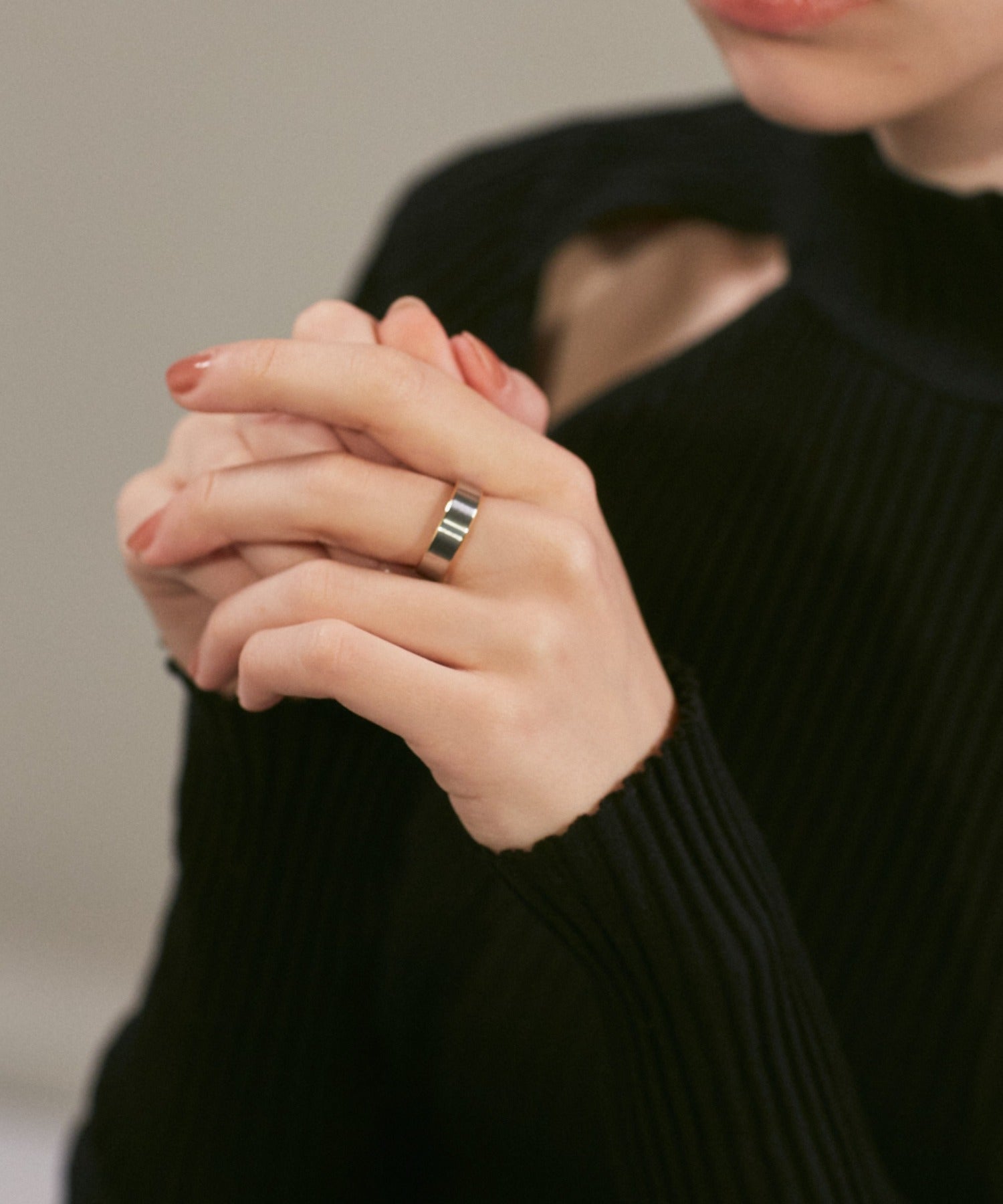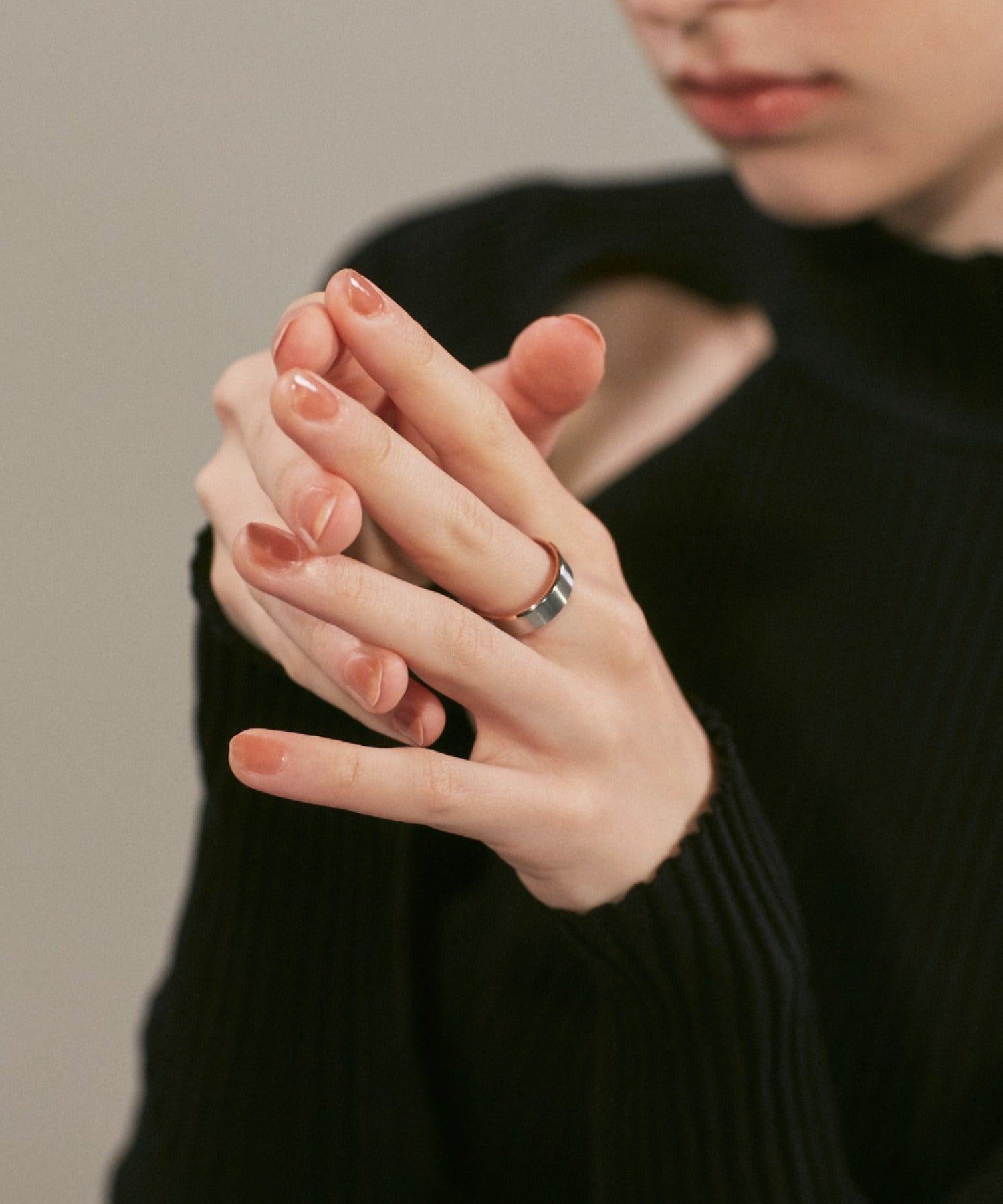 リングの縁(ふち)部分と内側のカラーをバイカラーにしたデザインリング。
