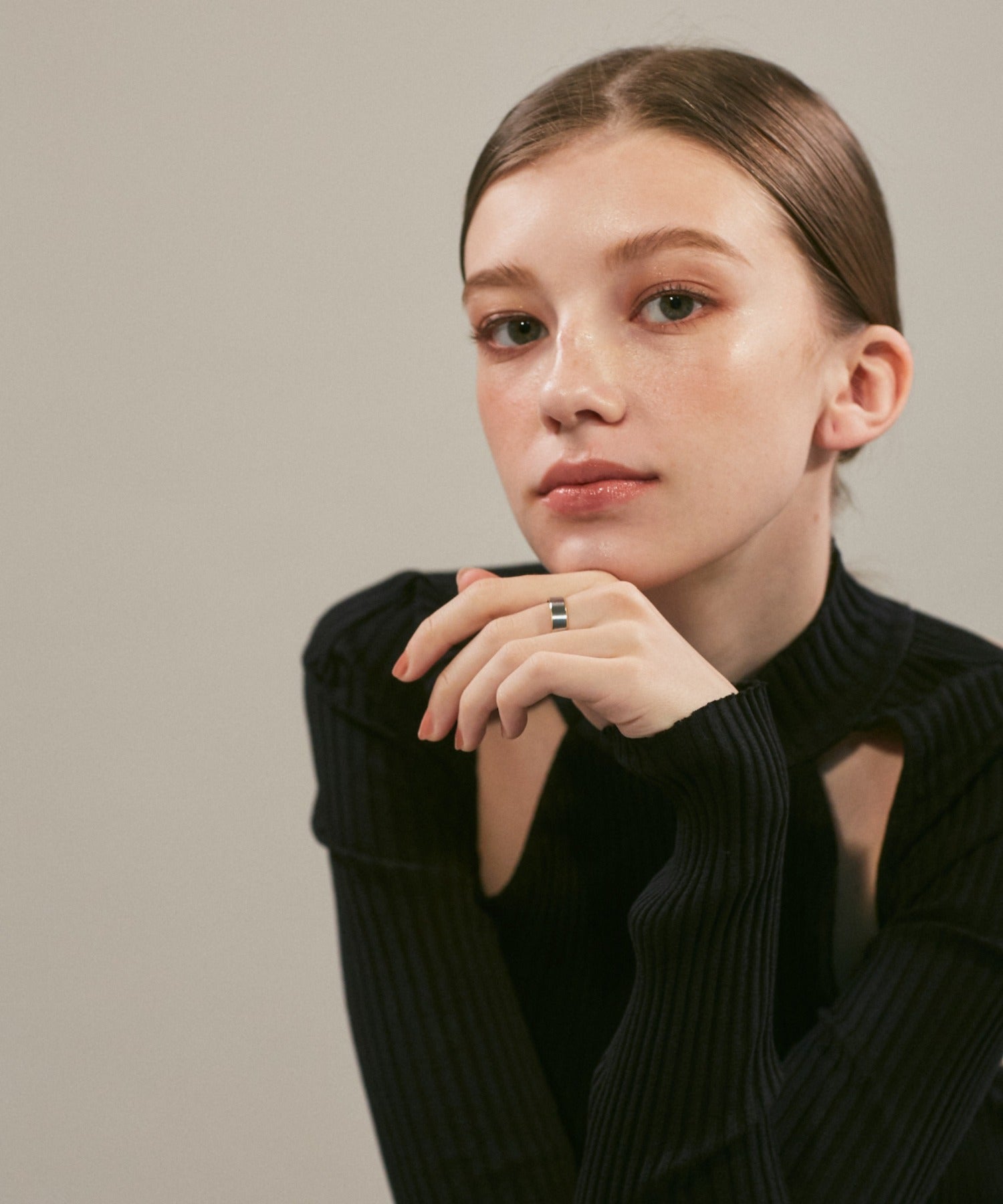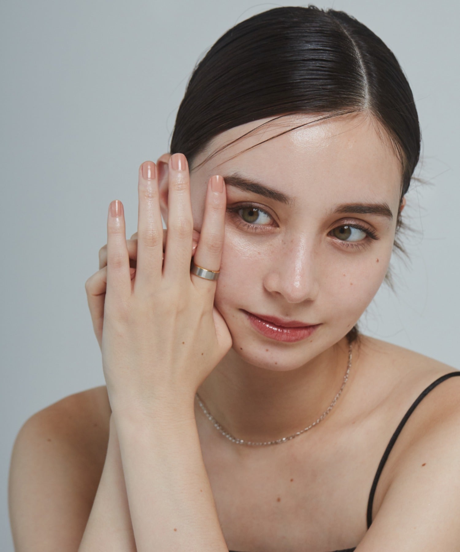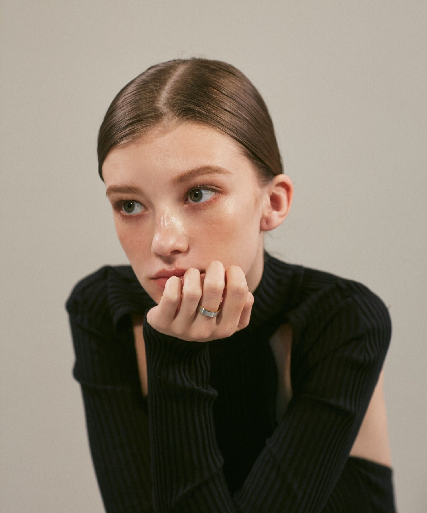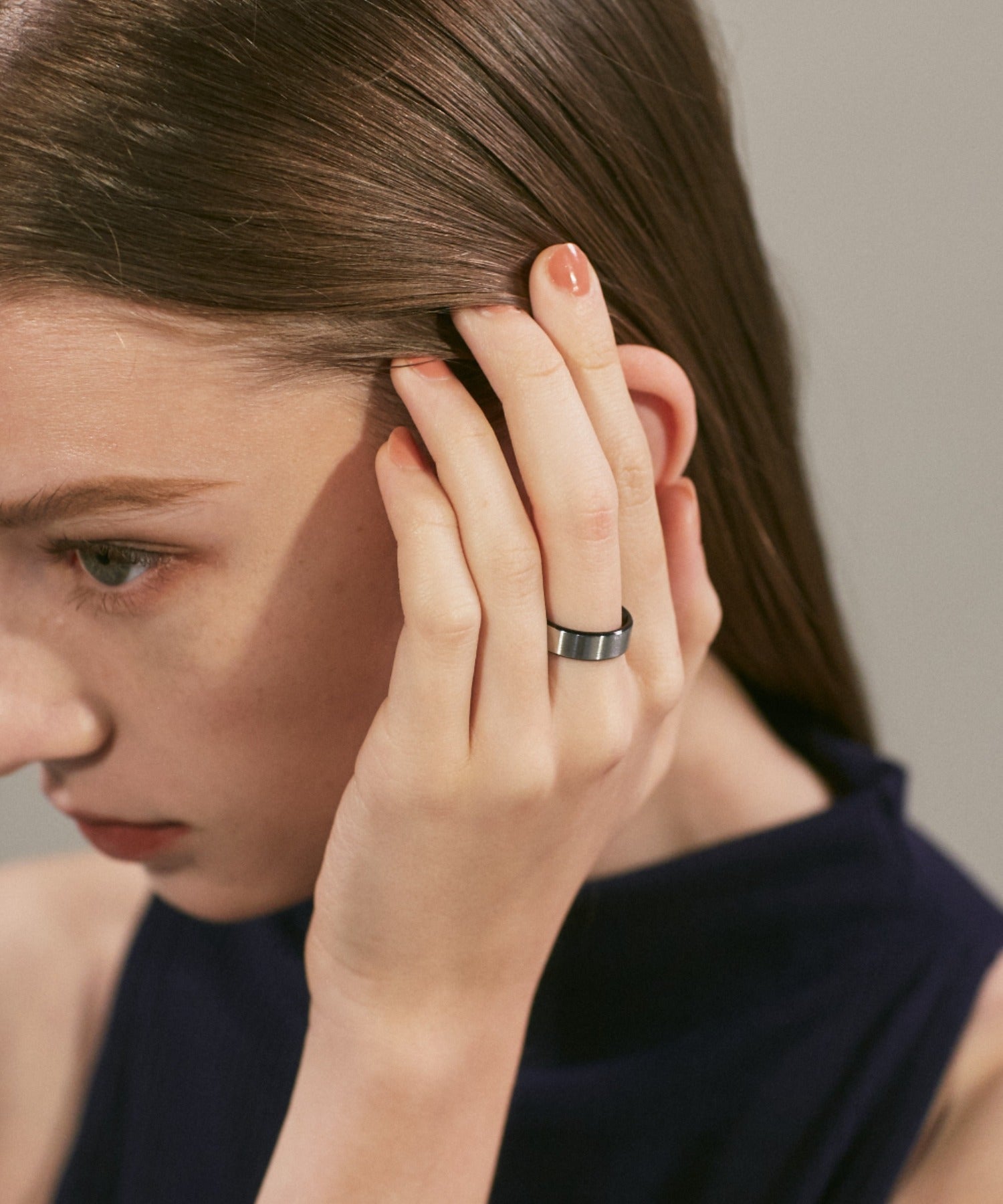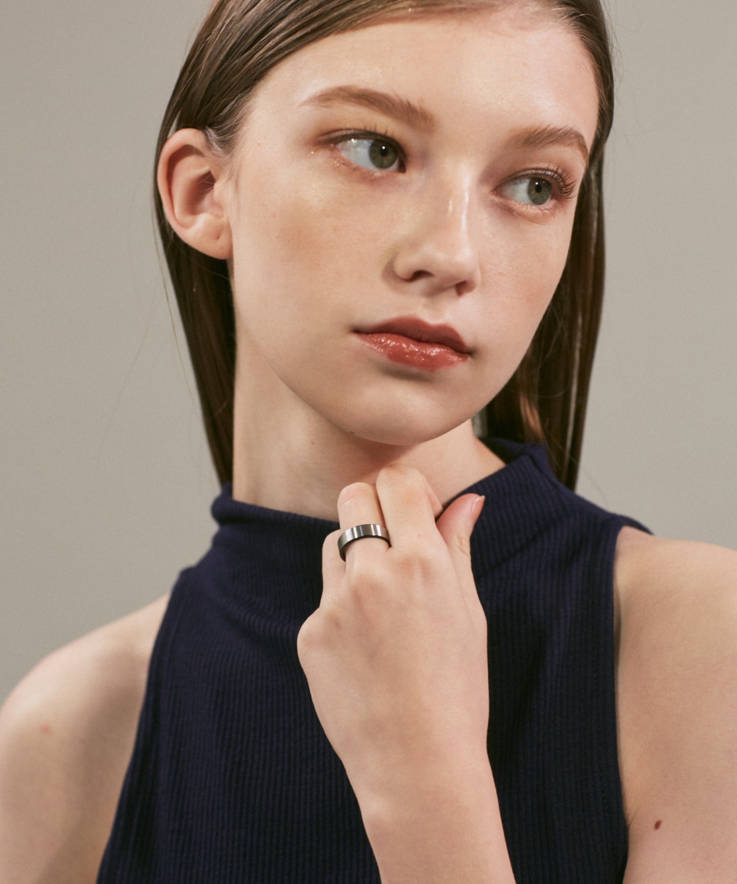 リングの縁(ふち)部分と内側のカラーをバイカラーにしたデザインリング。