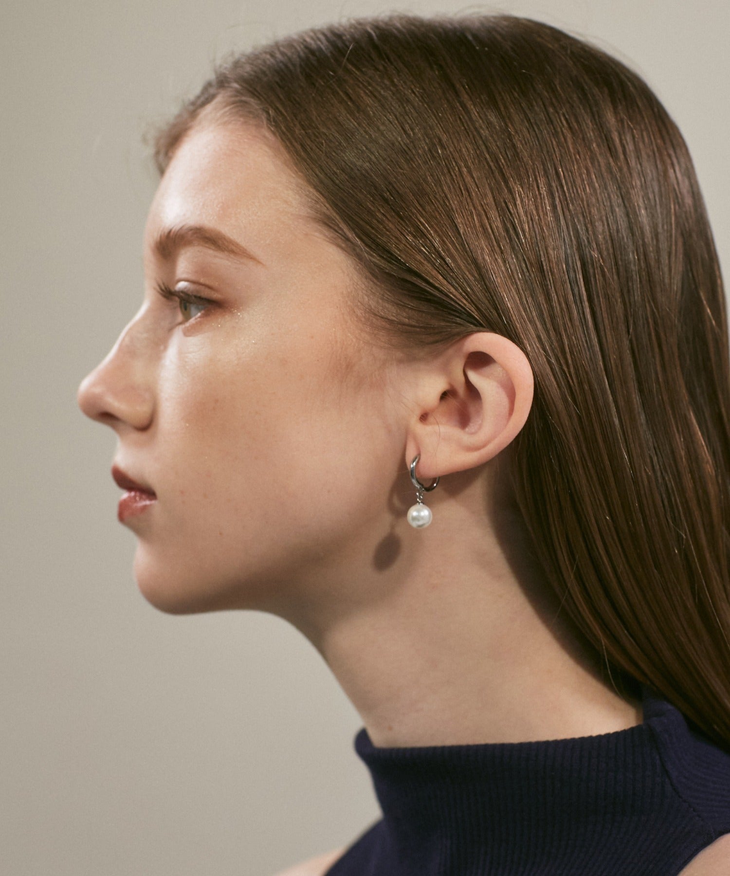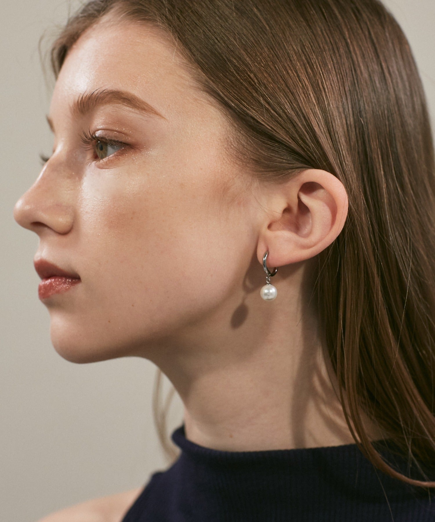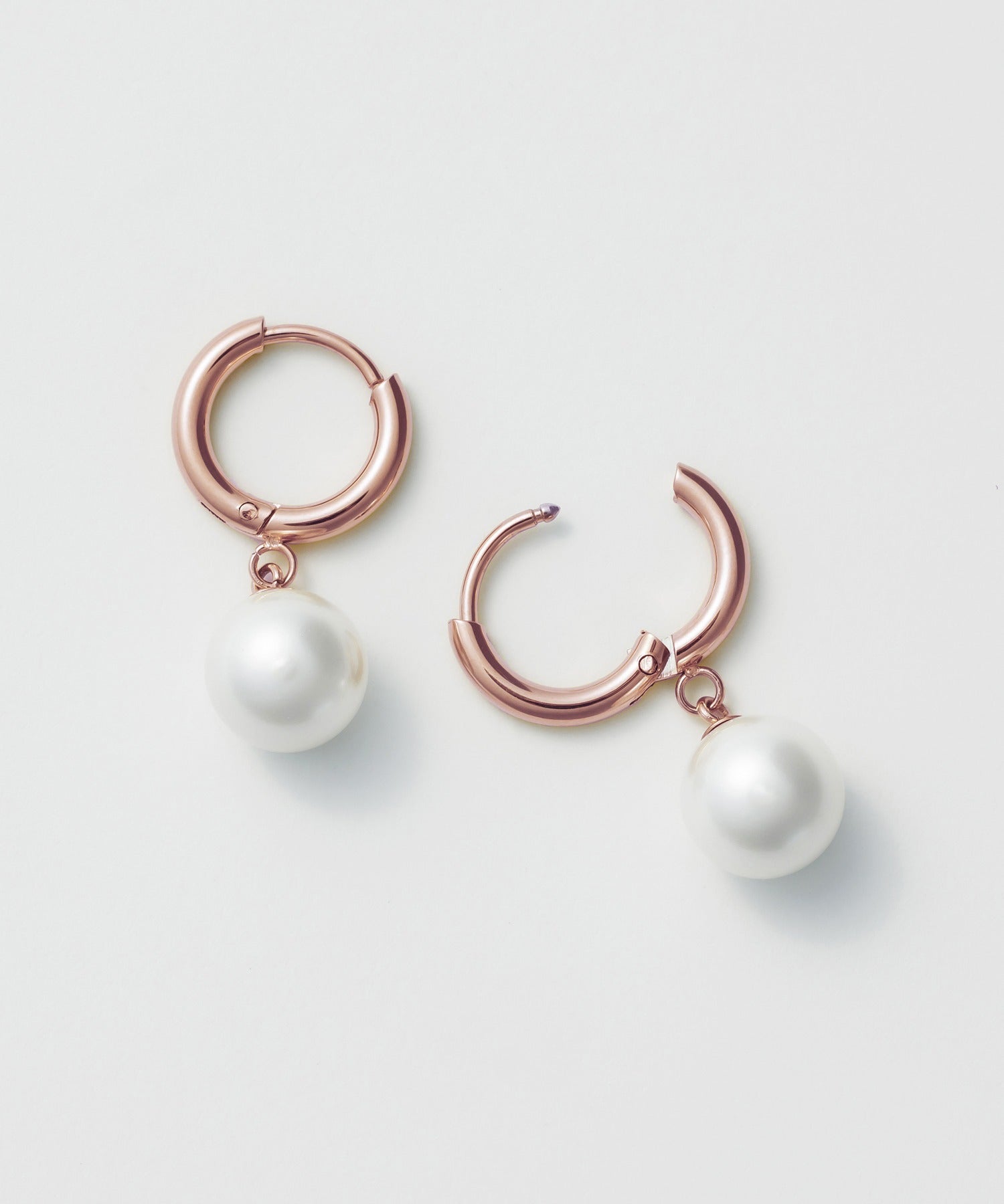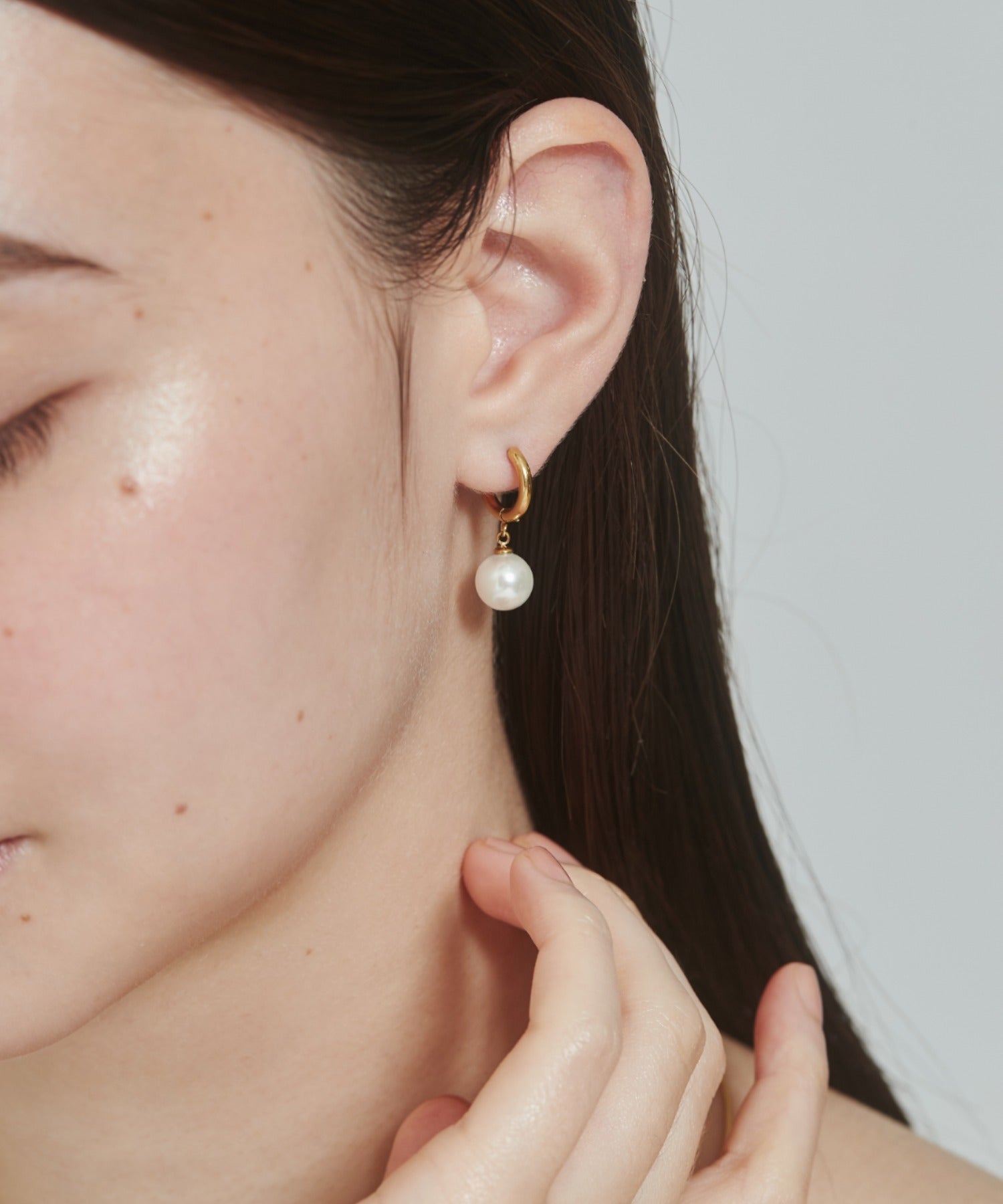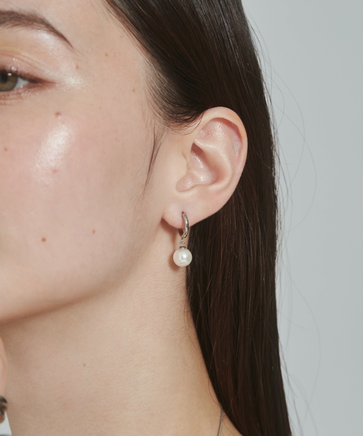 シンプルながらも付けたときのバランスにこだわったパールフープピアス。