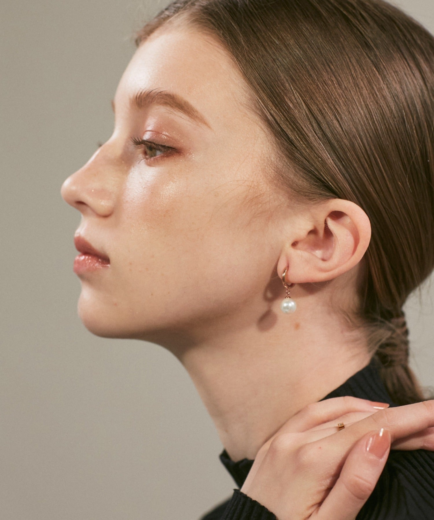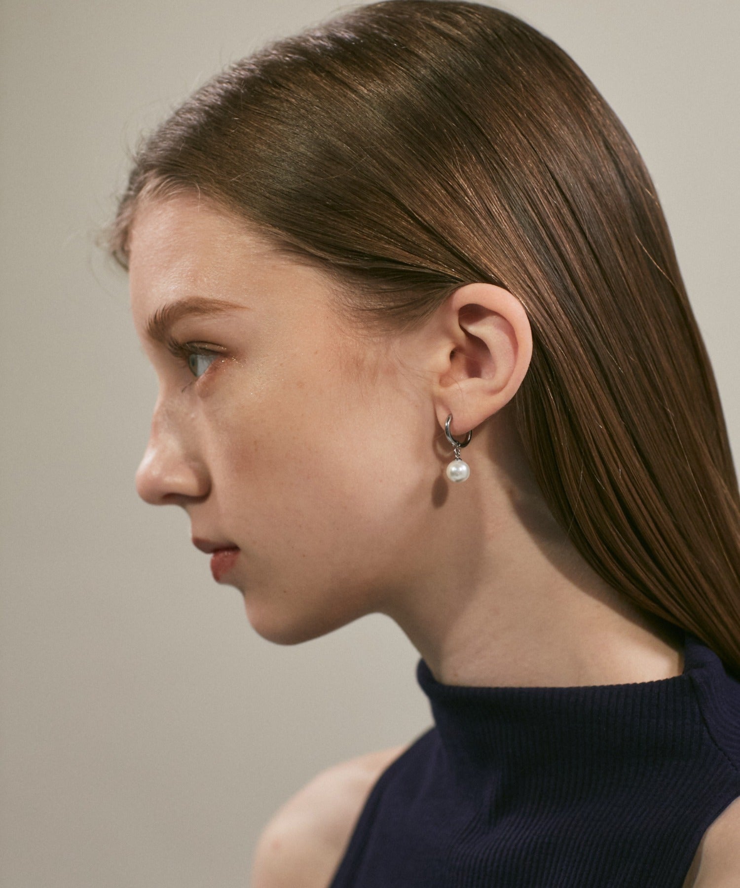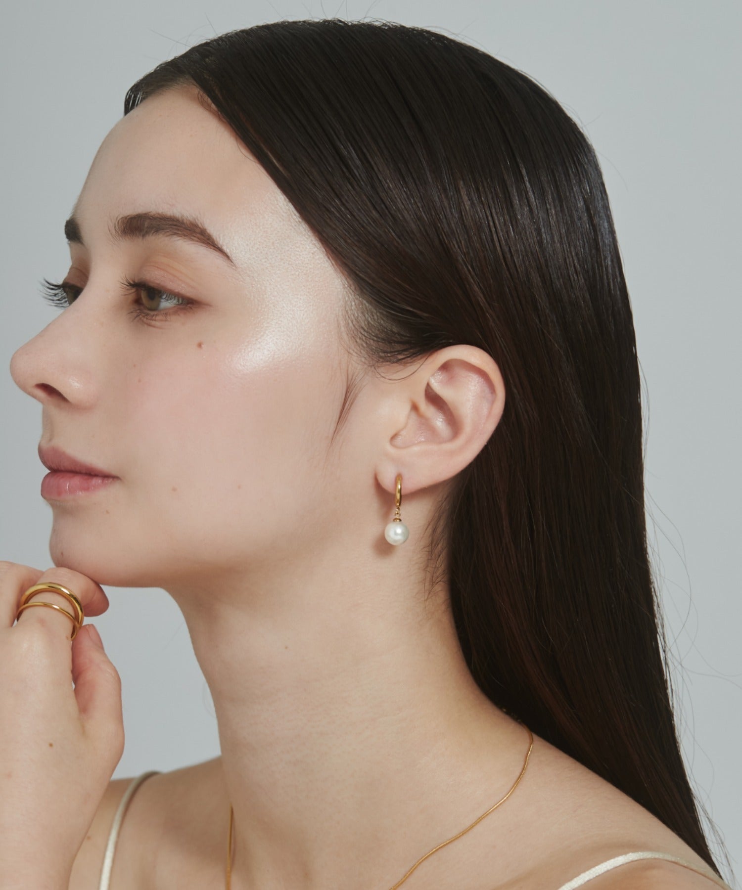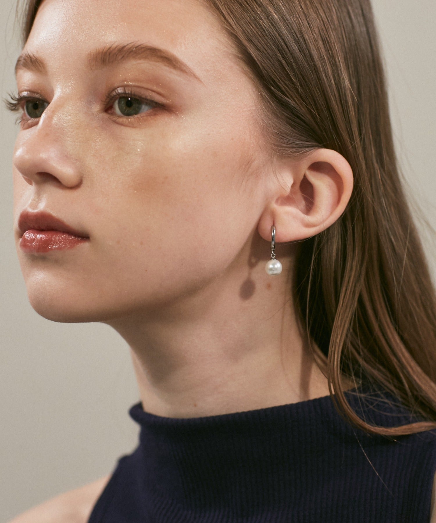 シンプルながらも付けたときのバランスにこだわったパールフープピアス。