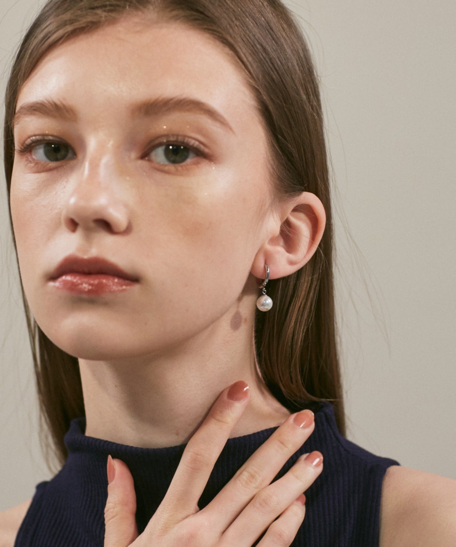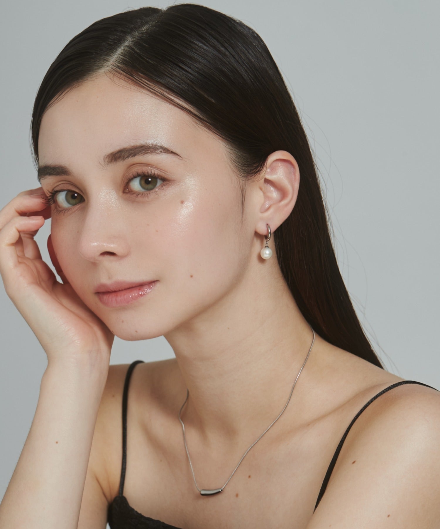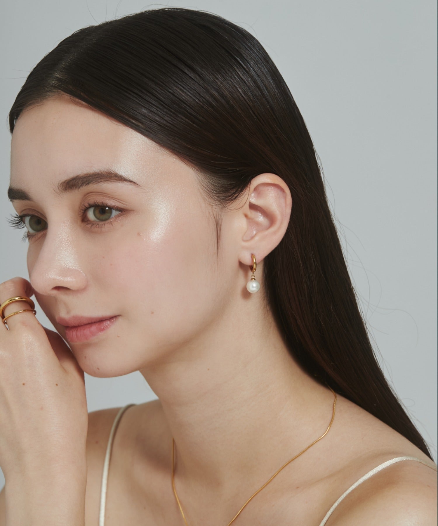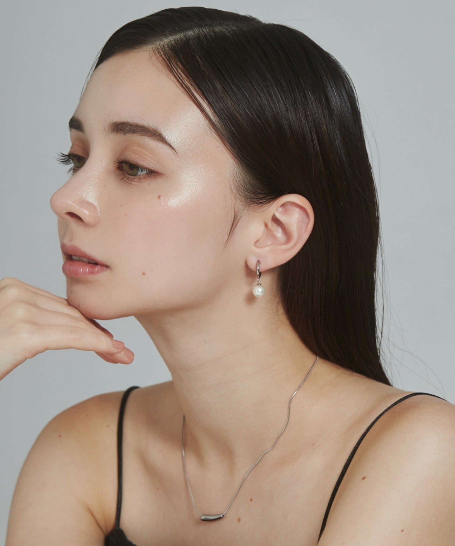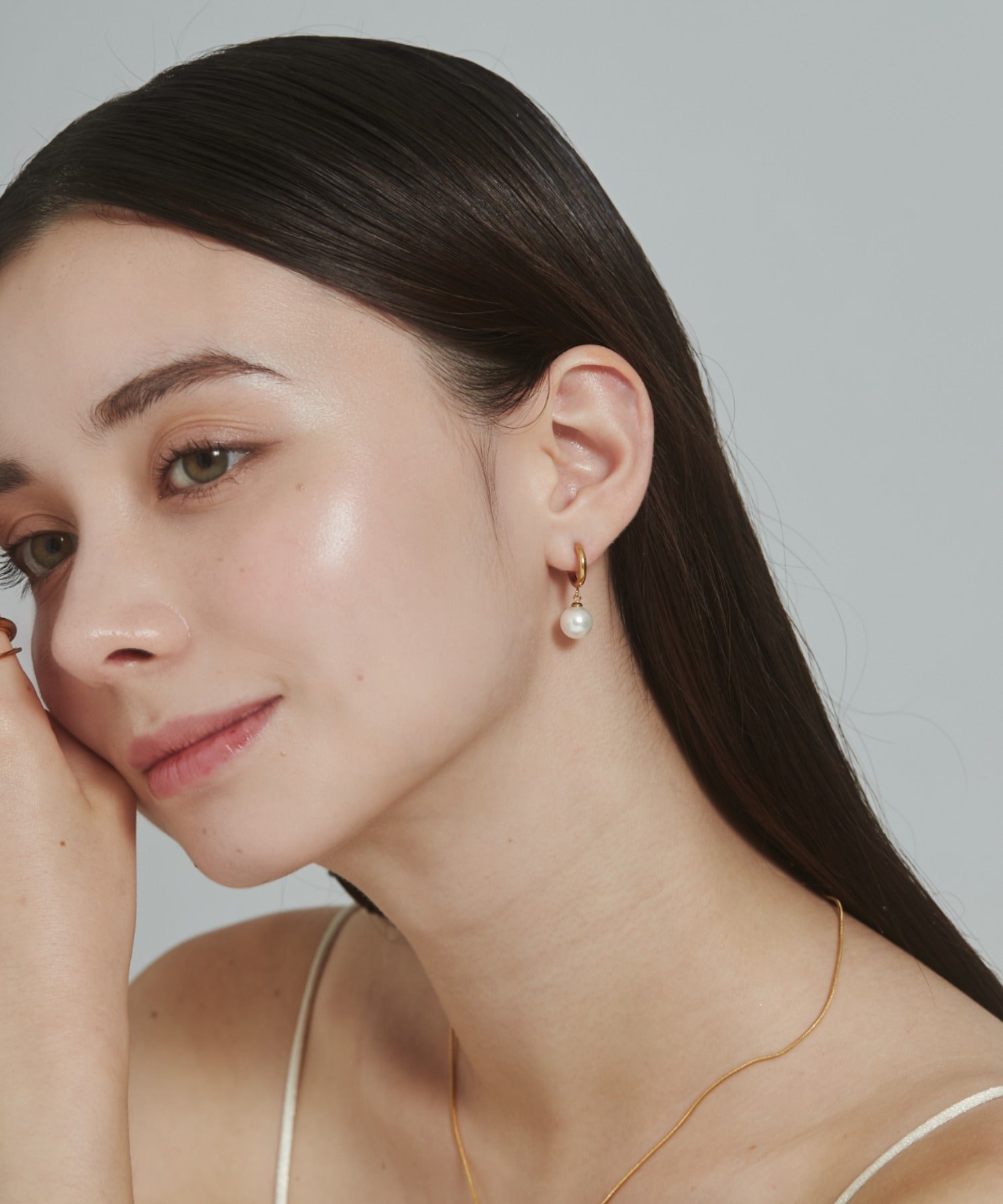シンプルながらも付けたときのバランスにこだわったパールフープピアス。