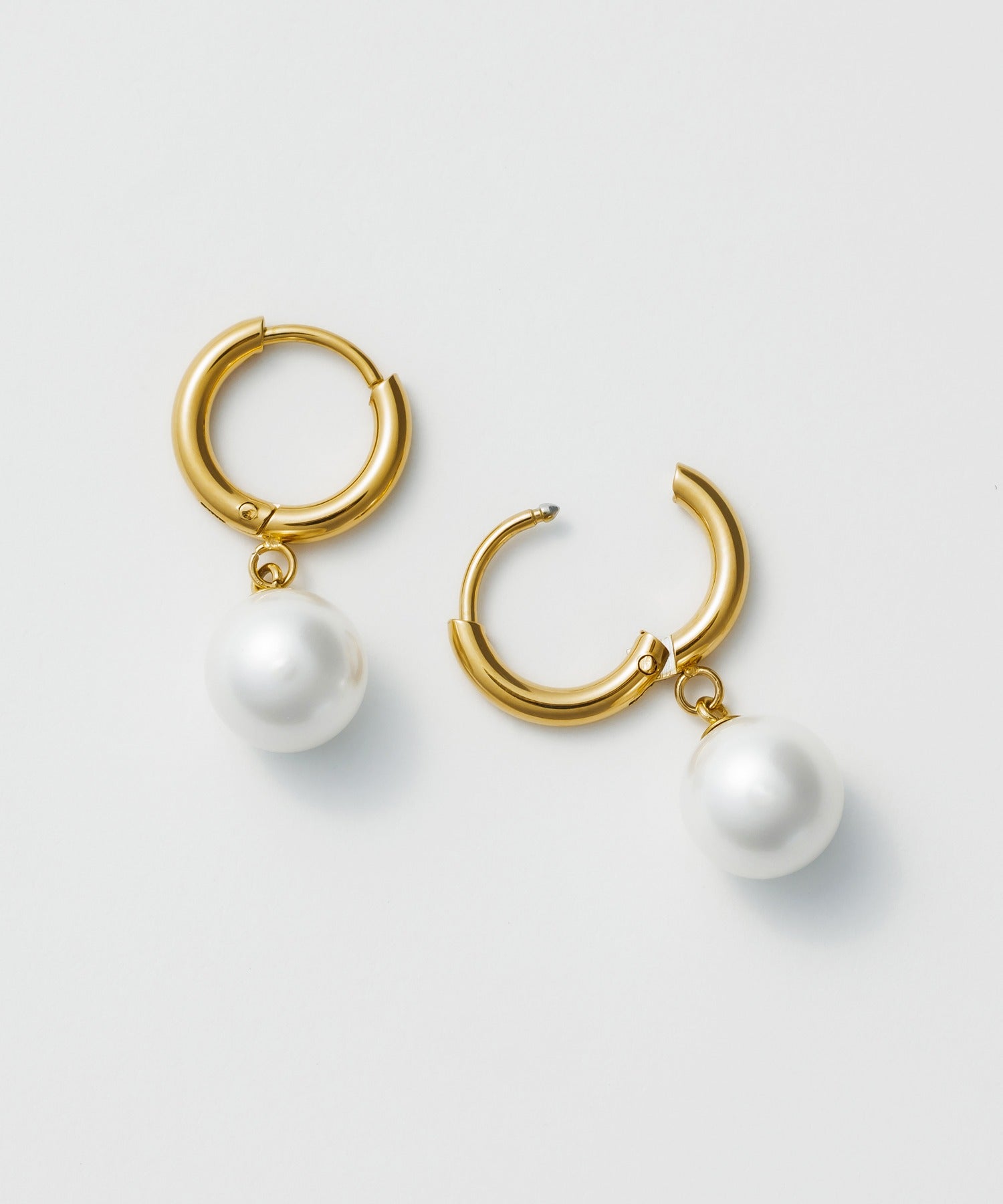 【 金属アレルギー対応 】 パールフープピアス サージカルステンレス (両耳用)