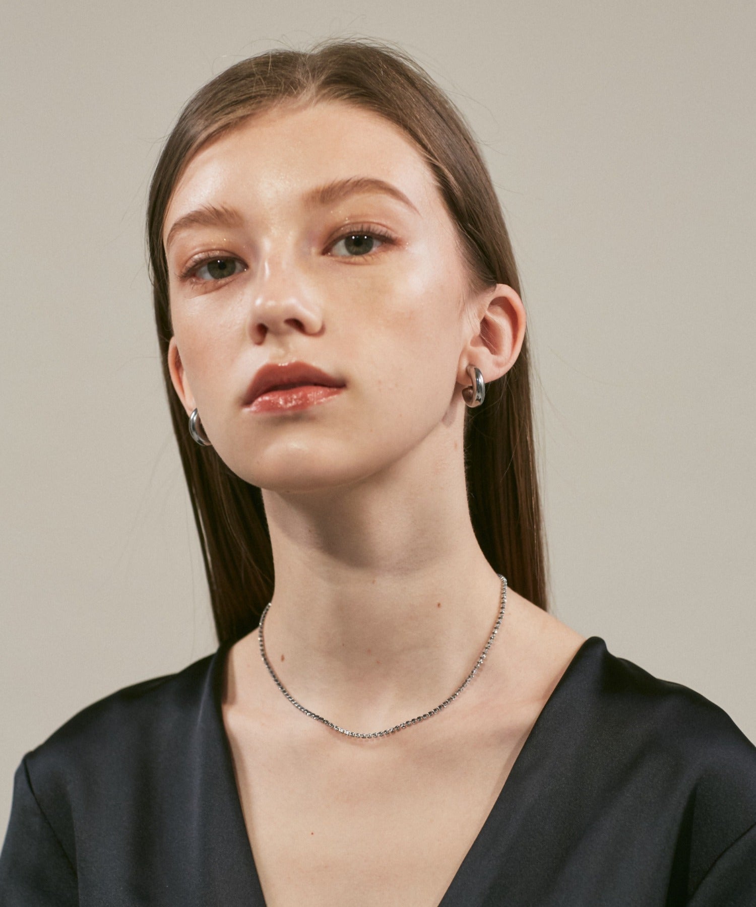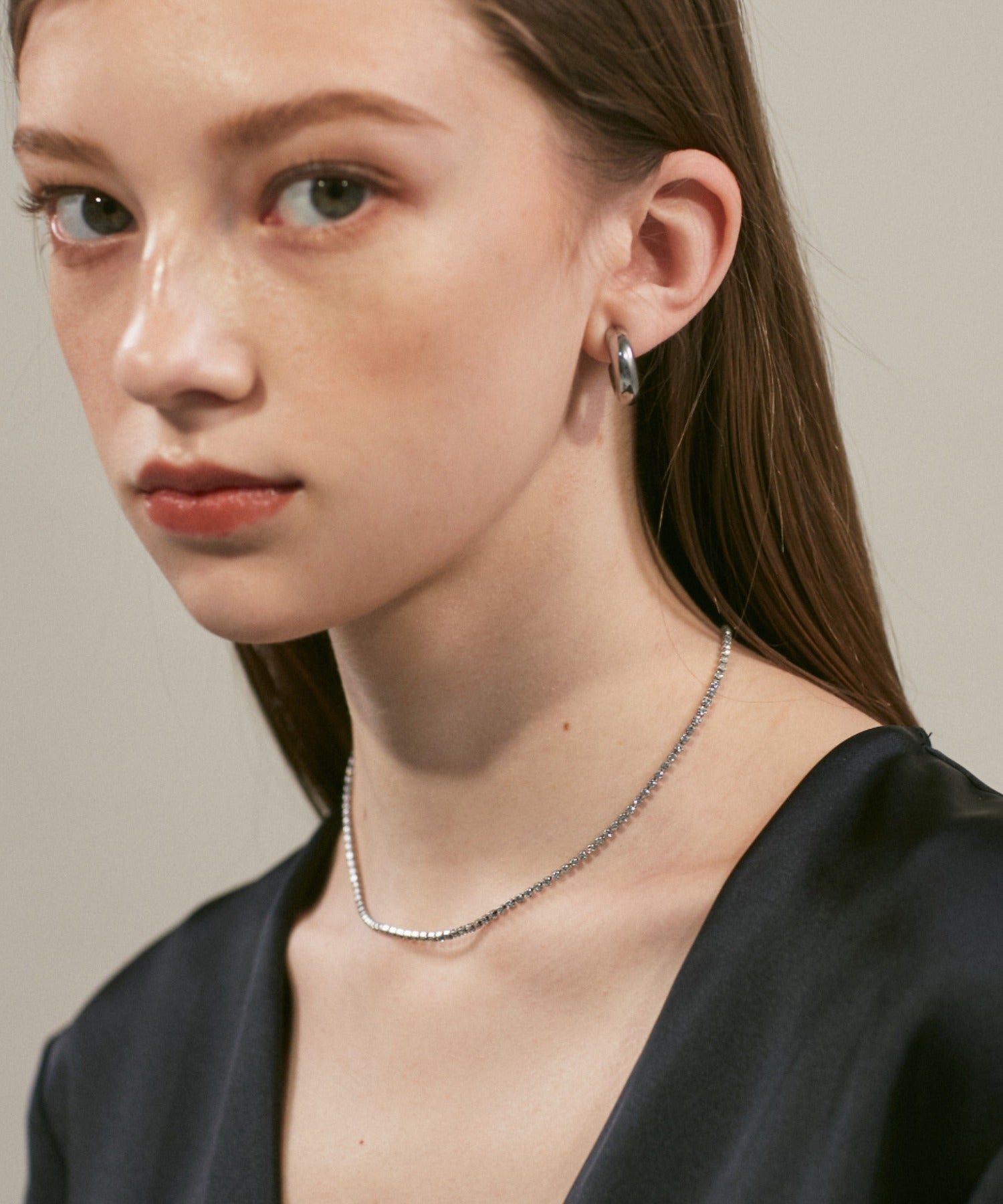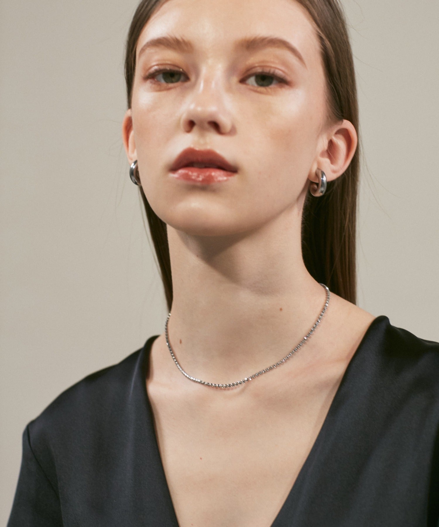 シンプルながらも付けたときのバランスにこだわったビジューネックレス。