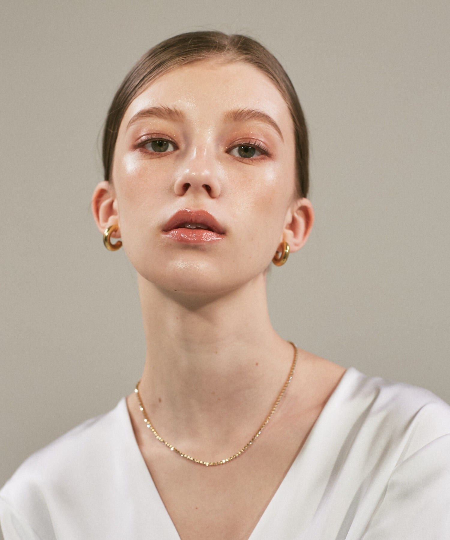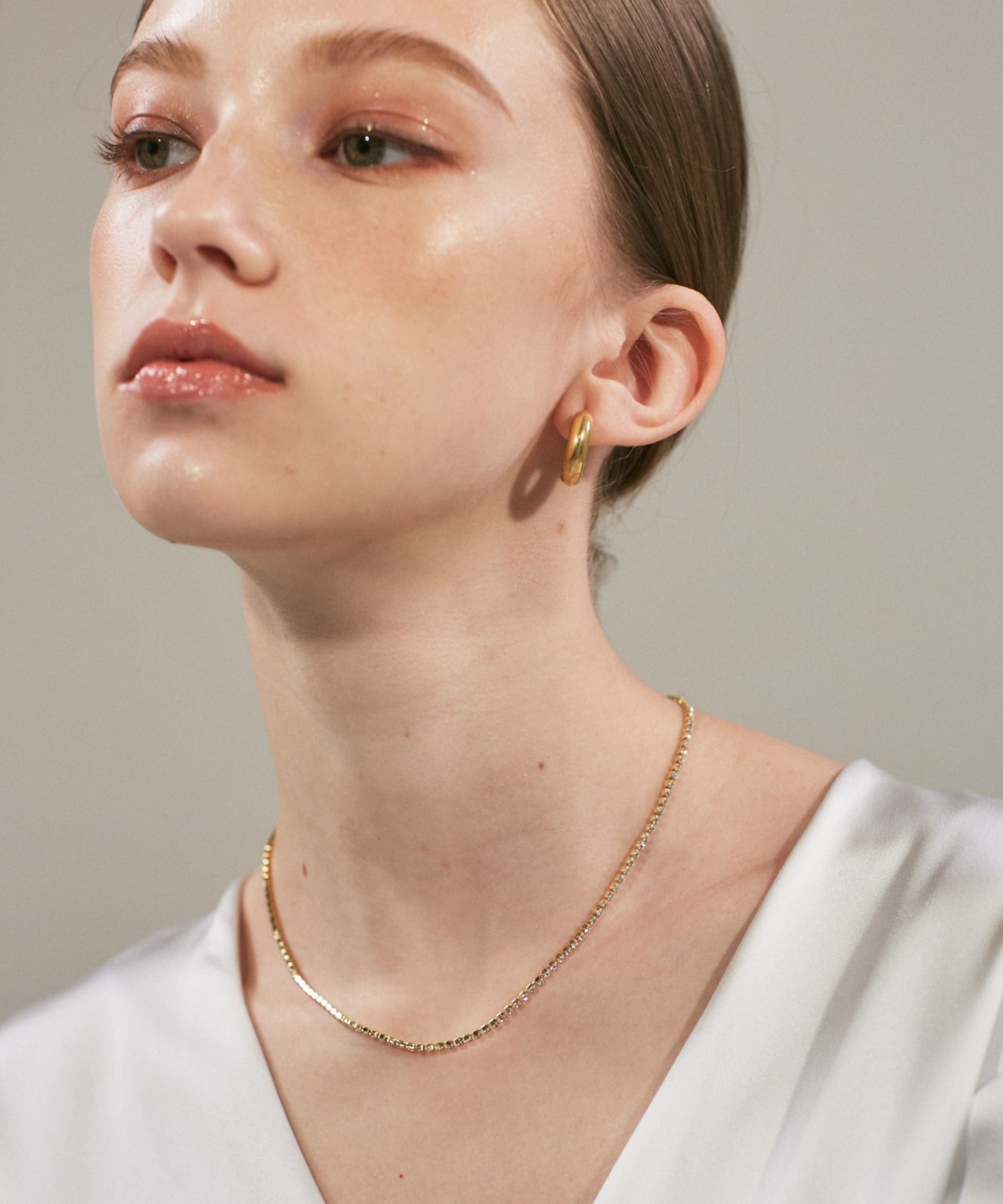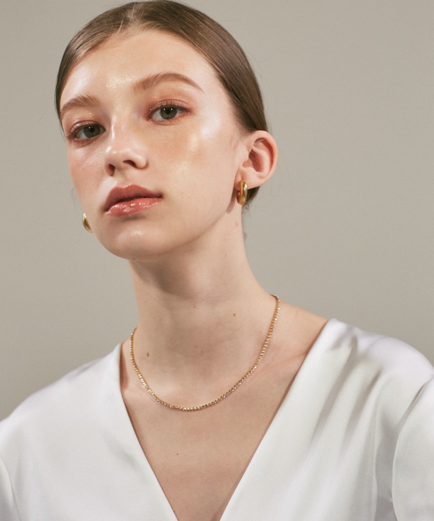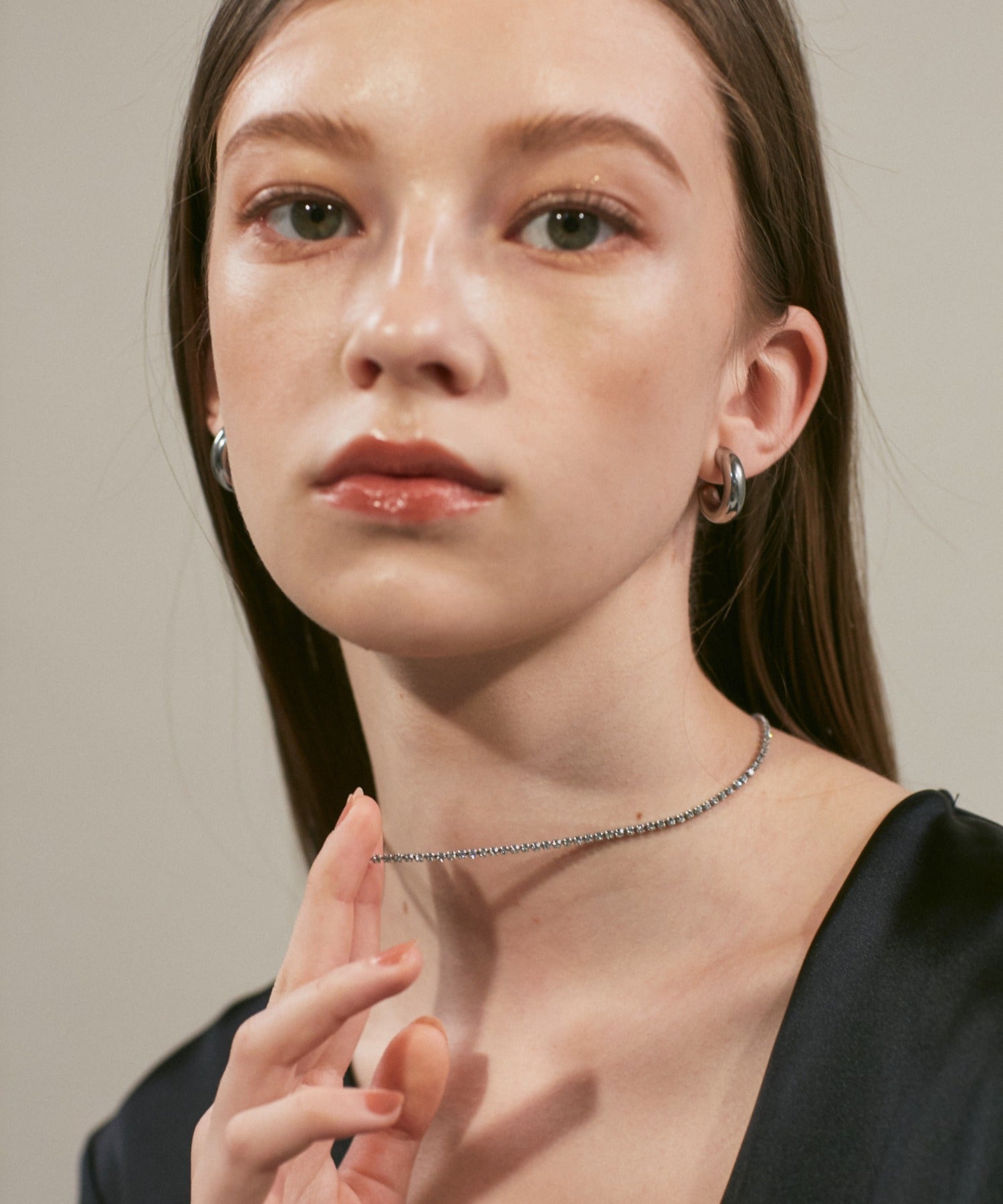 シンプルながらも付けたときのバランスにこだわったビジューネックレス。