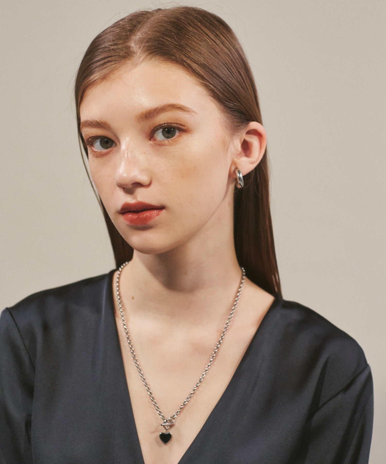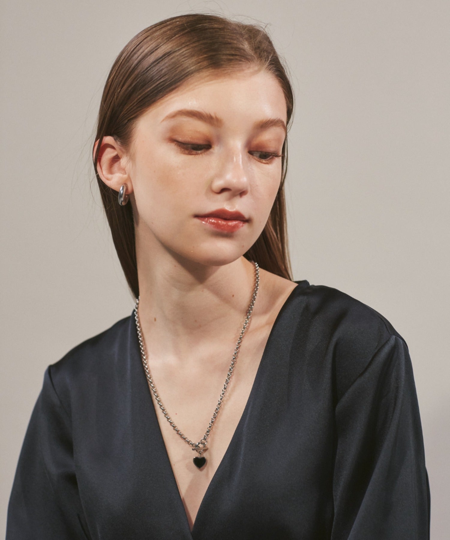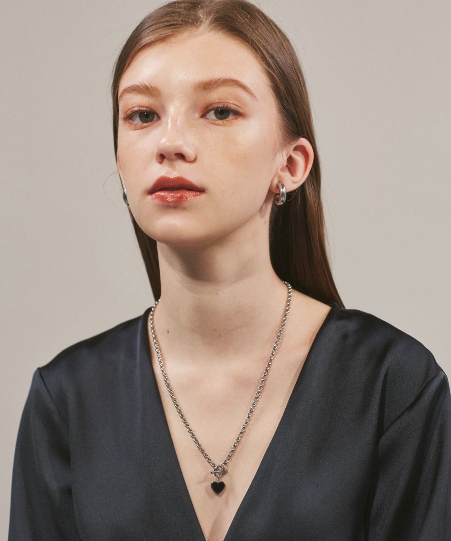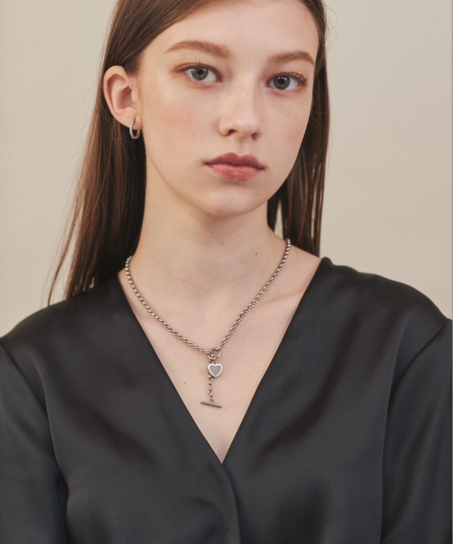 ハートデザインのトップが大人可愛い印象のマントルネックレス。