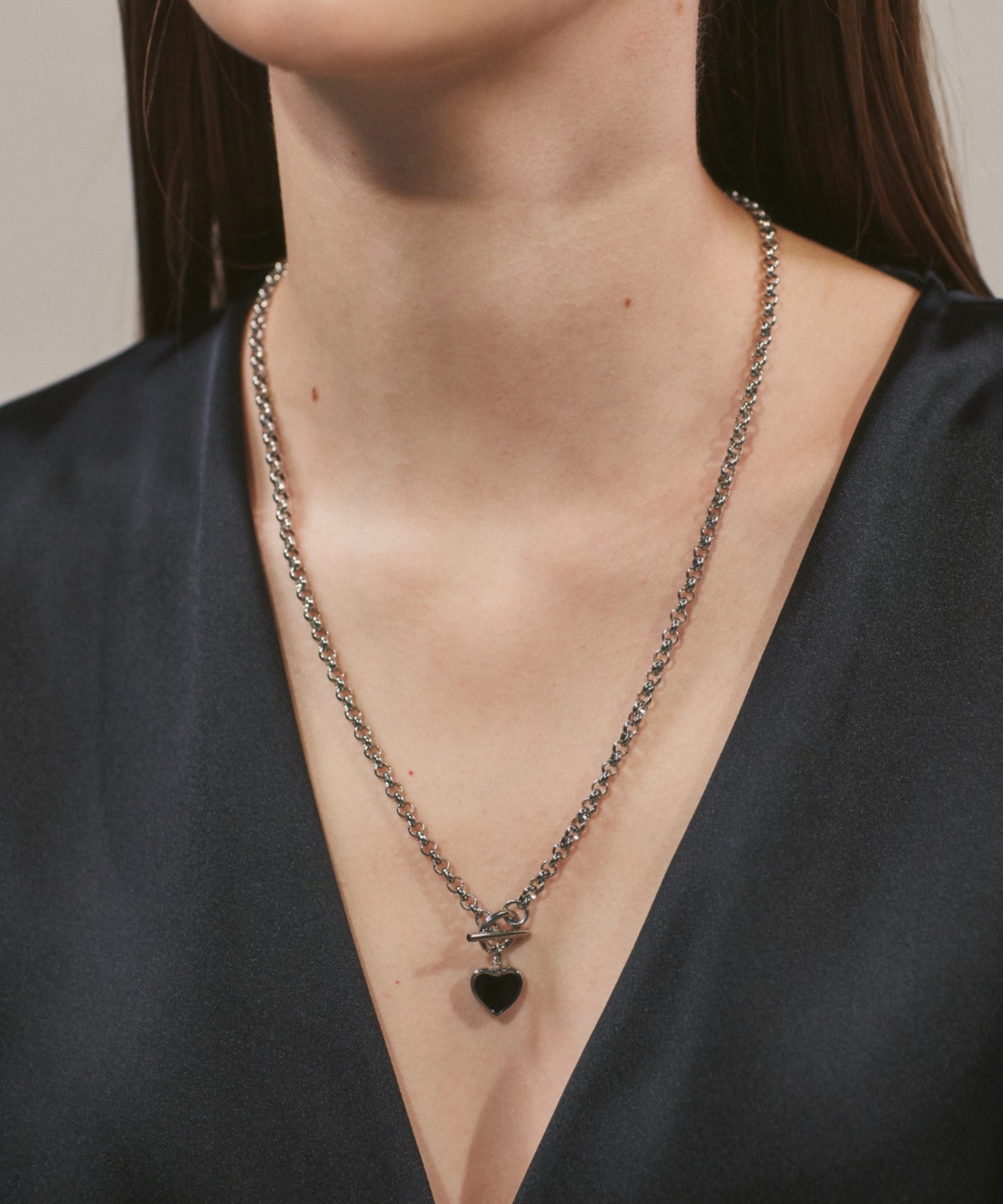 【 金属アレルギー対応 】 ハート マントルチェーンネックレス サージカルステンレス